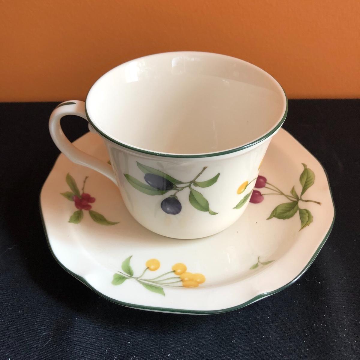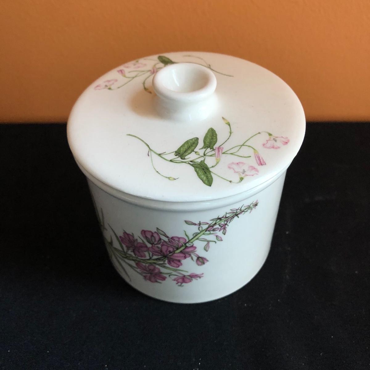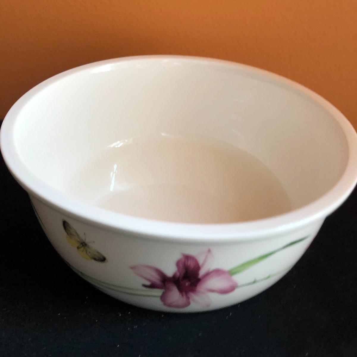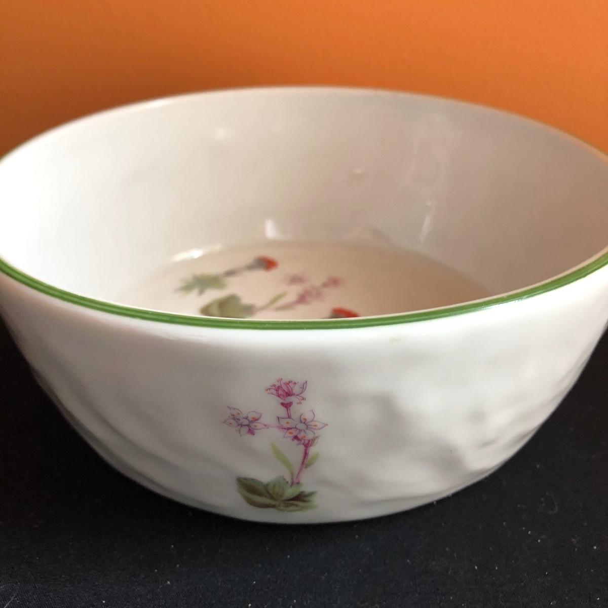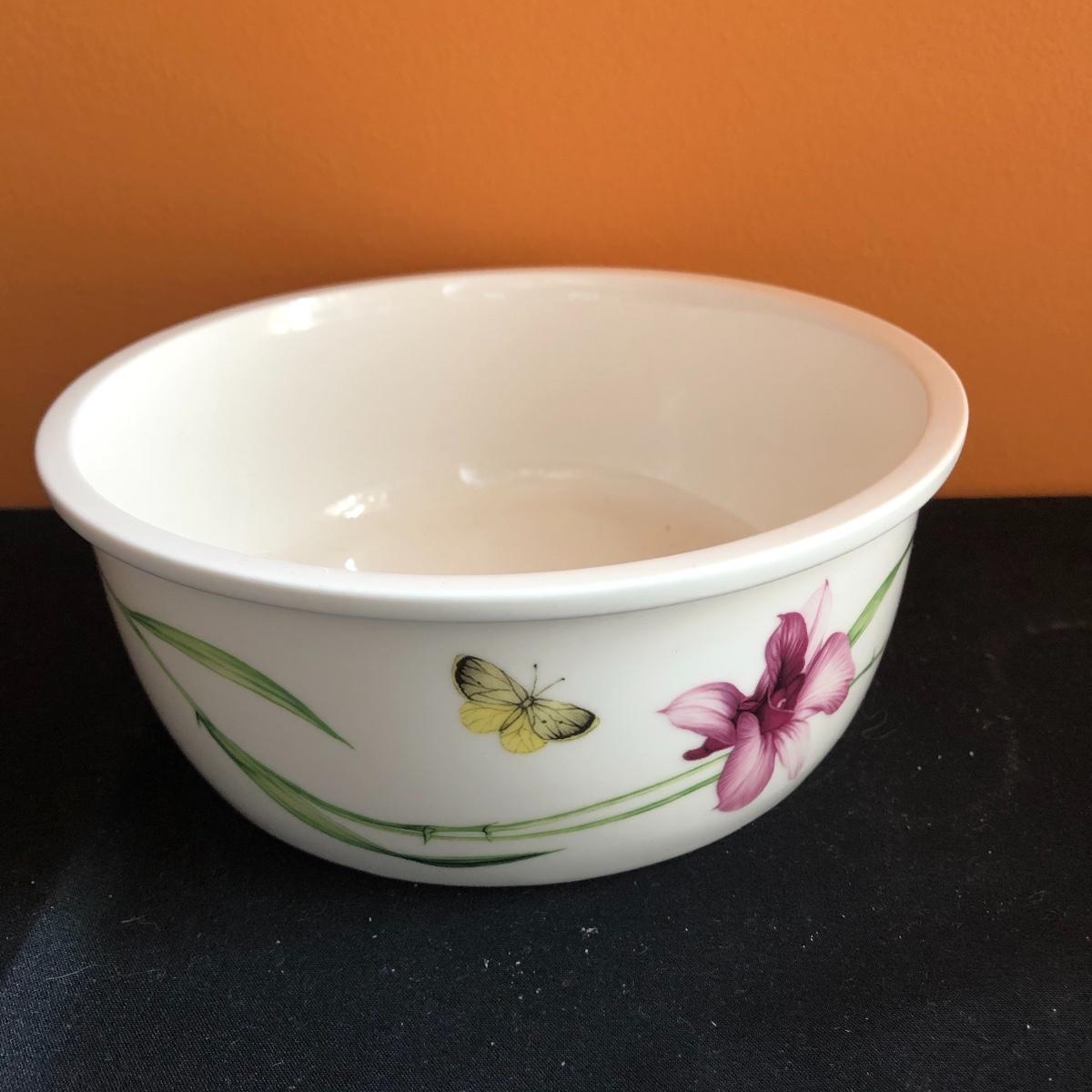With this collection of floral Portmeirion and other ceramic-ware, you will be well prepared for any hosting occasion. The first items in this lot are a Royal Worcester Evesham cylindrical pot, a Corden Bleu ovular baking dish, two small Corden Bleu bowls, a Noritake Gala Cuisine teacup and saucer, and a Tullium mug. The Portmeirion items included are a small circular dish, matching cream and sugar dishes, six cheese knives, and a larger aerated knife. Remaining are a pepper shaker, a cake server, a small lidded jar, a floral mug by Roy Kirkham, a porcelain bowl made in France, a deep bowl, a shallow octagonal dish with fruit decor, and lastly, a shallow dish with decorative blackberries. Keep the charcuterie coming with this assortment of dishes from England, France, Japan, and China!