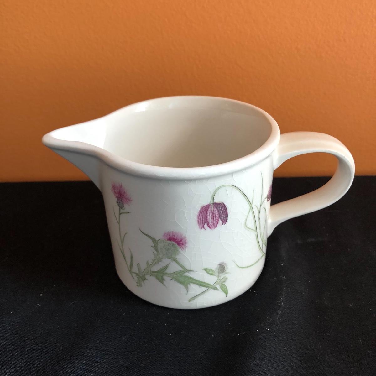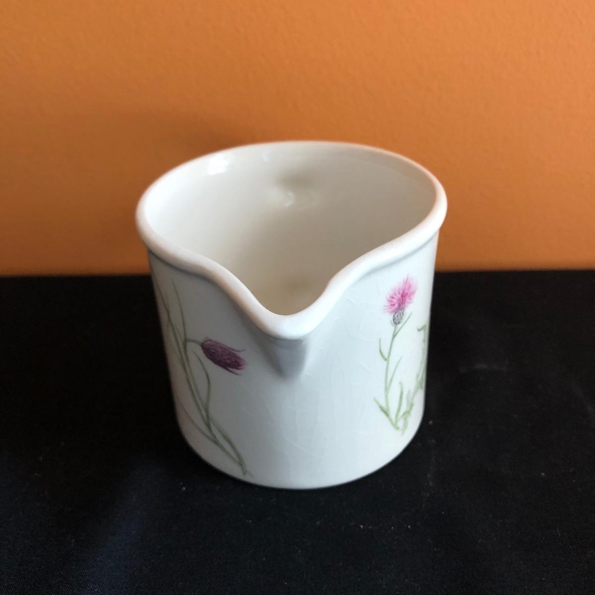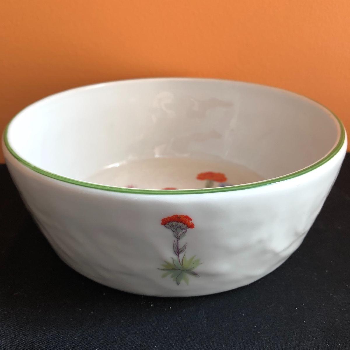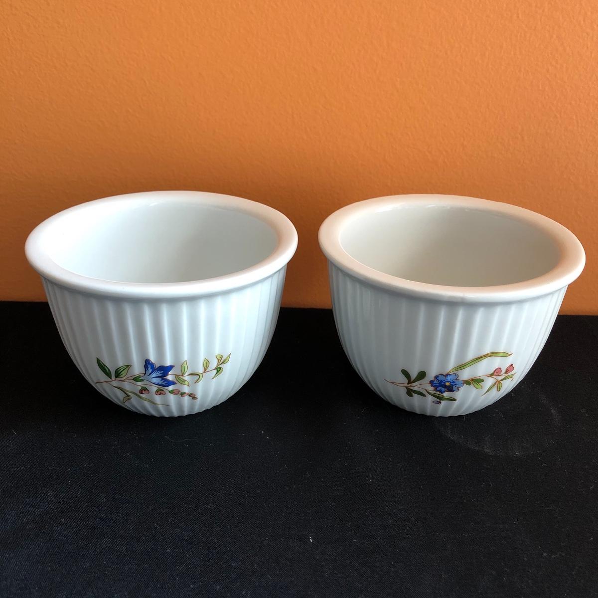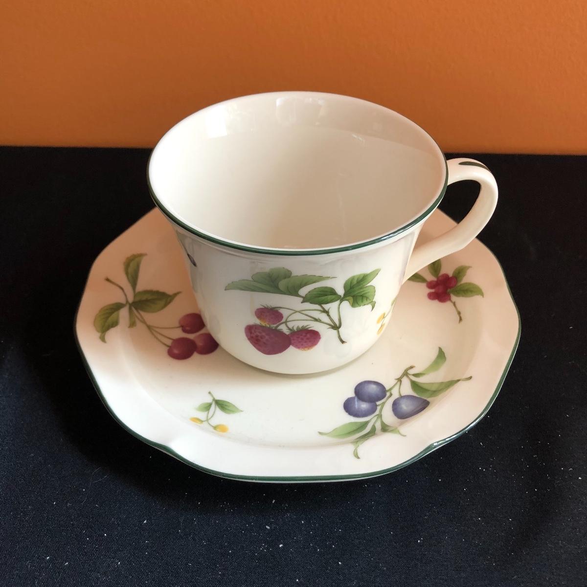 With this collection of floral Portmeirion and other ceramic-ware, you will be well prepared for any hosting occasion. The first items in this lot are a Royal Worcester Evesham cylindrical pot, a Corden Bleu ovular baking dish, two small Corden Bleu bowls, a Noritake Gala Cuisine teacup and saucer, and a Tullium mug. The Portmeirion items included are a small circular dish, matching cream and sugar dishes, six cheese knives, and a larger aerated knife. Remaining are a pepper shaker, a cake server, a small lidded jar, a floral mug by Roy Kirkham, a porcelain bowl made in France, a deep bowl, a shallow octagonal dish with fruit decor, and lastly, a shallow dish with decorative blackberries. Keep the charcuterie coming with this assortment of dishes from England, France, Japan, and China!