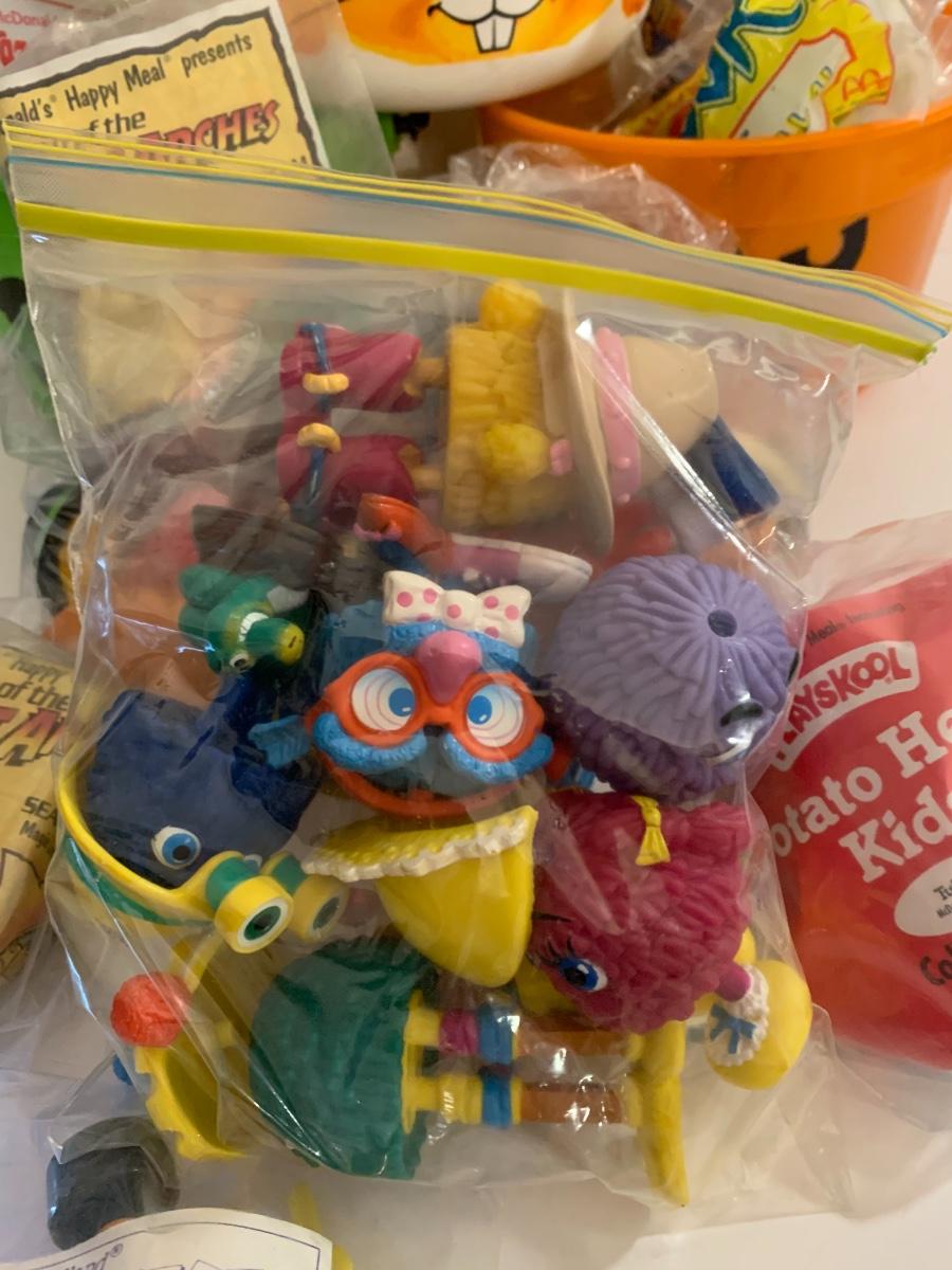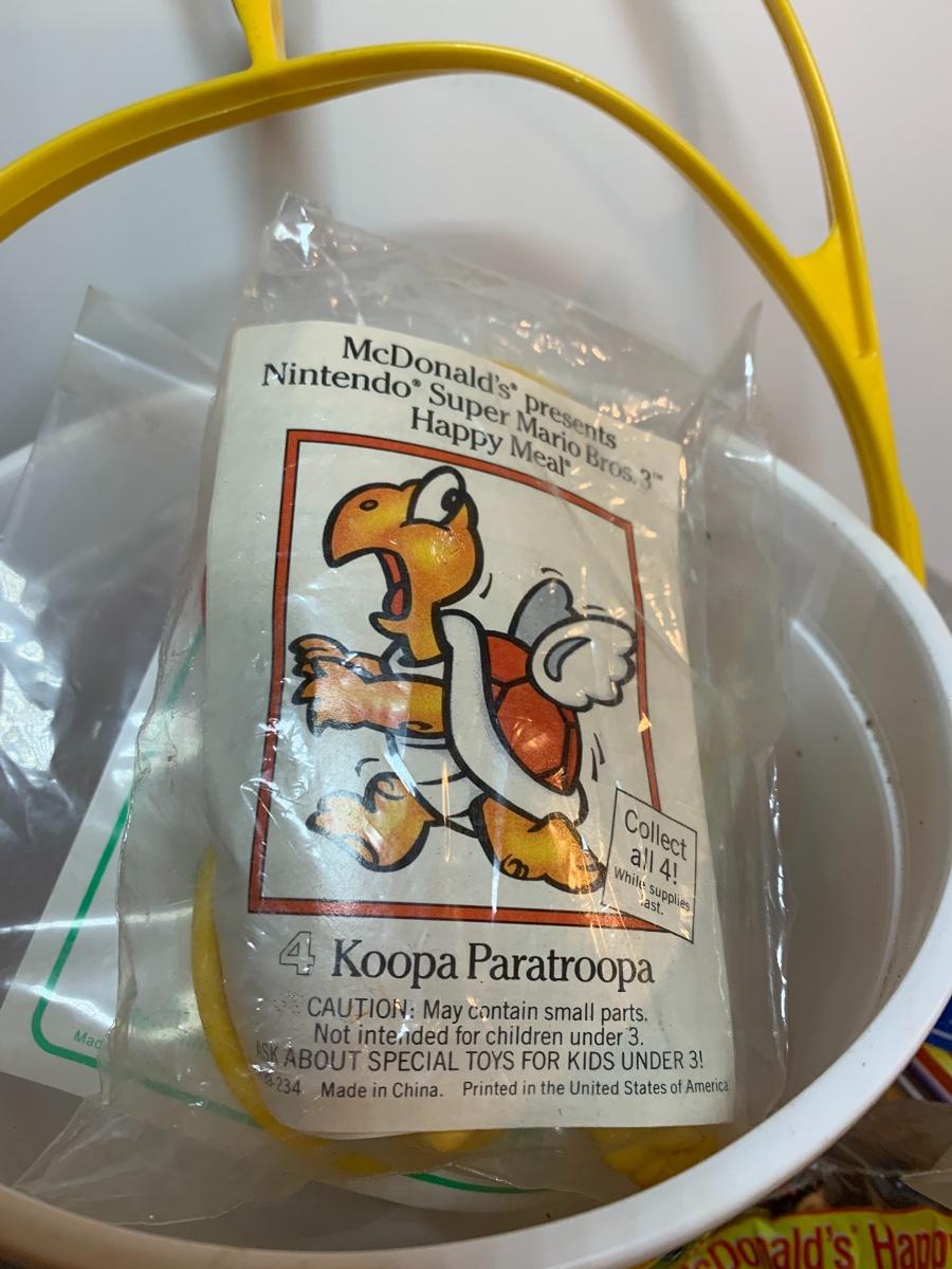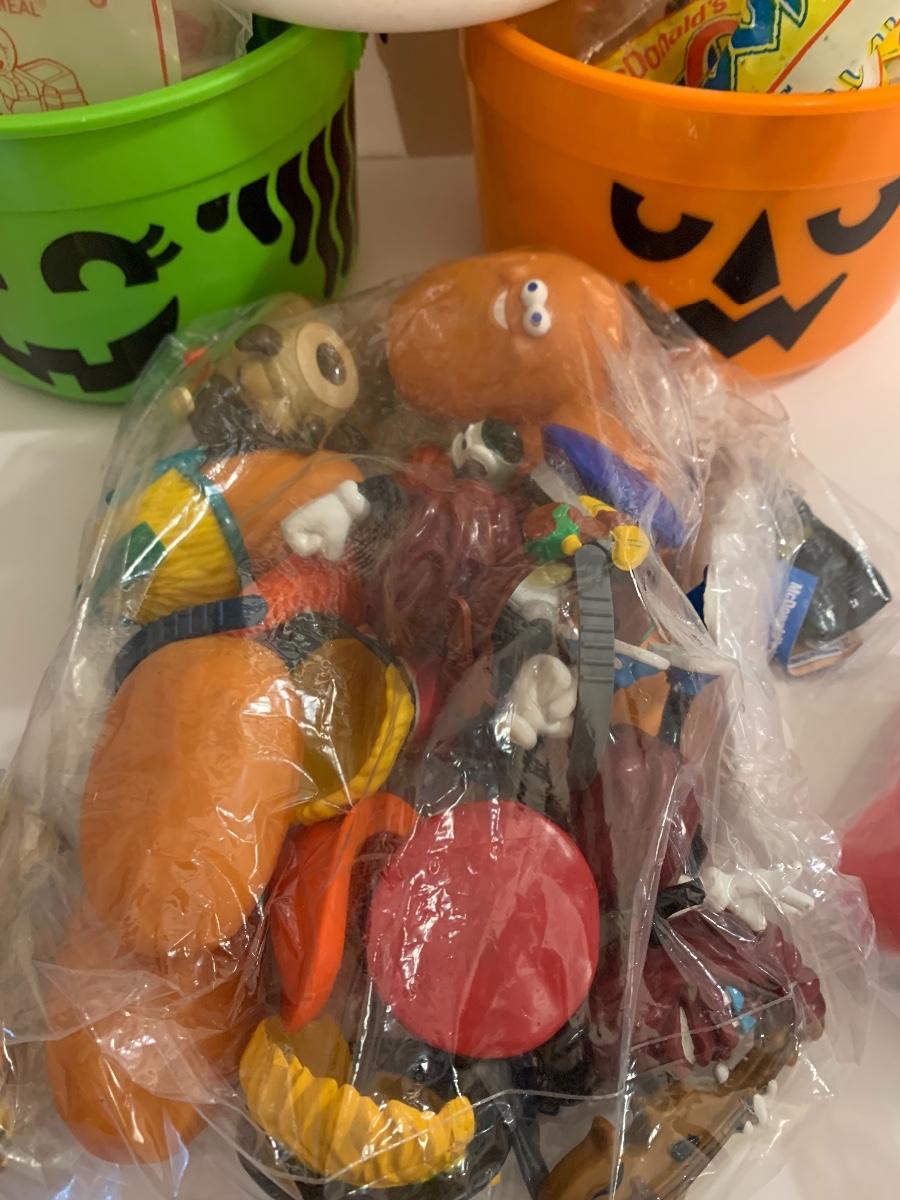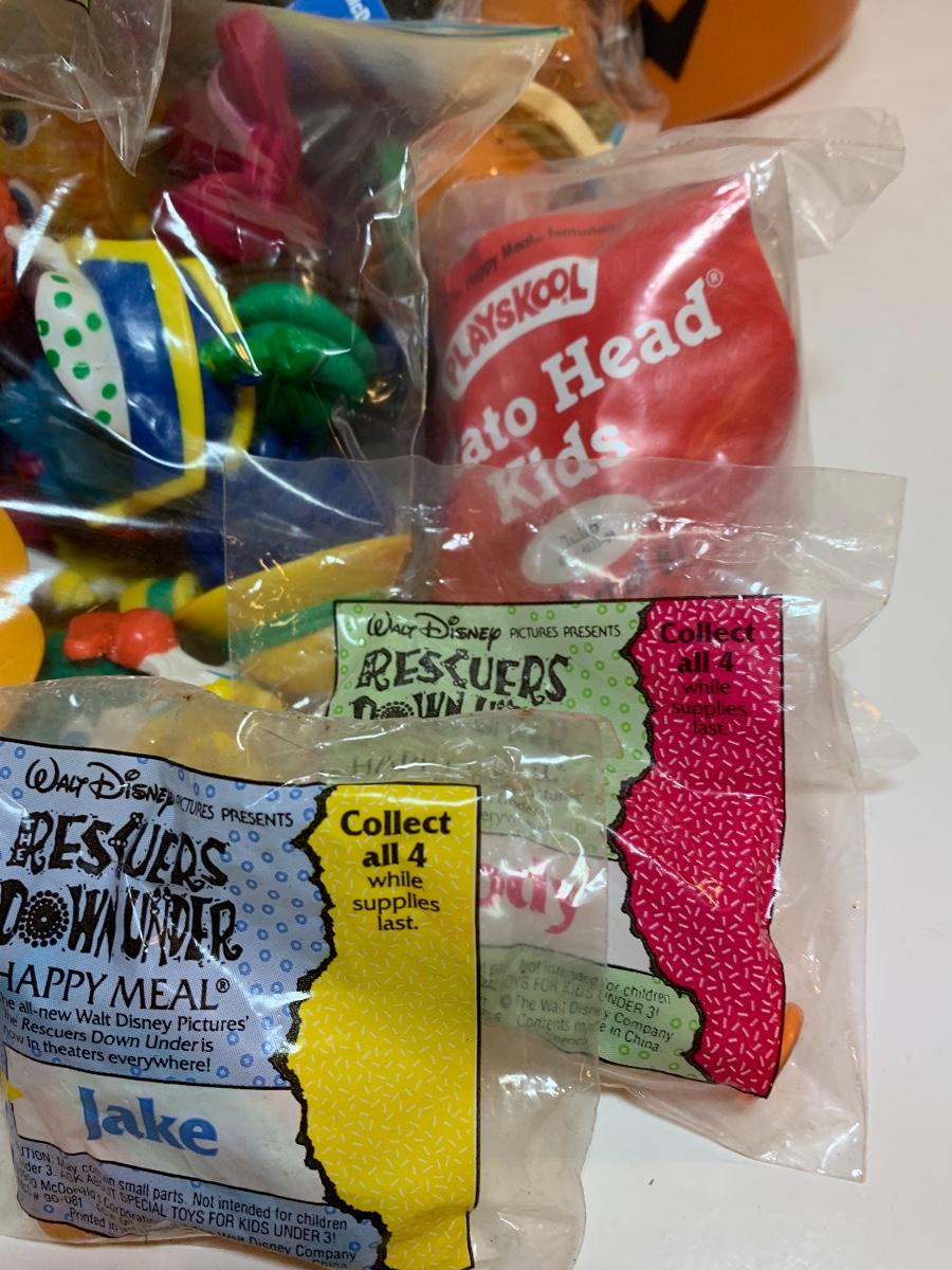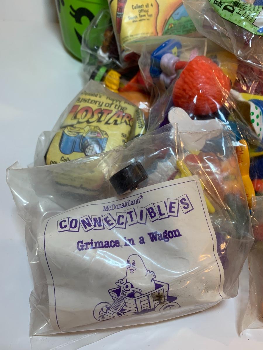 Included in this lot: are opened and unopened vintage Happy Meal toys and 3 pails.