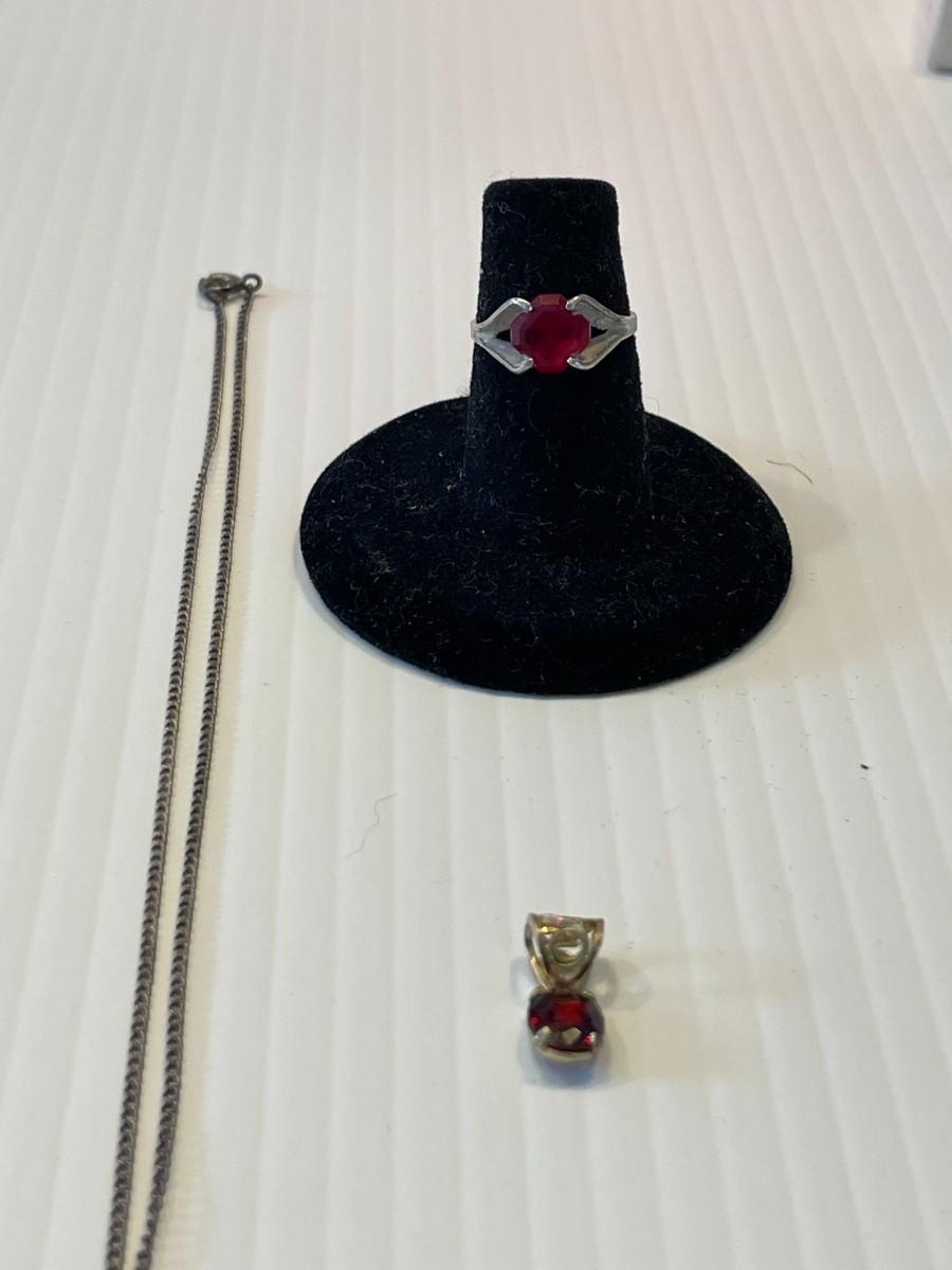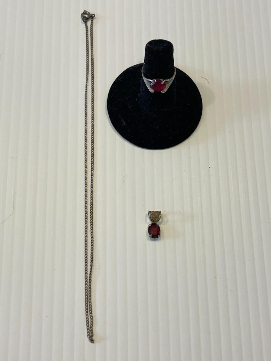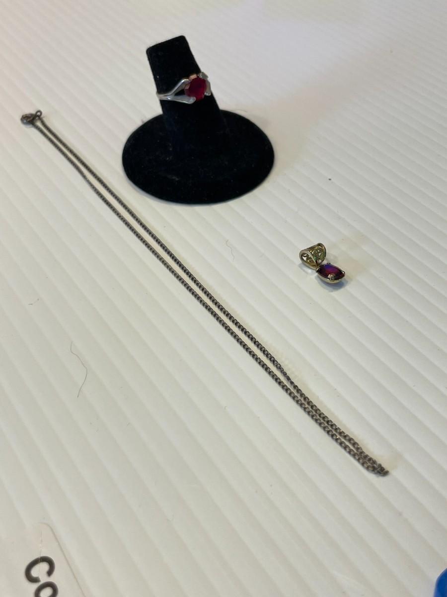 Sterling silver necklace, ring, and charm.