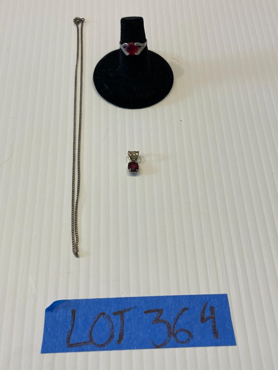 lot 364- Sterling silver necklace, ring, and charm