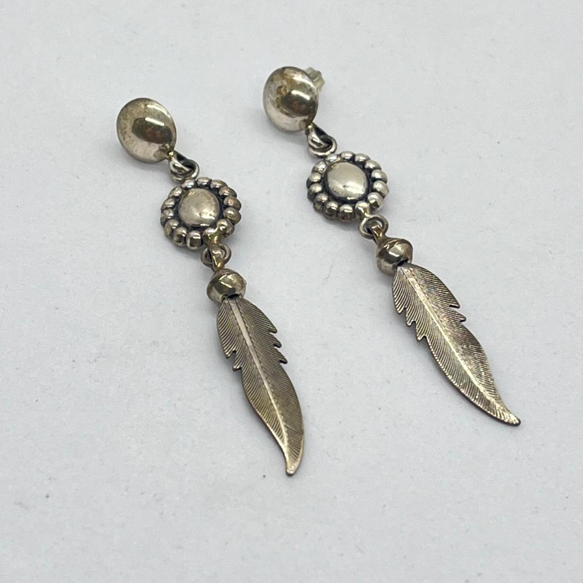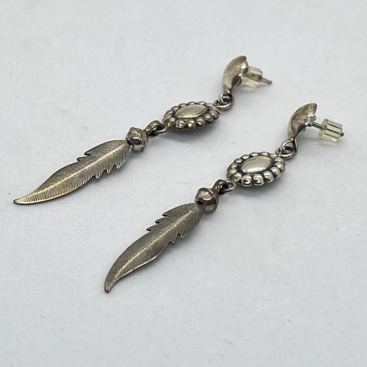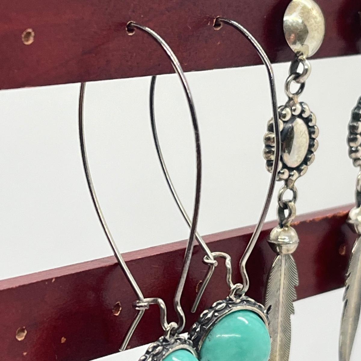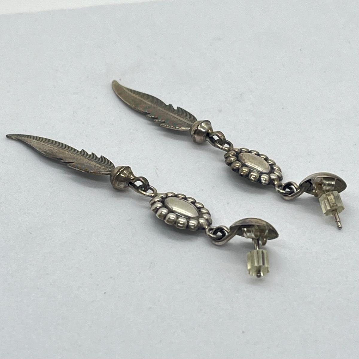 Lot 364J: Round Campitos Turquoise Long Drop Pierced Earrings and Sterling Feather Drop Earrings