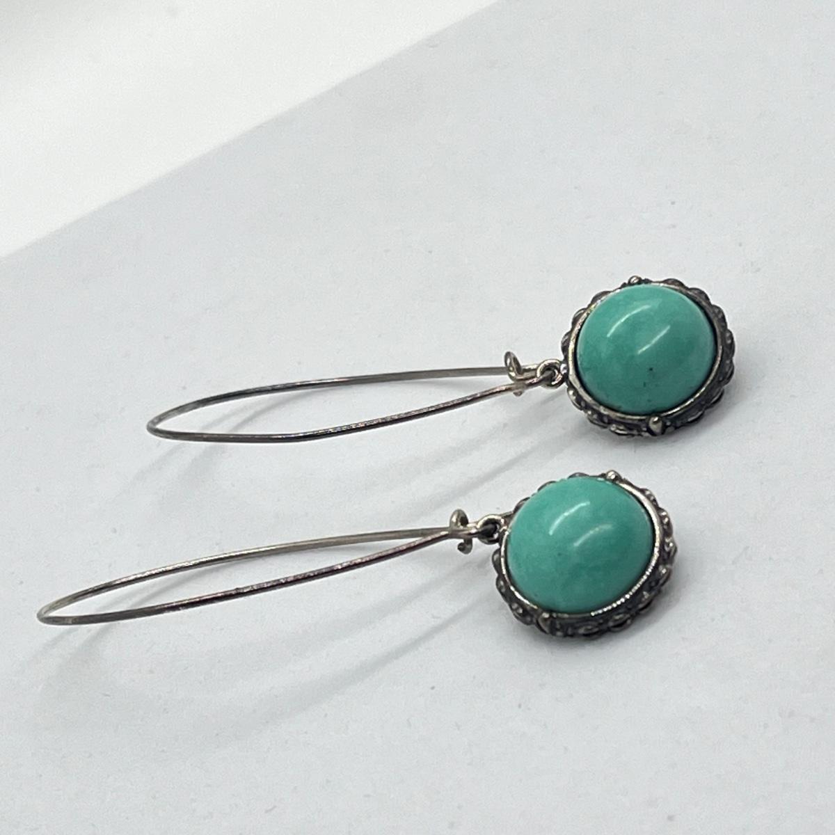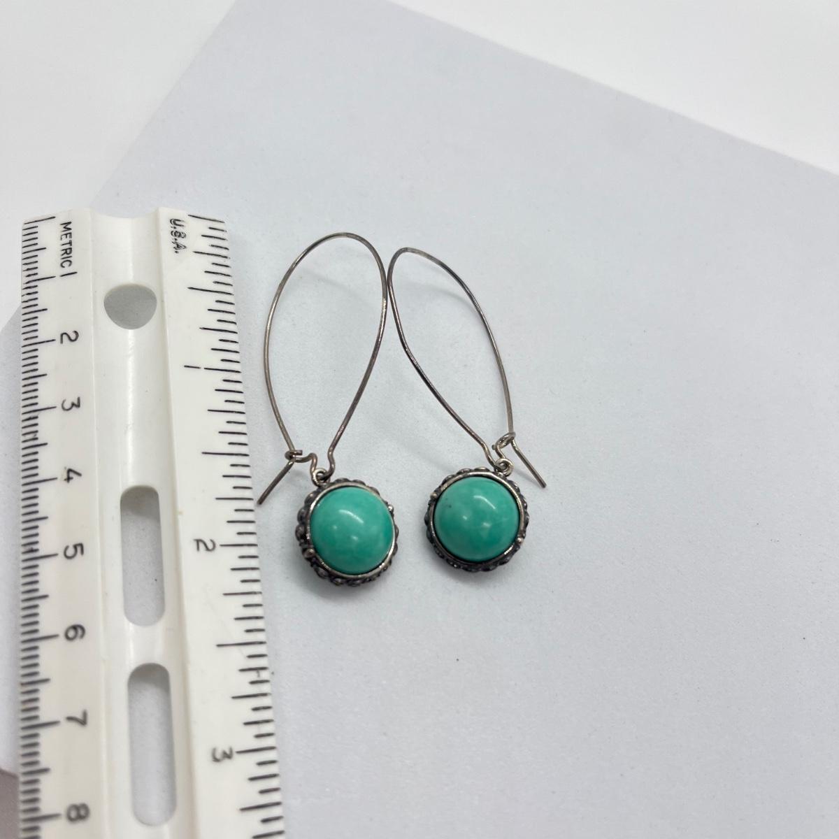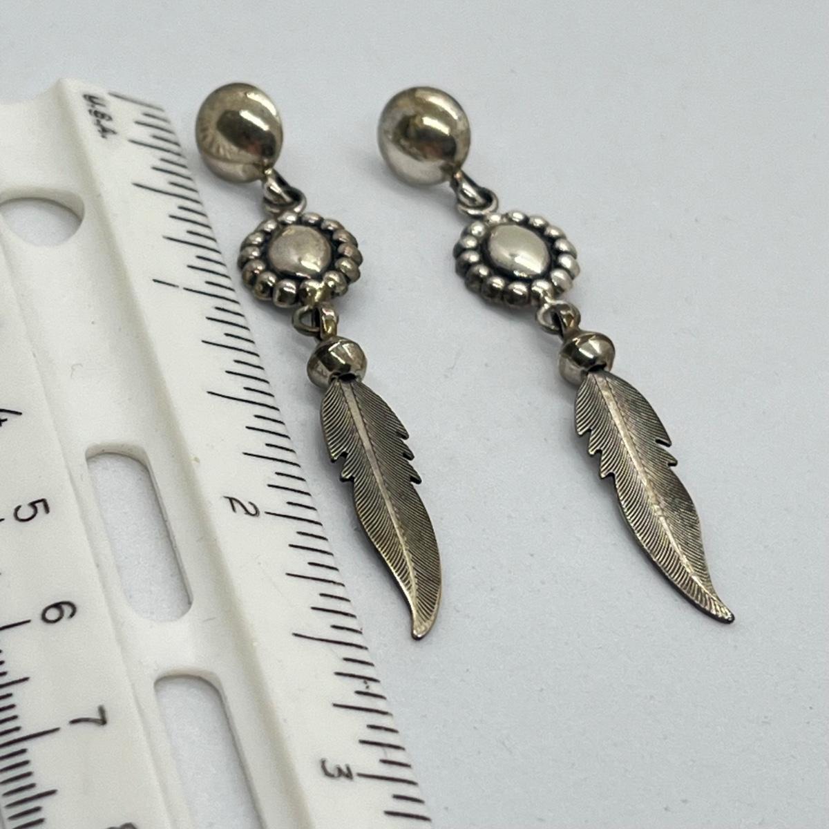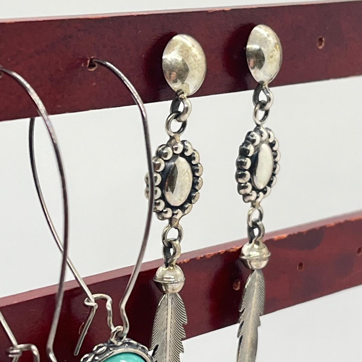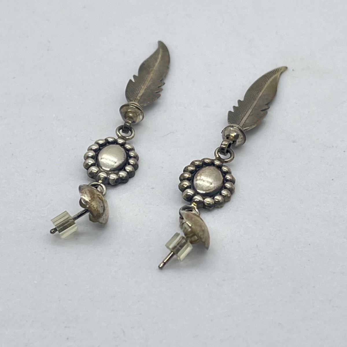 Lot 364J: Round Campitos Turquoise Long Drop Pierced Earrings and Sterling Feather Drop Earrings