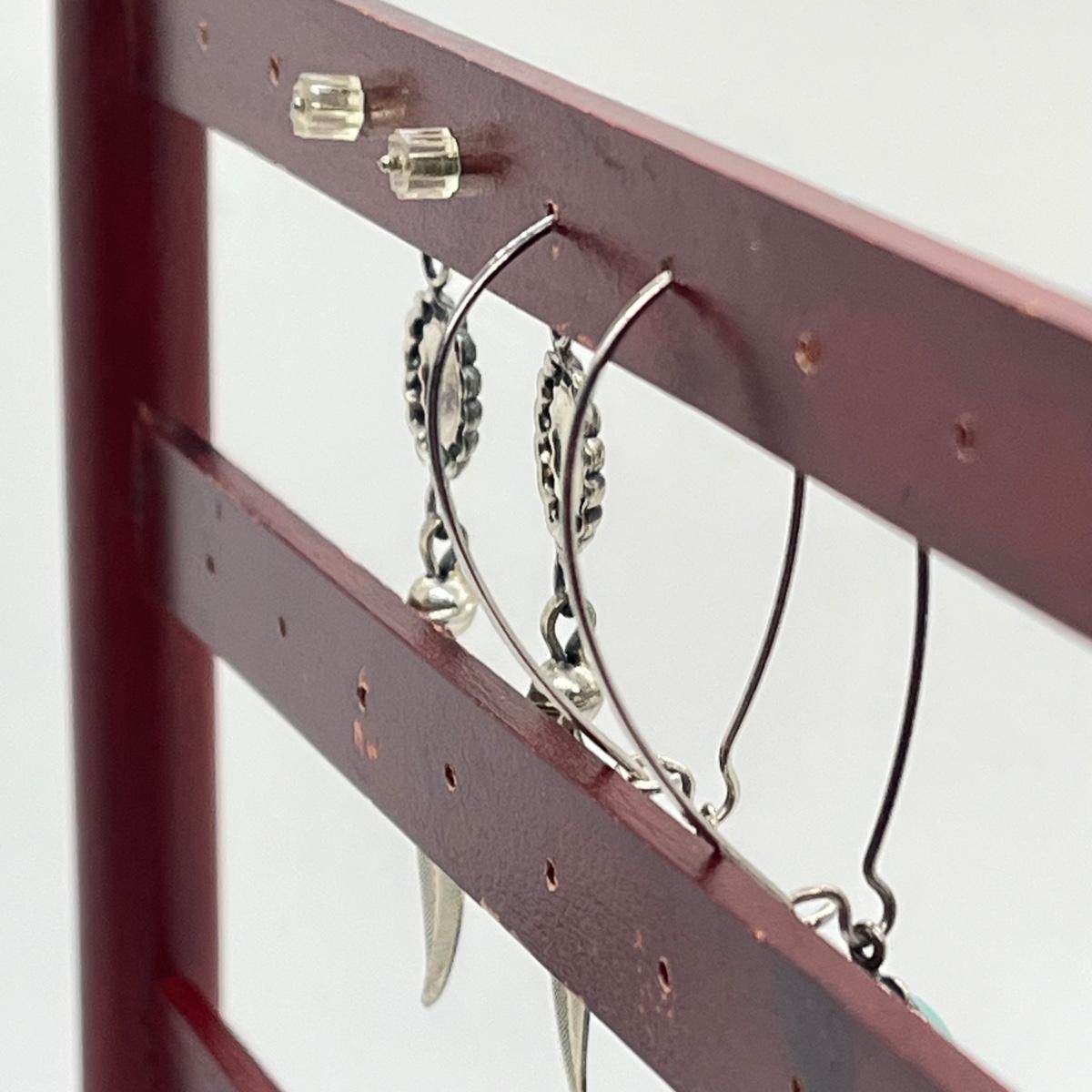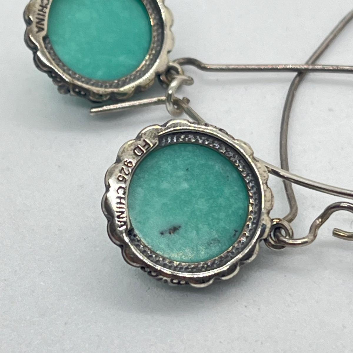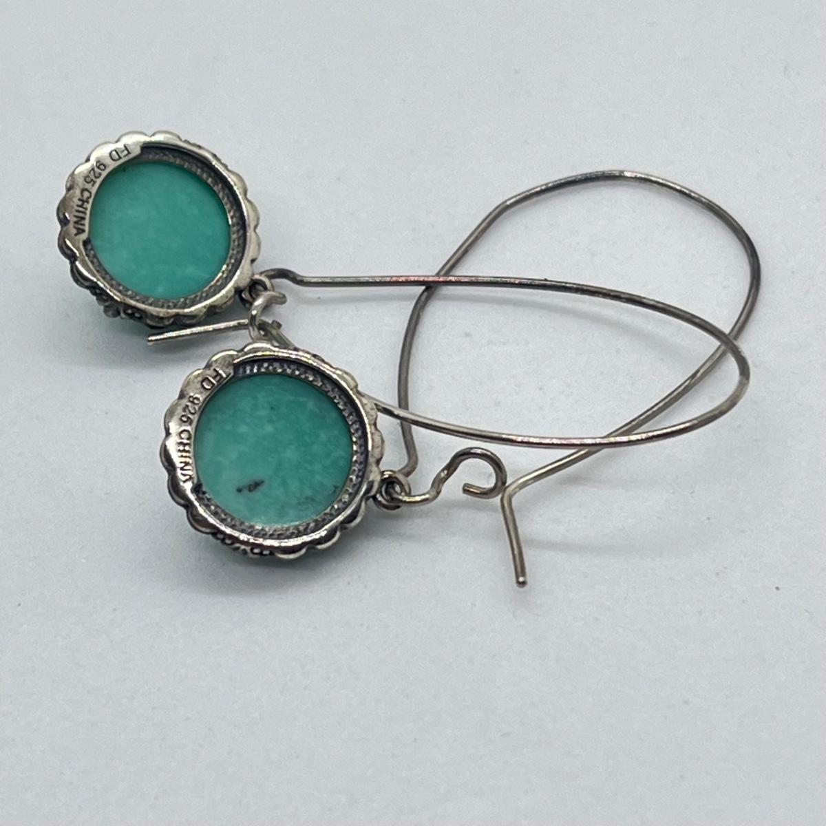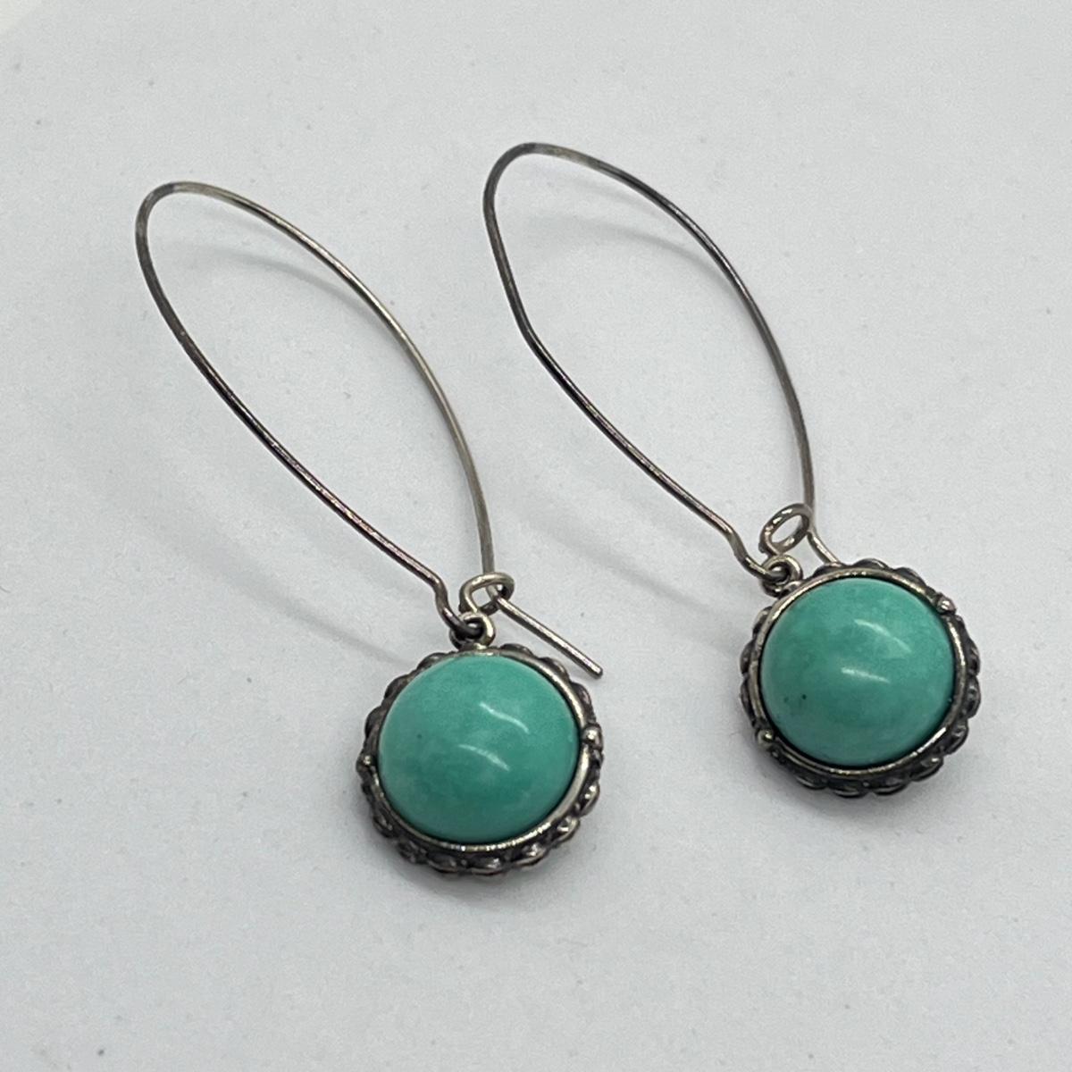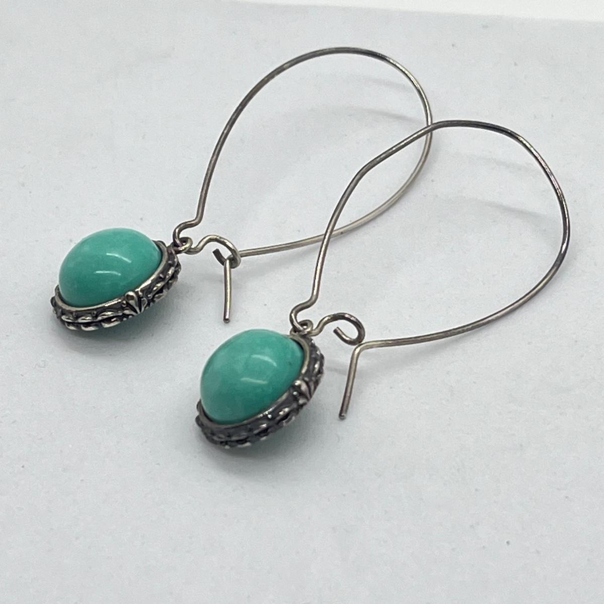 Lot 364J: Round Campitos Turquoise Long Drop Pierced Earrings and Sterling Feather Drop Earrings