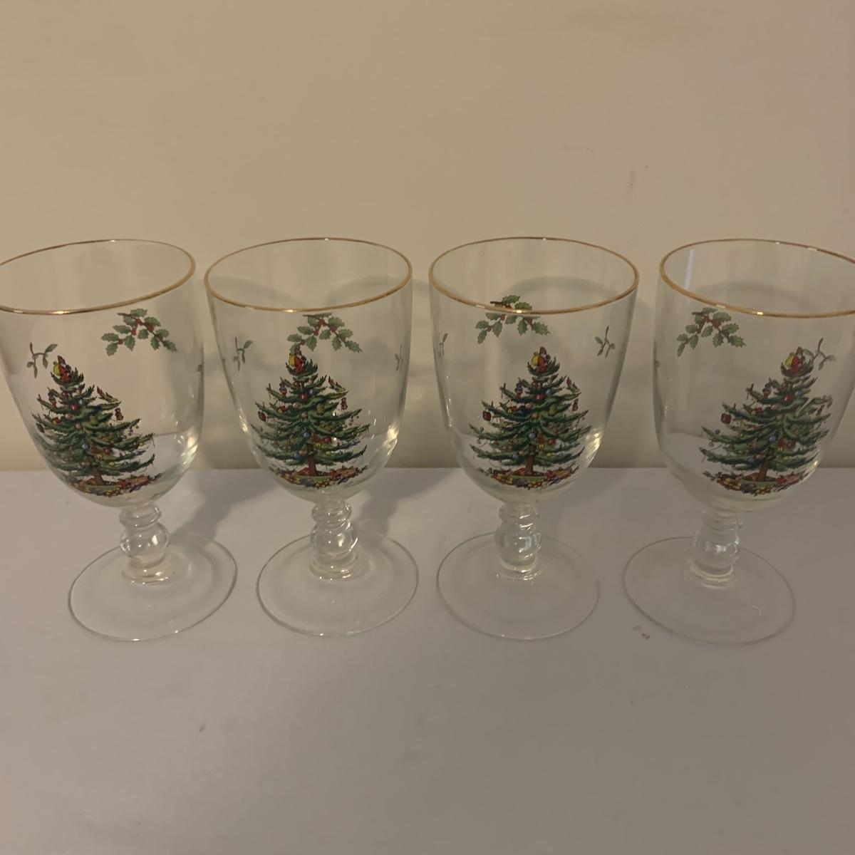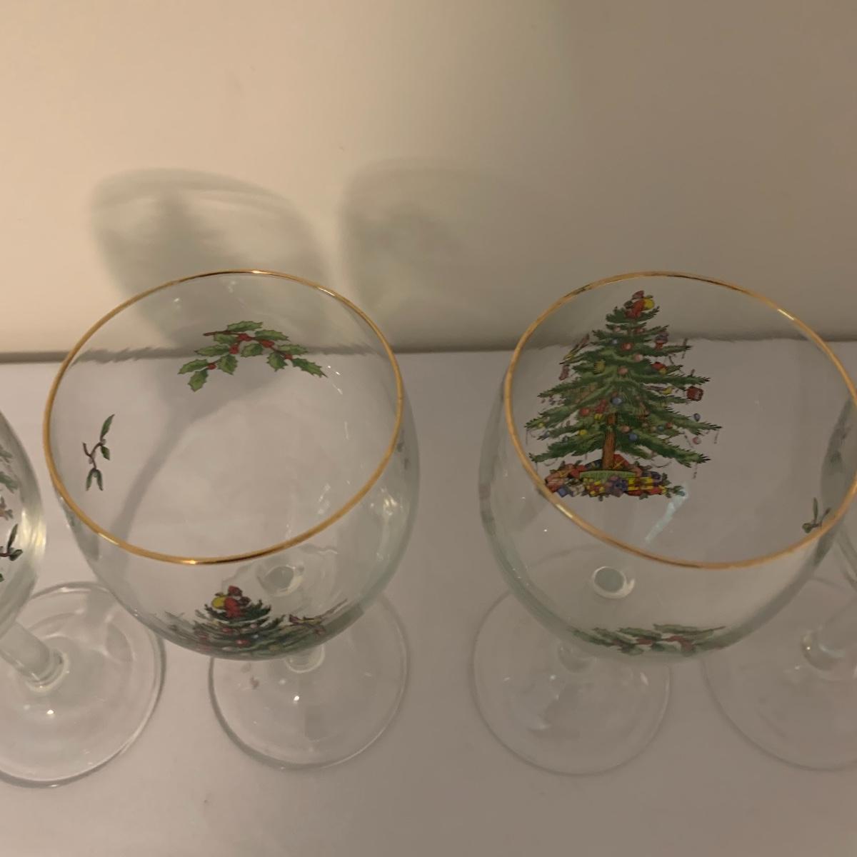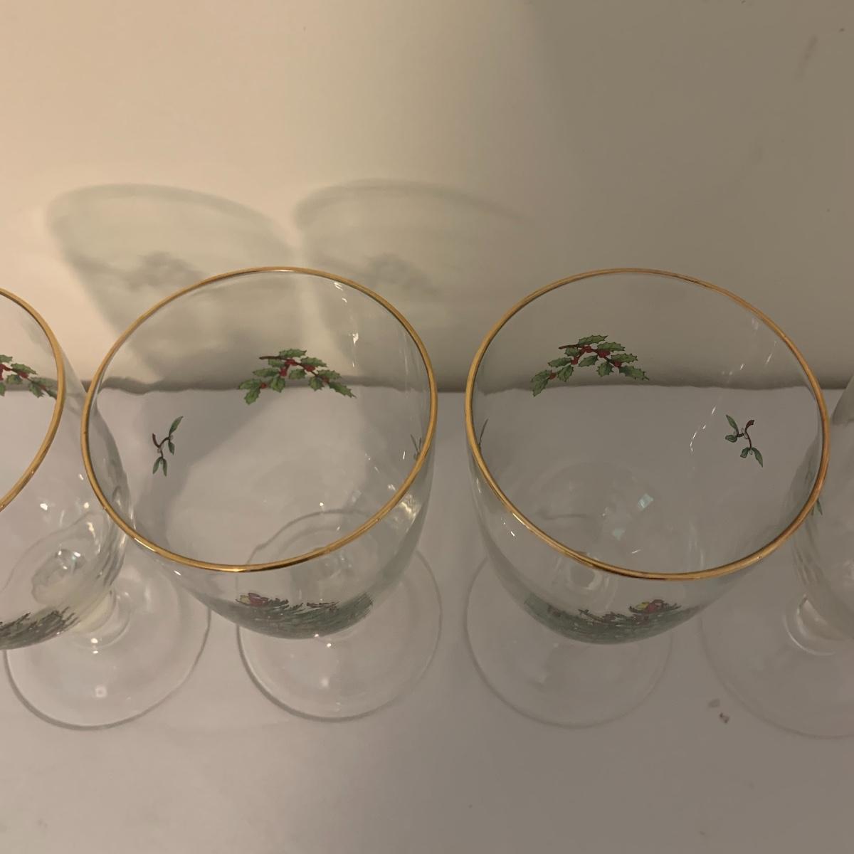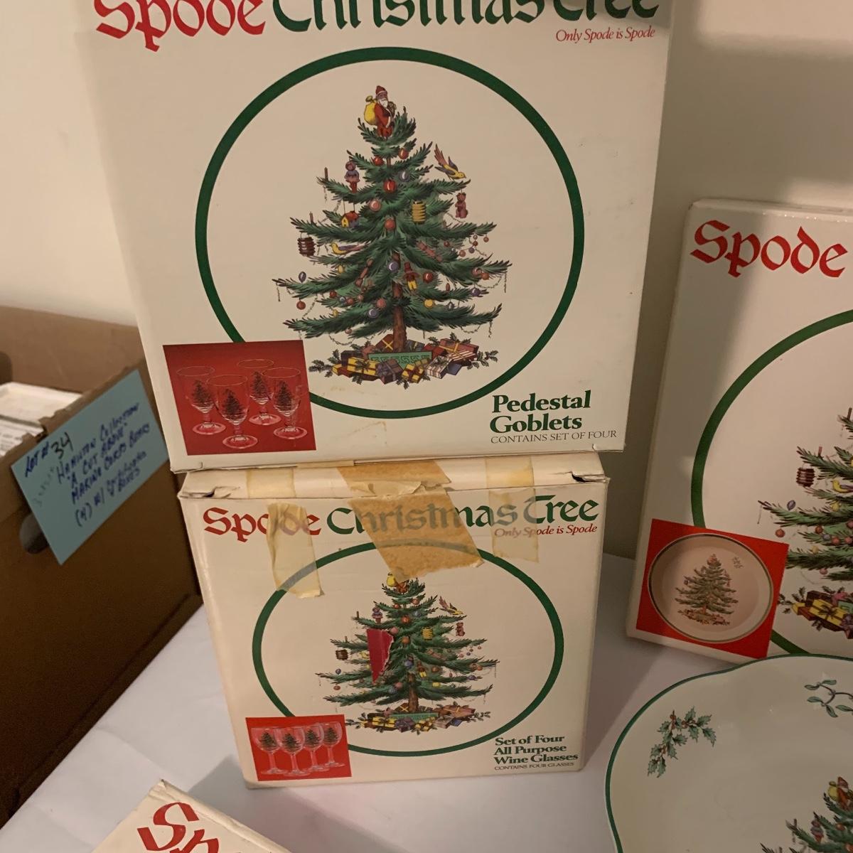 This set of Spode Dishes will make you love Christmas even more then you already do! This lot includes two sets of four wine glasses (four are pedestal goblets, and four are all purpose) a round 12” platter, a cake plate, three bowls, a covered dish, a spoon rest, candle holder, and a set of dishes and more. Several items are still contained in their original boxes and all pieces are in good condition.