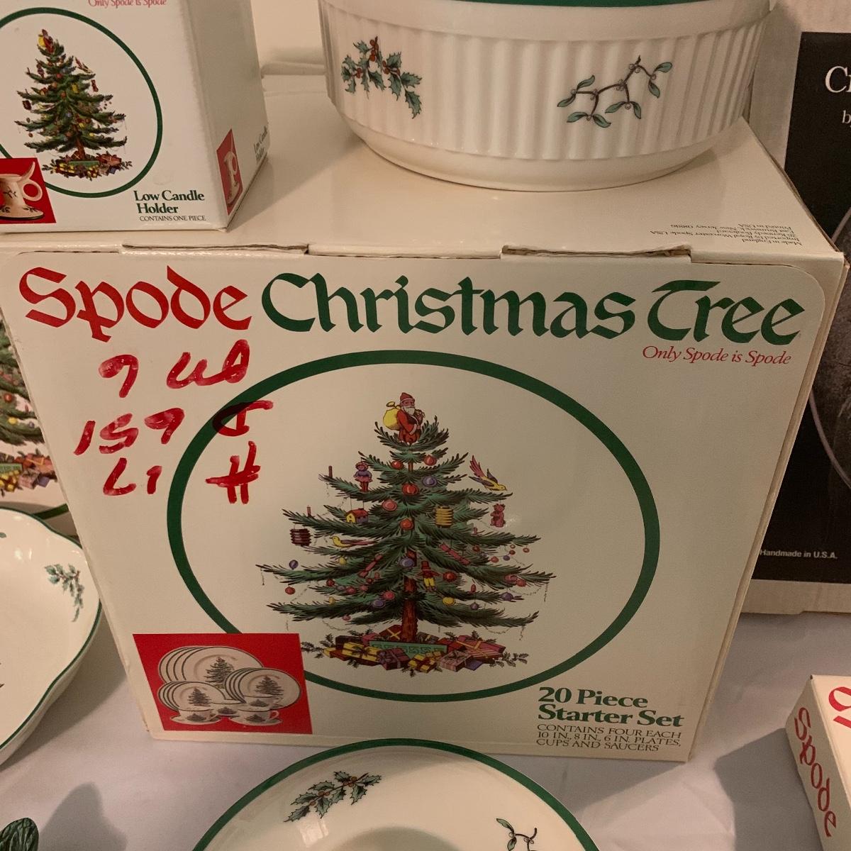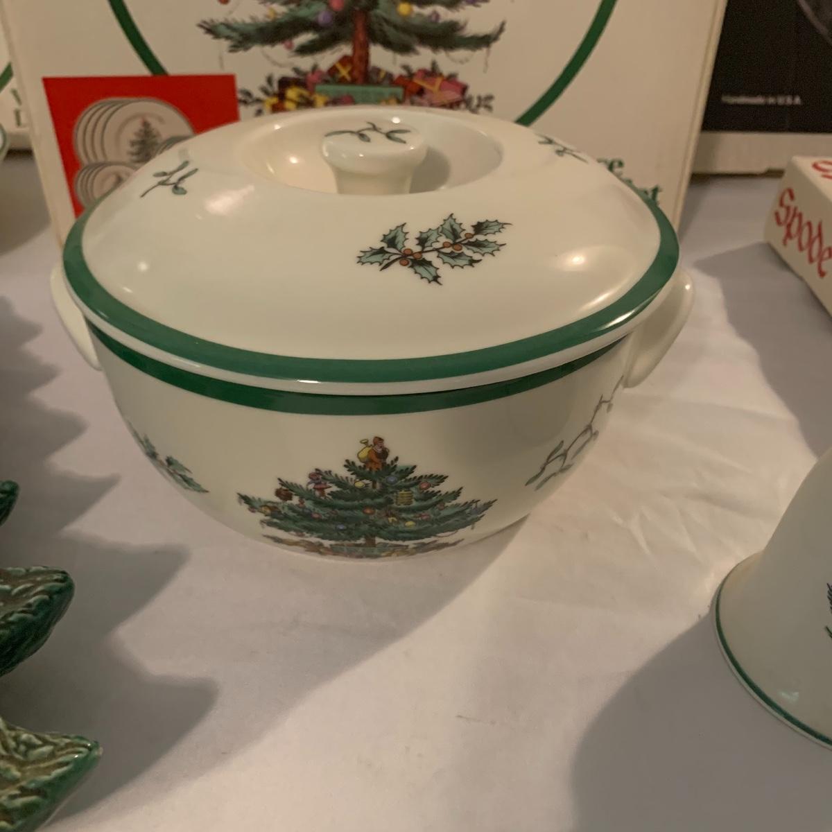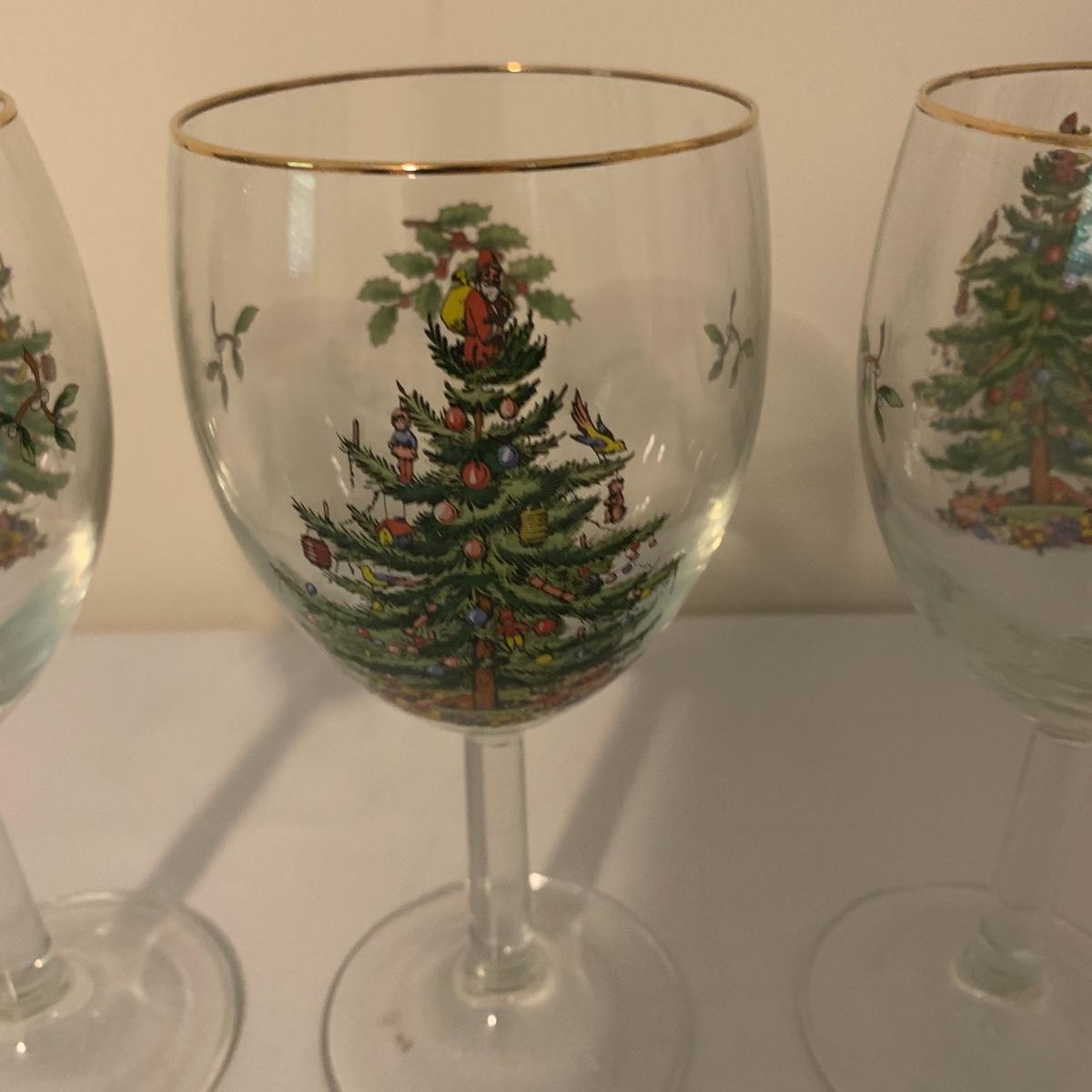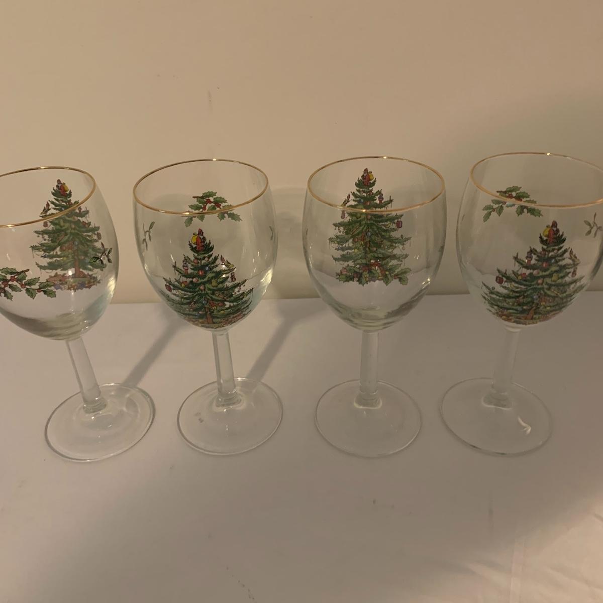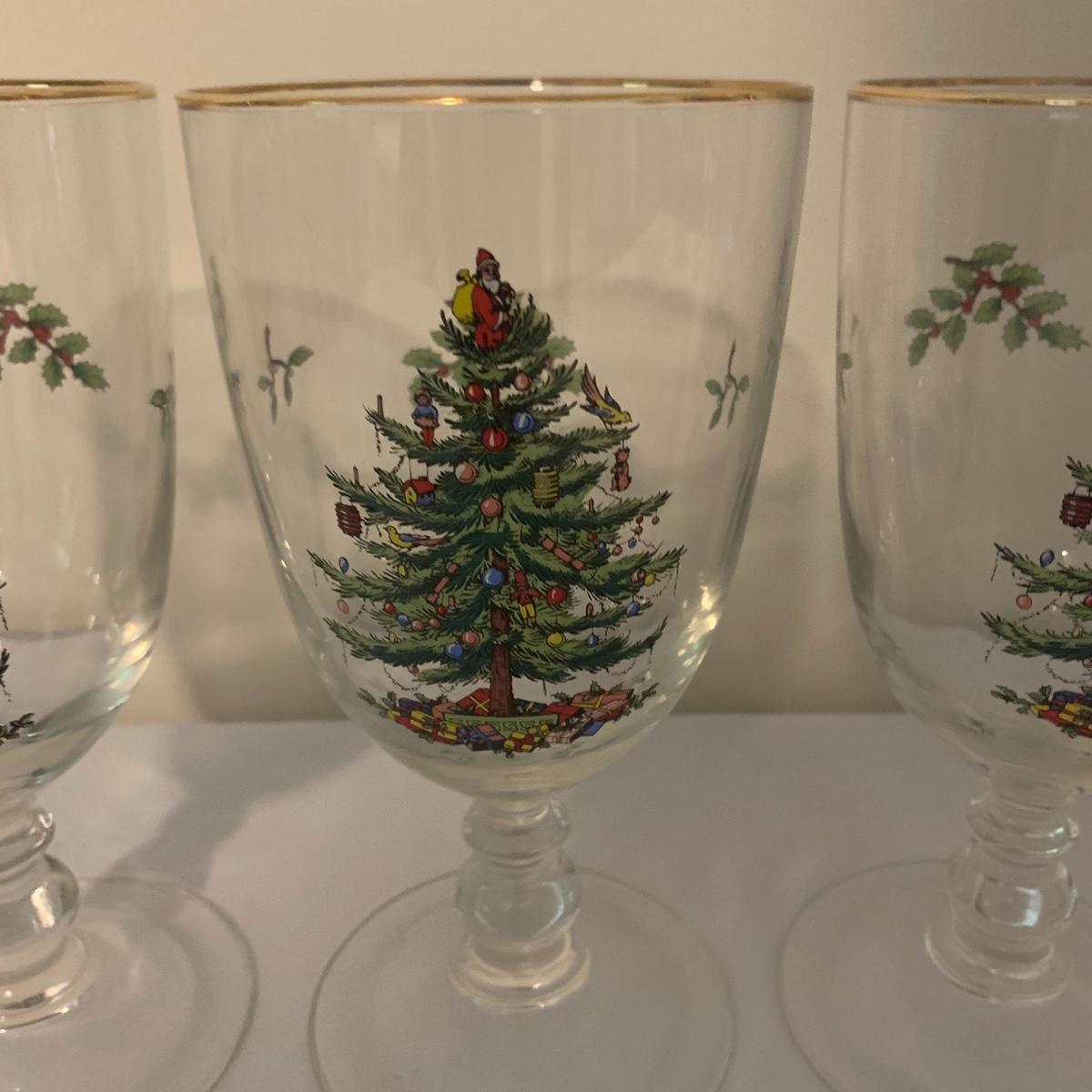 This set of Spode Dishes will make you love Christmas even more then you already do! This lot includes two sets of four wine glasses (four are pedestal goblets, and four are all purpose) a round 12” platter, a cake plate, three bowls, a covered dish, a spoon rest, candle holder, and a set of dishes and more. Several items are still contained in their original boxes and all pieces are in good condition.