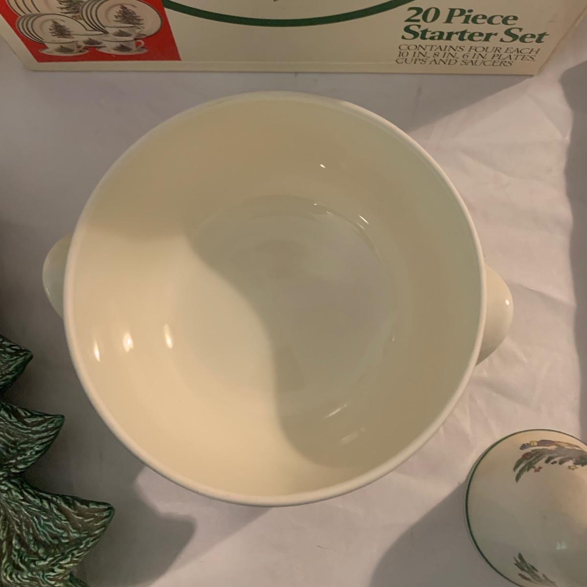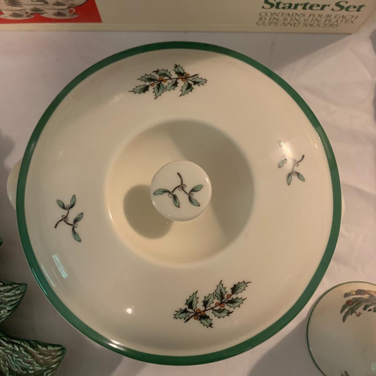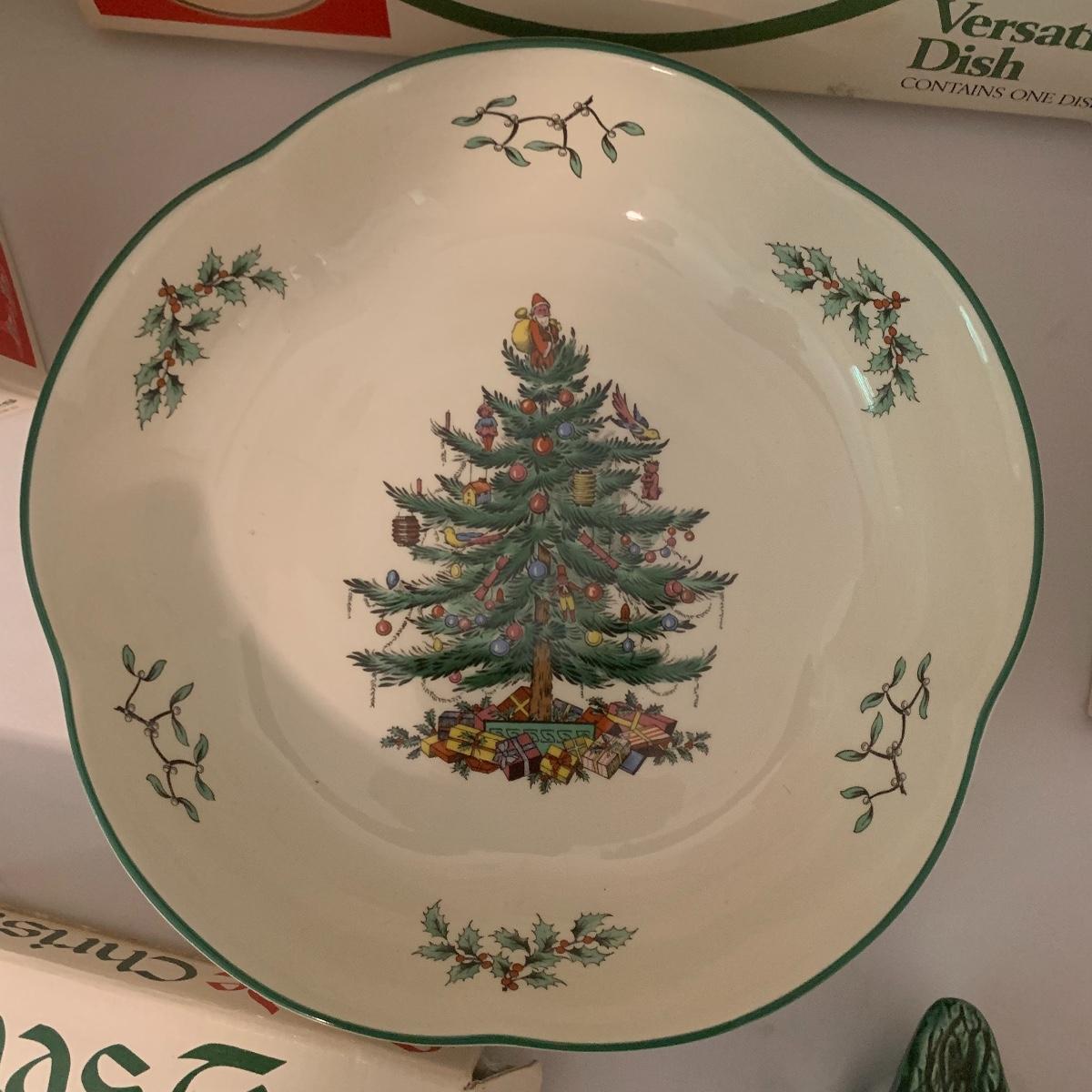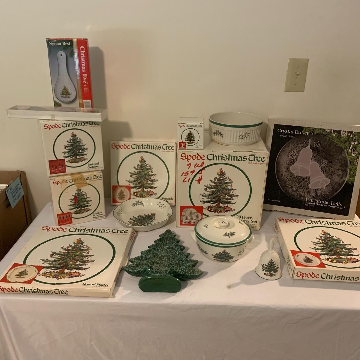 This set of Spode Dishes will make you love Christmas even more then you already do! This lot includes two sets of four wine glasses (four are pedestal goblets, and four are all purpose) a round 12” platter, a cake plate, three bowls, a covered dish, a spoon rest, candle holder, and a set of dishes and more. Several items are still contained in their original boxes and all pieces are in good condition.