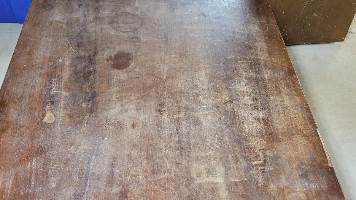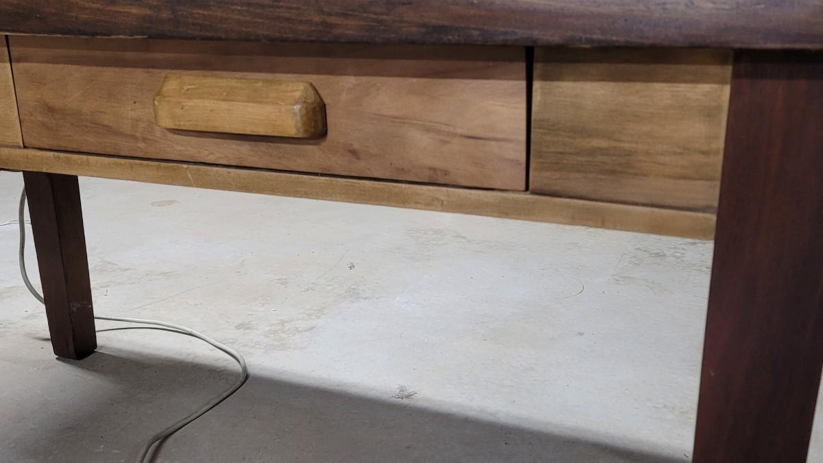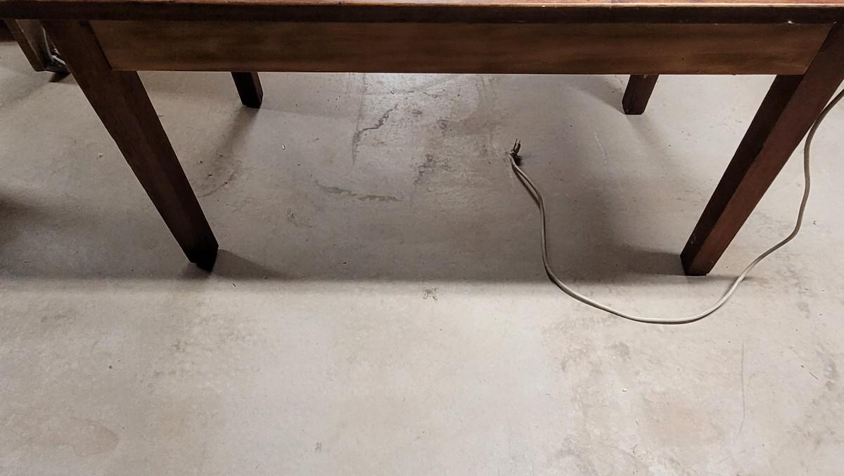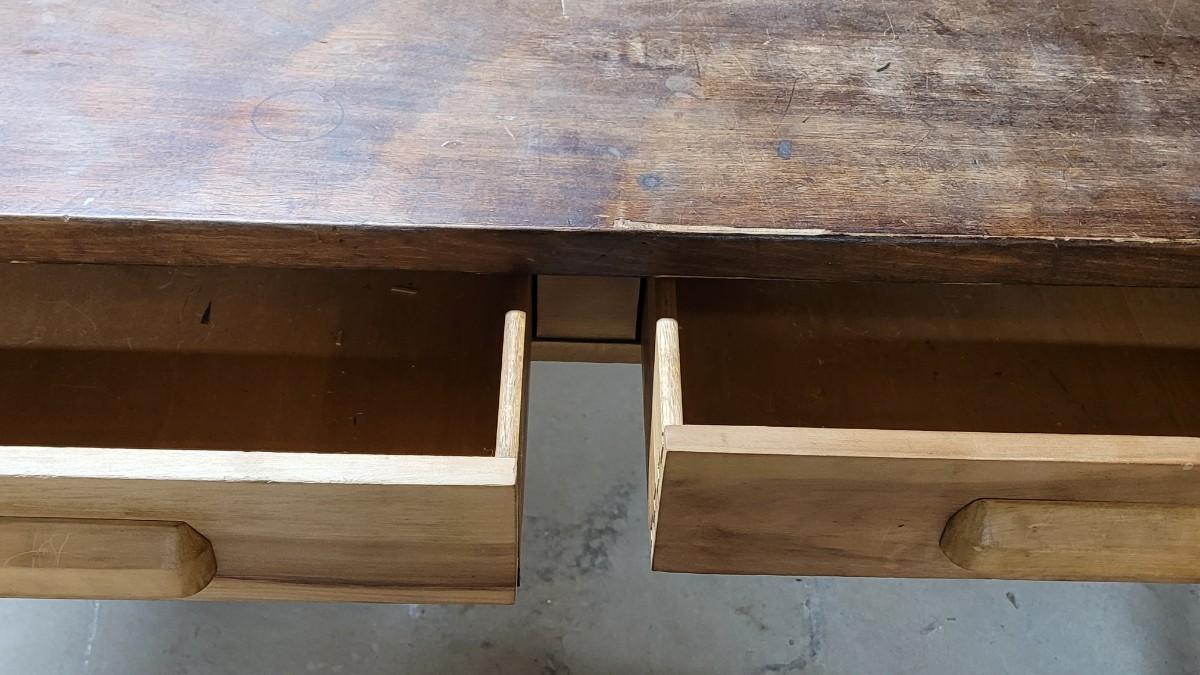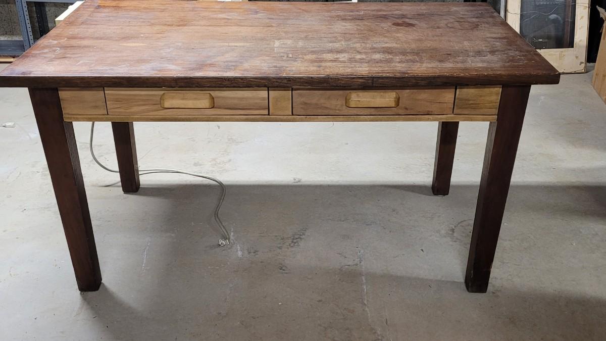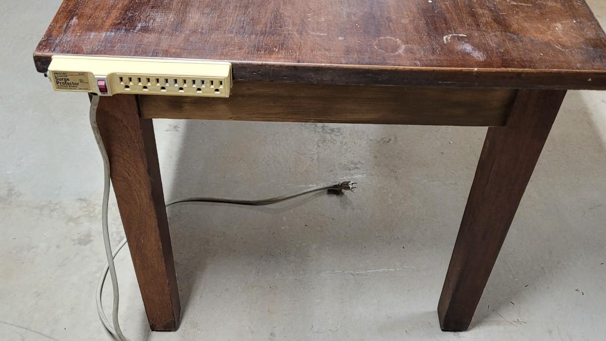 Lot 365: Antique 2 Drawer Desk with Added Power Strip