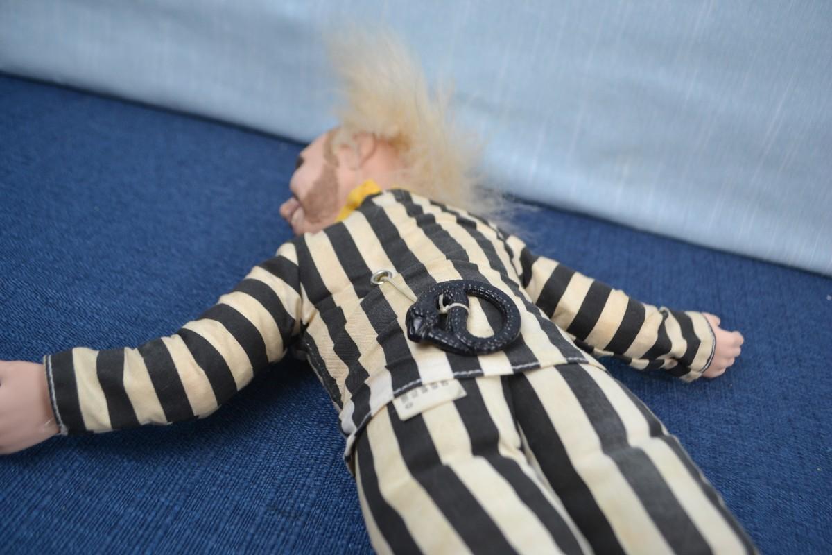 LOT 365. 16" BEETLE JUICE DOLL. PULL STRING DOLL TESTED AND WORKS