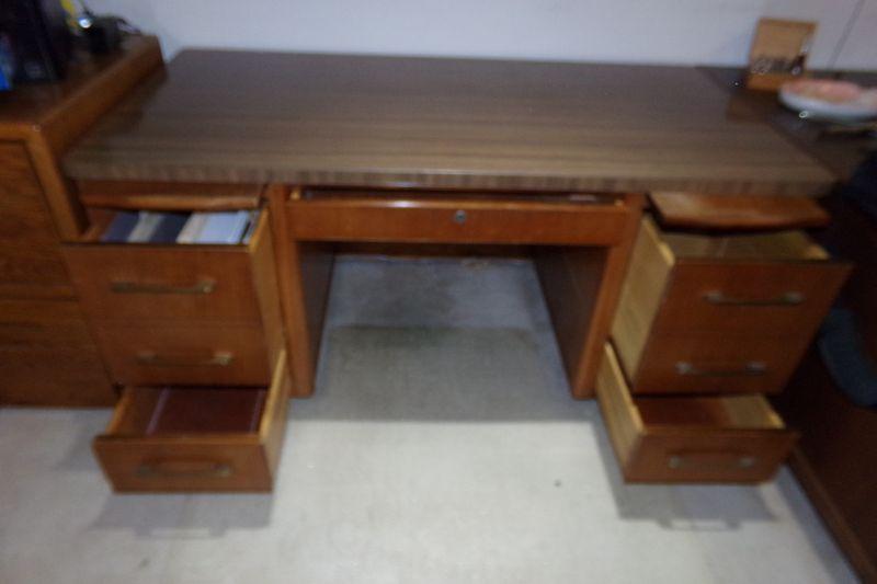 2 PULL OUT WORK SPACE, 2 FILING CABINETS, MIDDLE DRAWER, 2 SMALLER DRAWERS