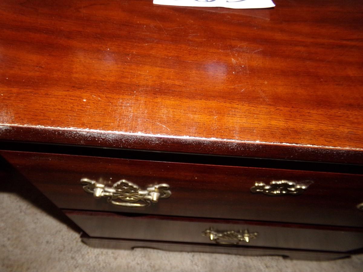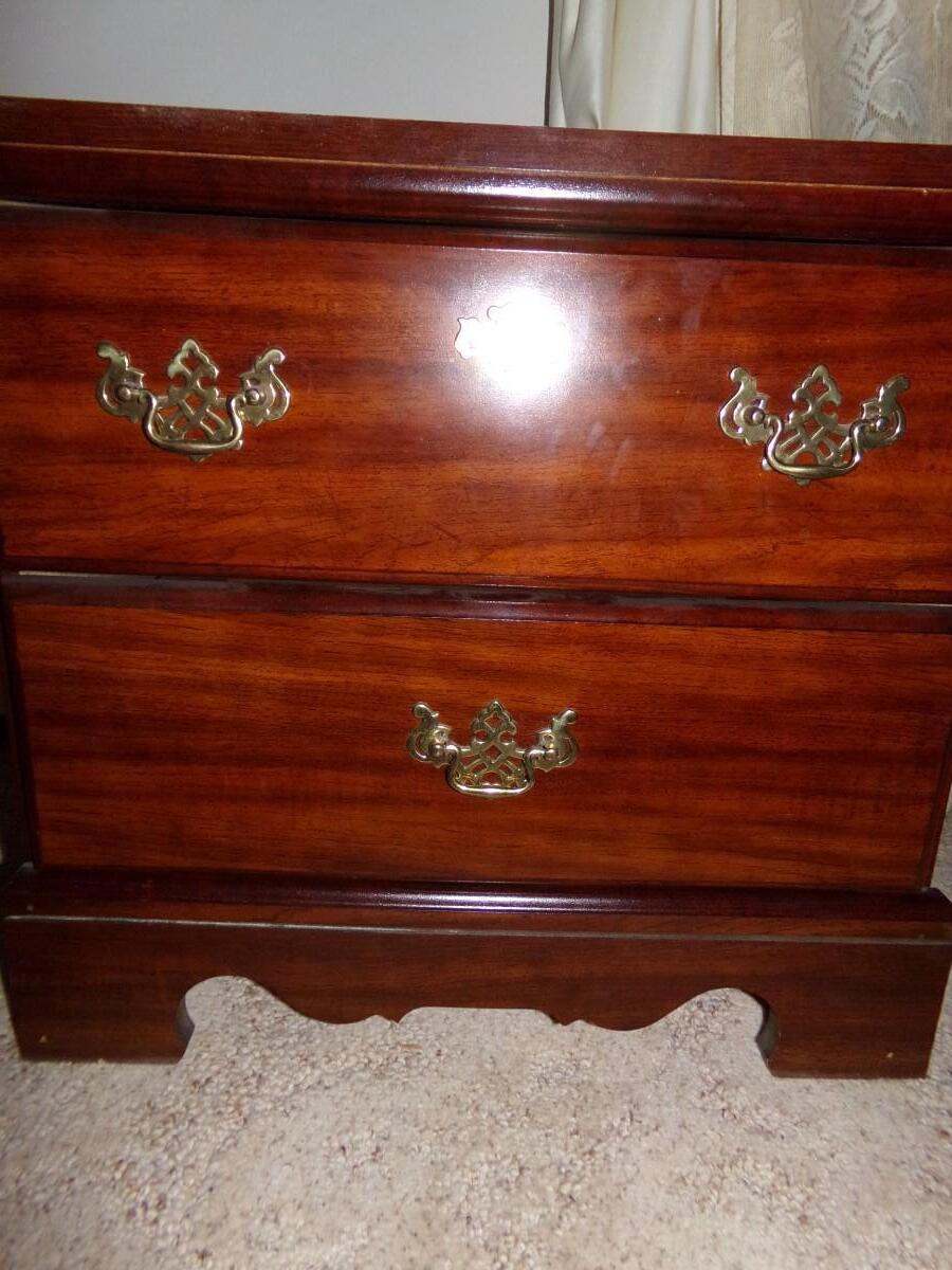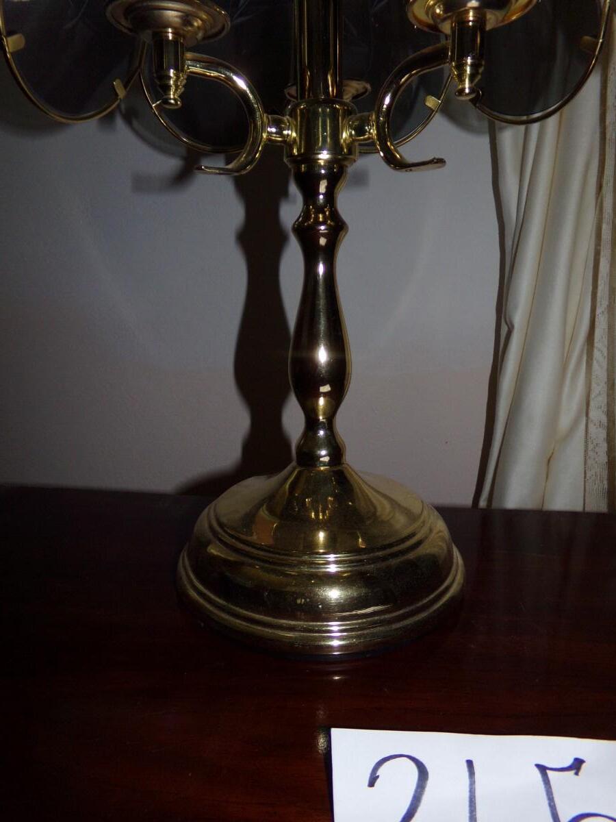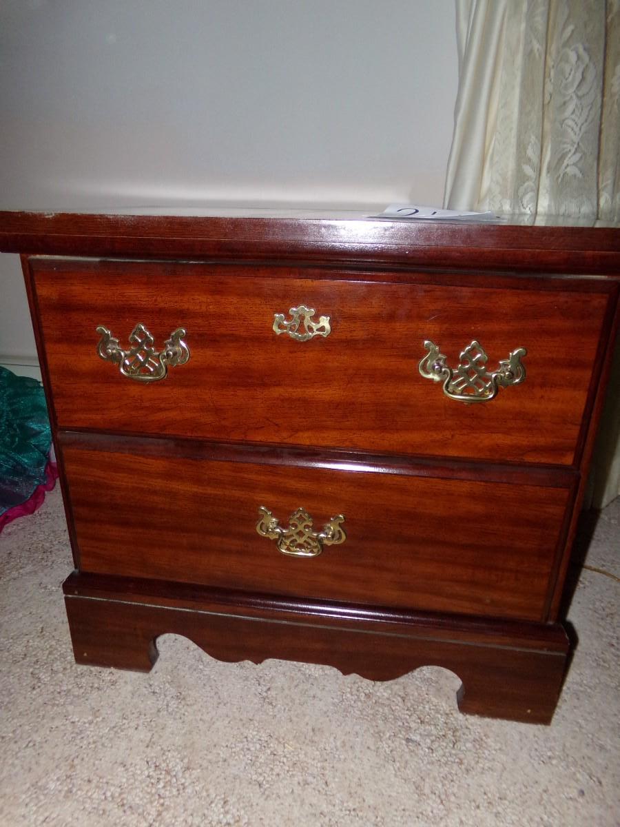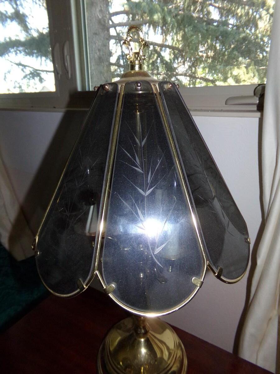 WOODEN 2 DRAWER NIGHT STAND WITH A 8 PANEL TINTED ETCHED GLASS TOUCH LAMP. NIGHT STAND MEASURES 21.5X24X16