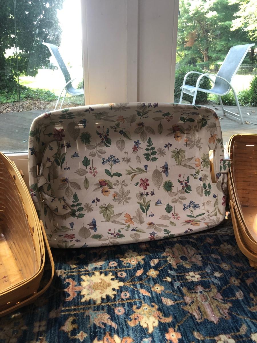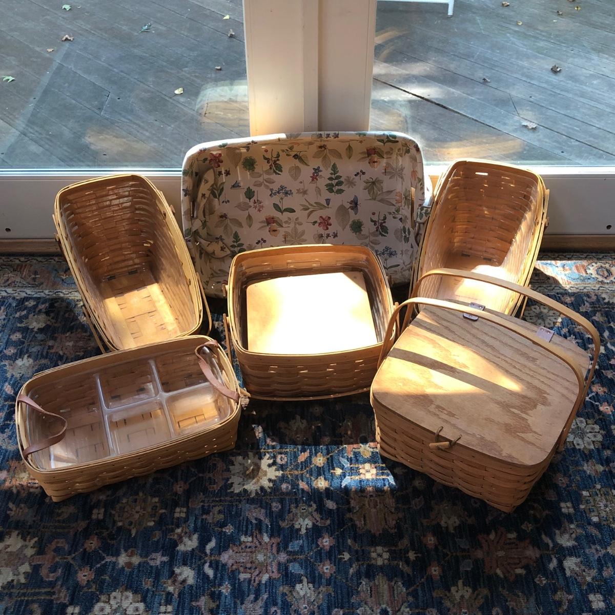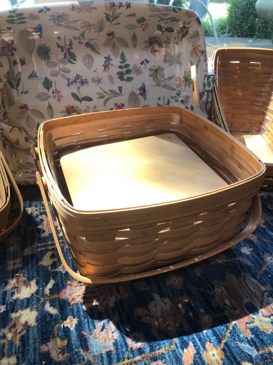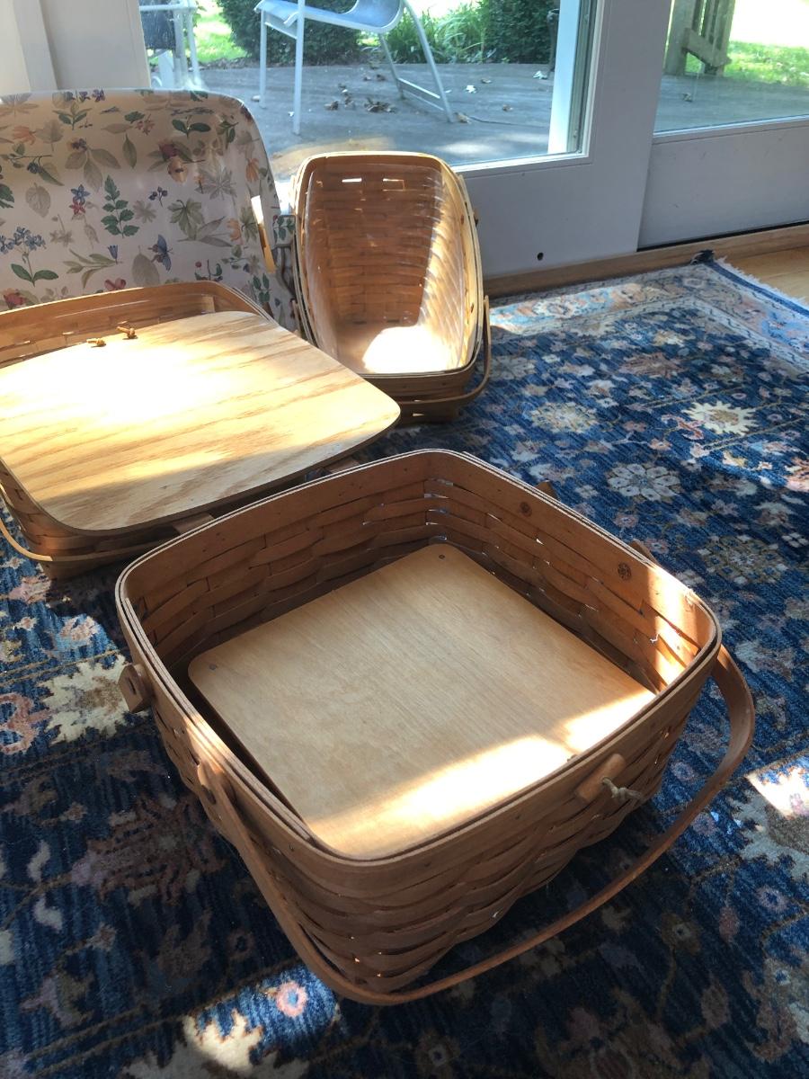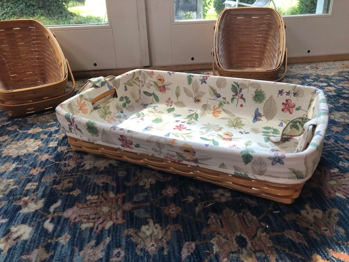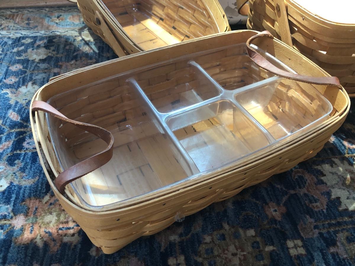 LOT 365L: Collection of Longaberger Baskets - Angled, Sectioned Plastic Liner, Square w/ Trays & Fabric Lined