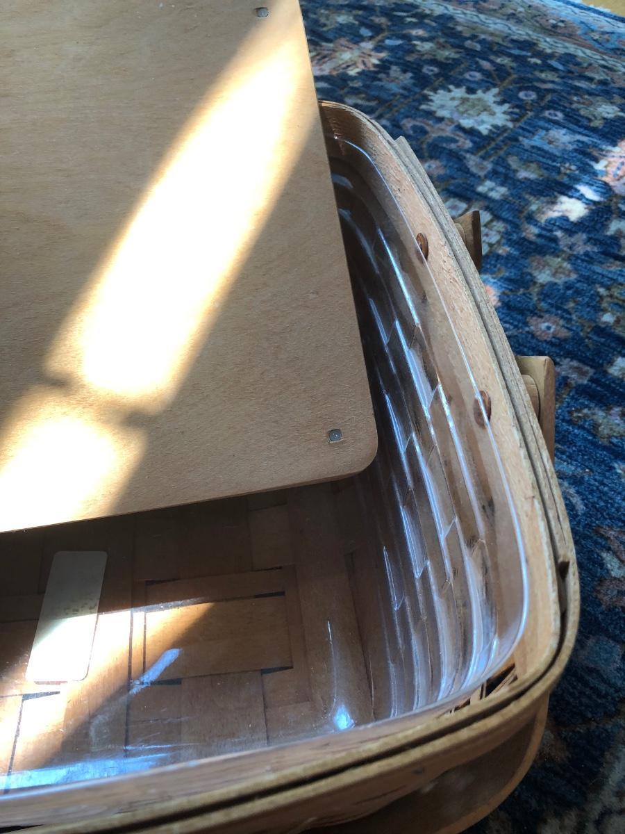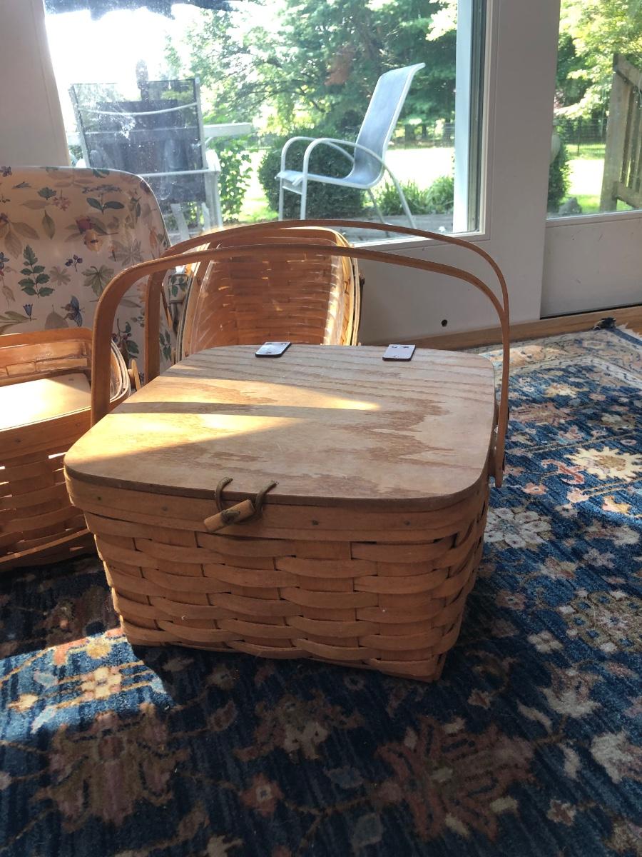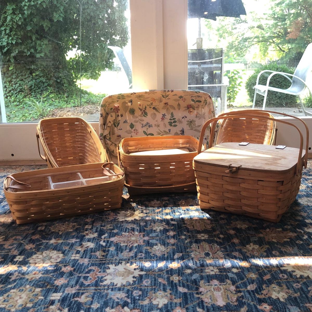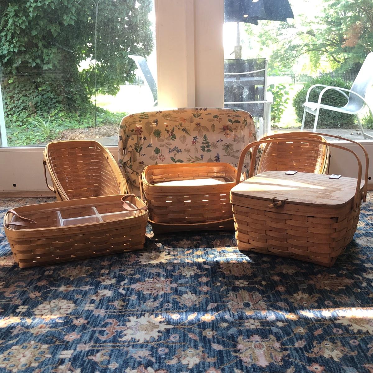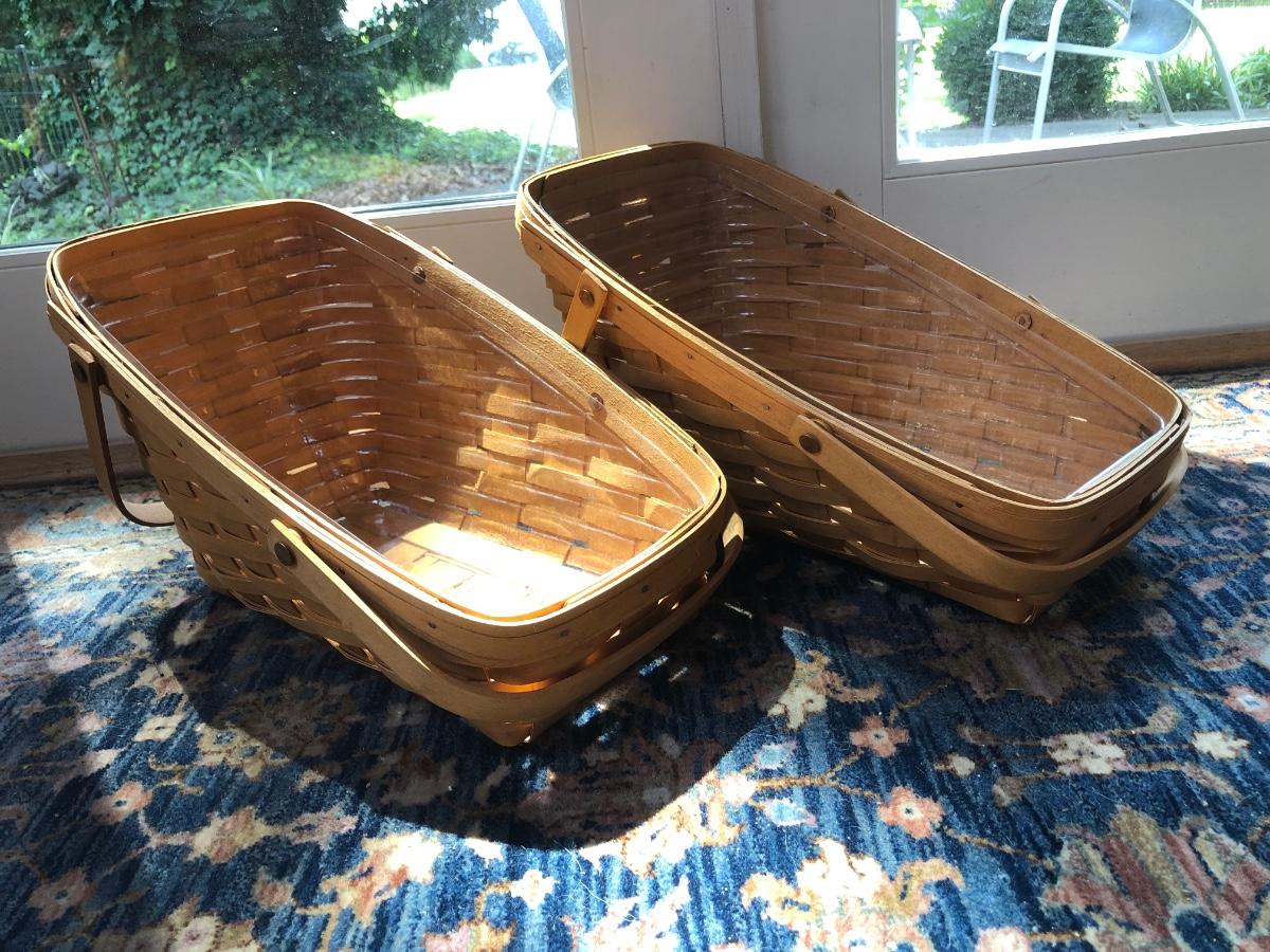 LOT 365L: Collection of Longaberger Baskets - Angled, Sectioned Plastic Liner, Square w/ Trays & Fabric Lined