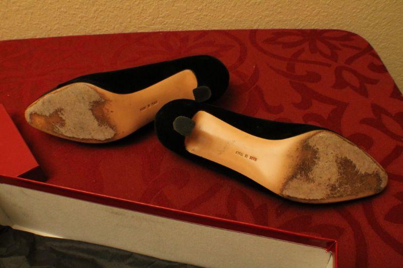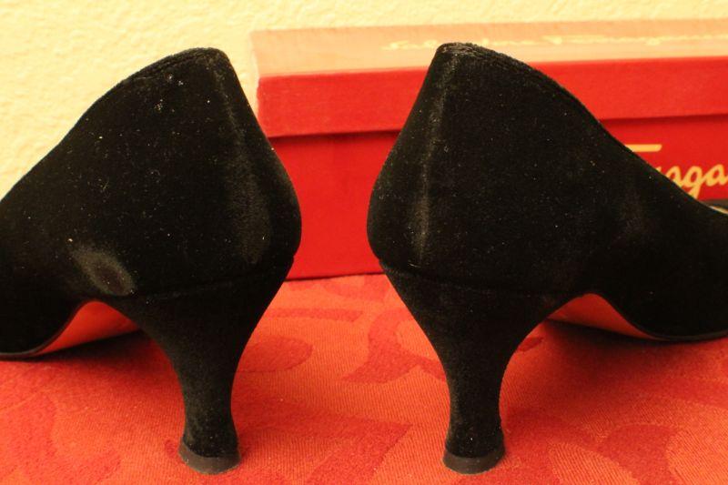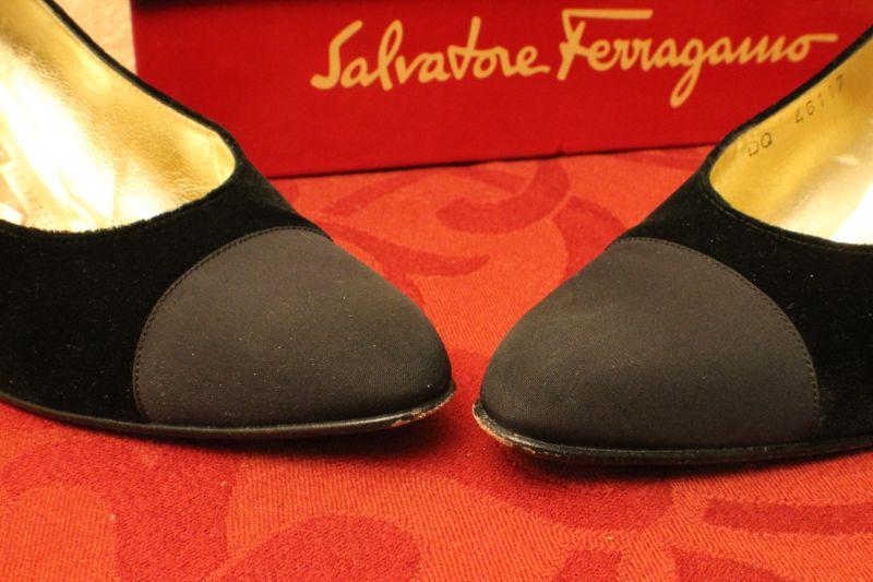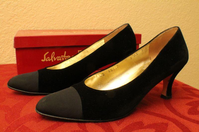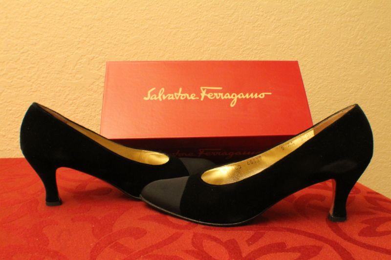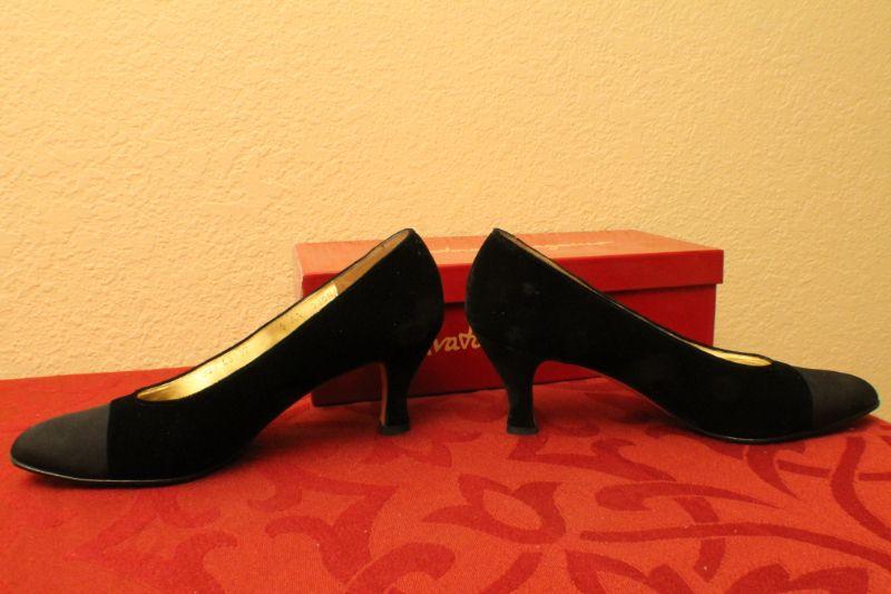 LOT #366: Salvatore Ferragamoâ„¢ Black Suede Heels SIZE 9 AA