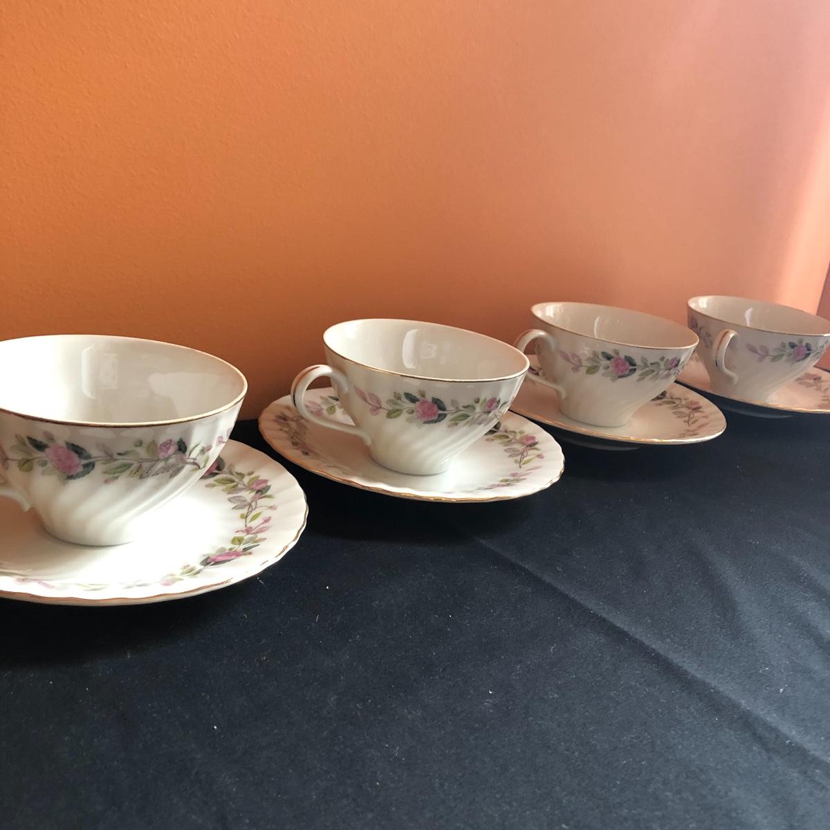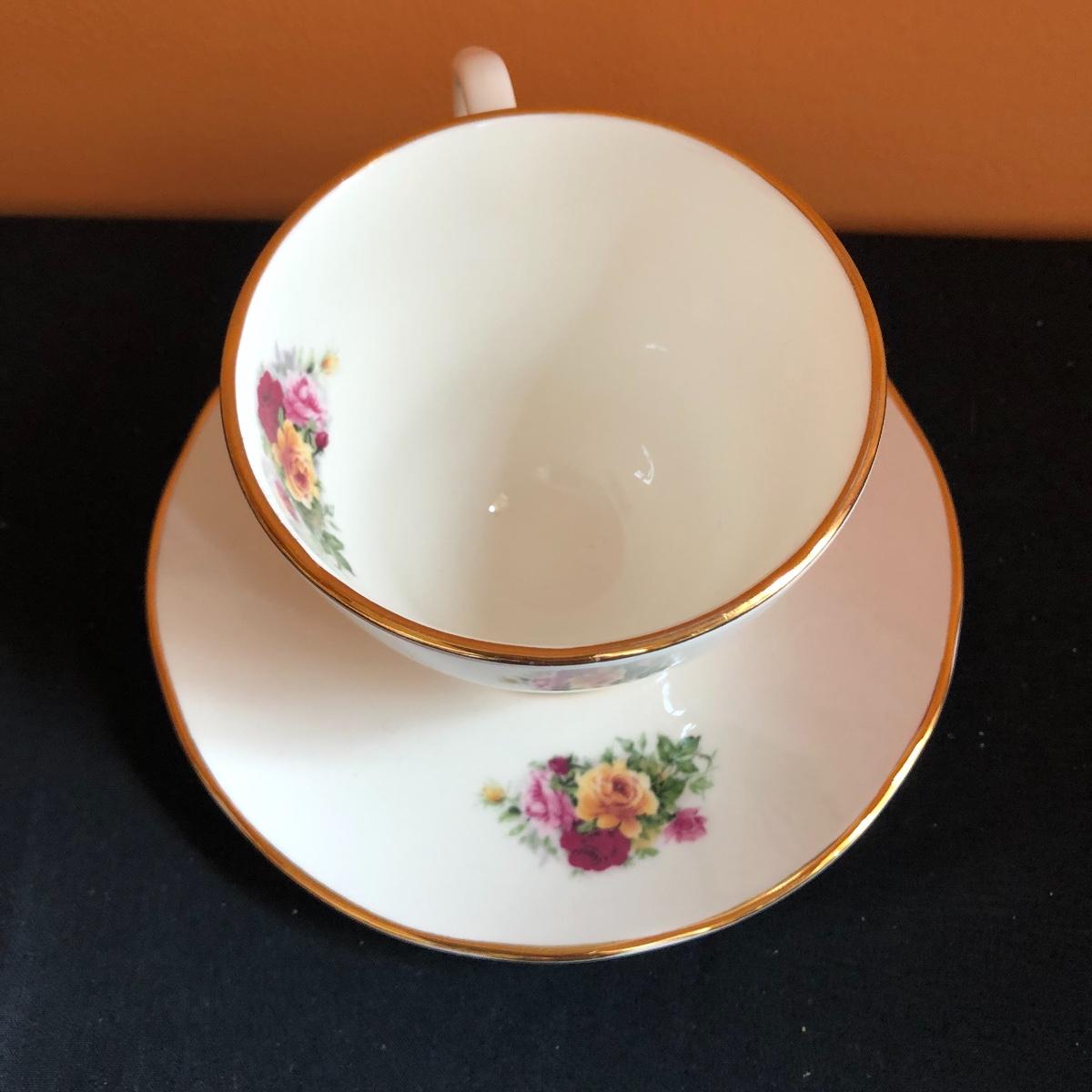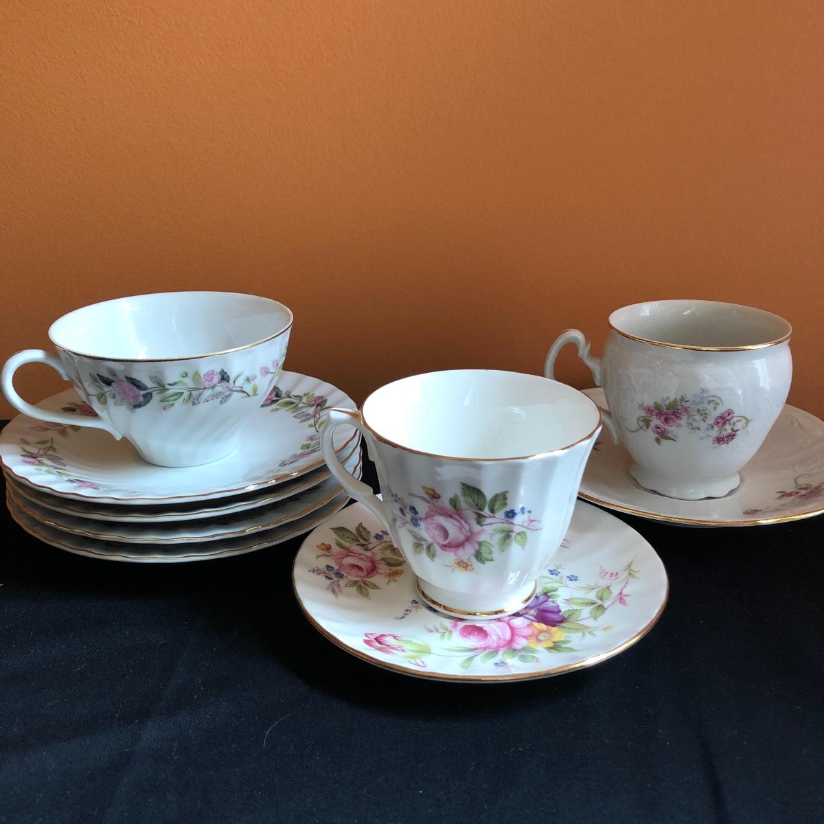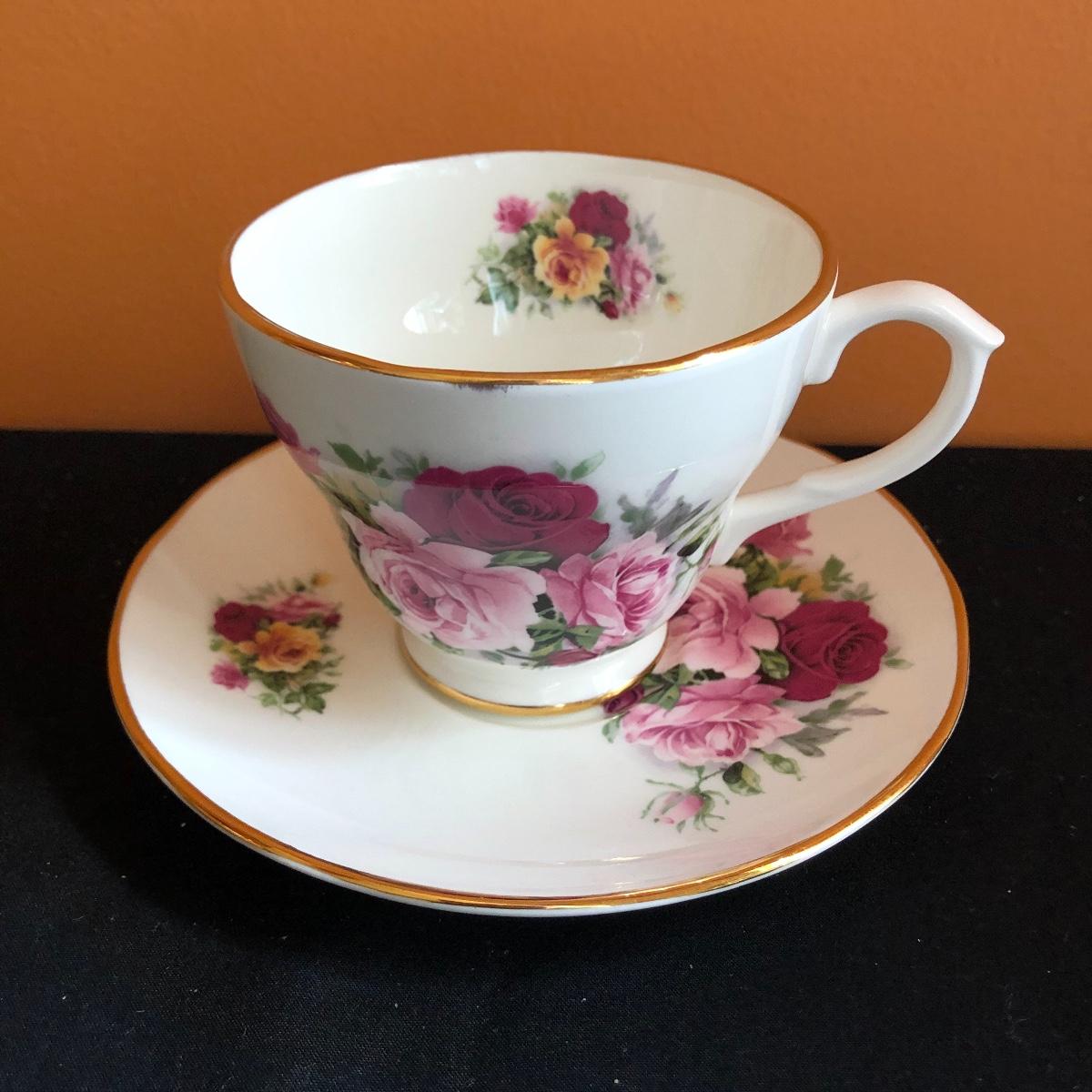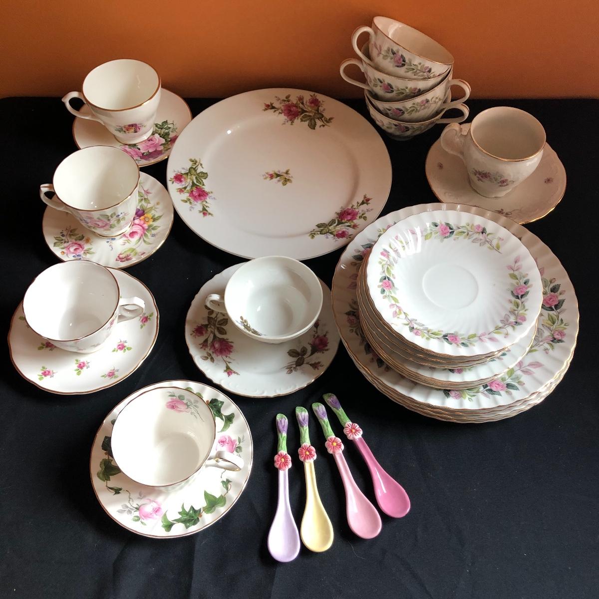 Calling all rose and tea fans alike! Between the six individual tea cup and saucer sets and the matching set of four cups and saucers, four dinner plates, and four salad plates, there are plenty of dishes for a tea party. Also included are four small floral spoons and a spare dinner plate. All these lovely rose adorned items will be a perfect addition to any tea or hosting lovers pantry!