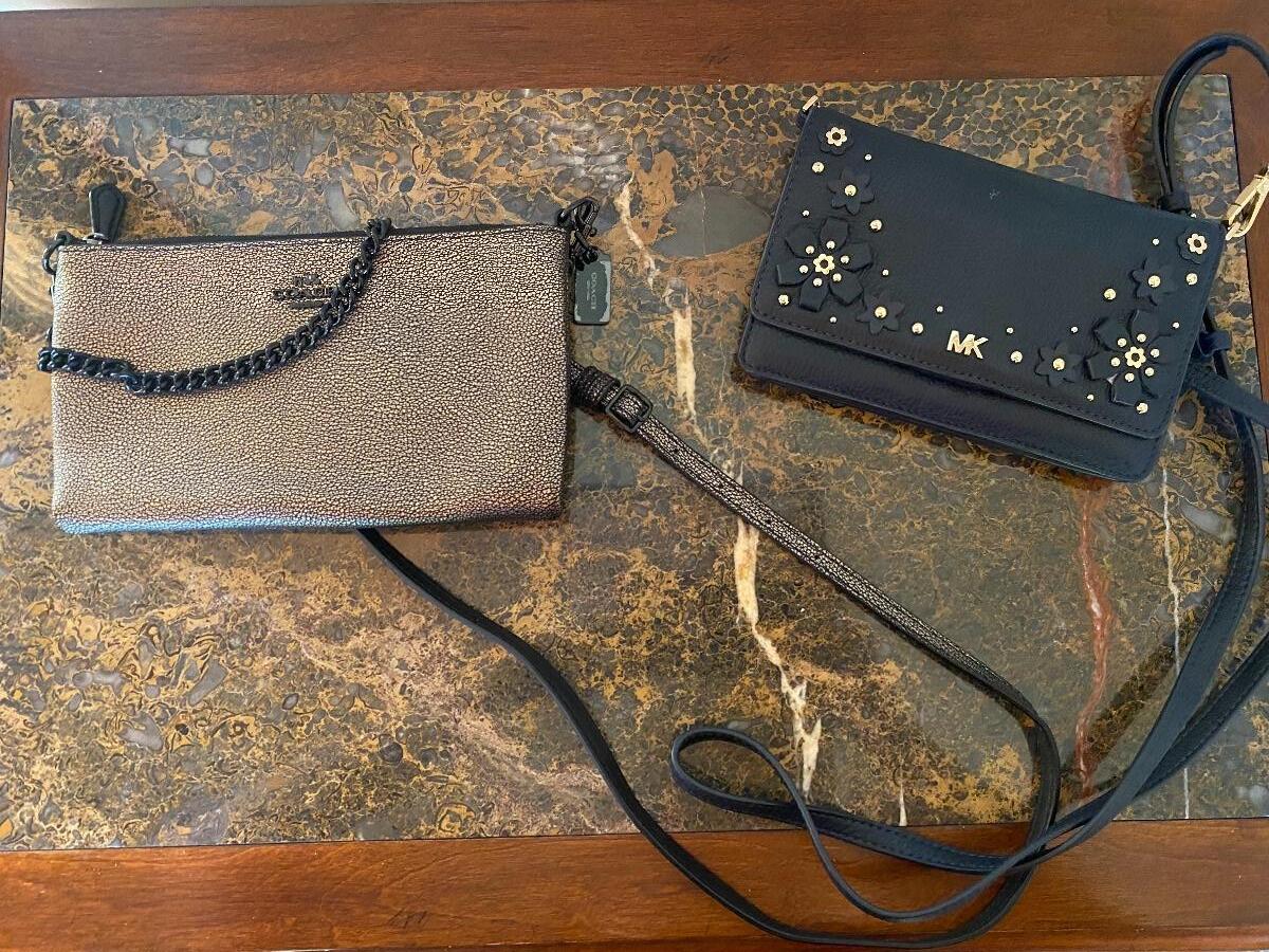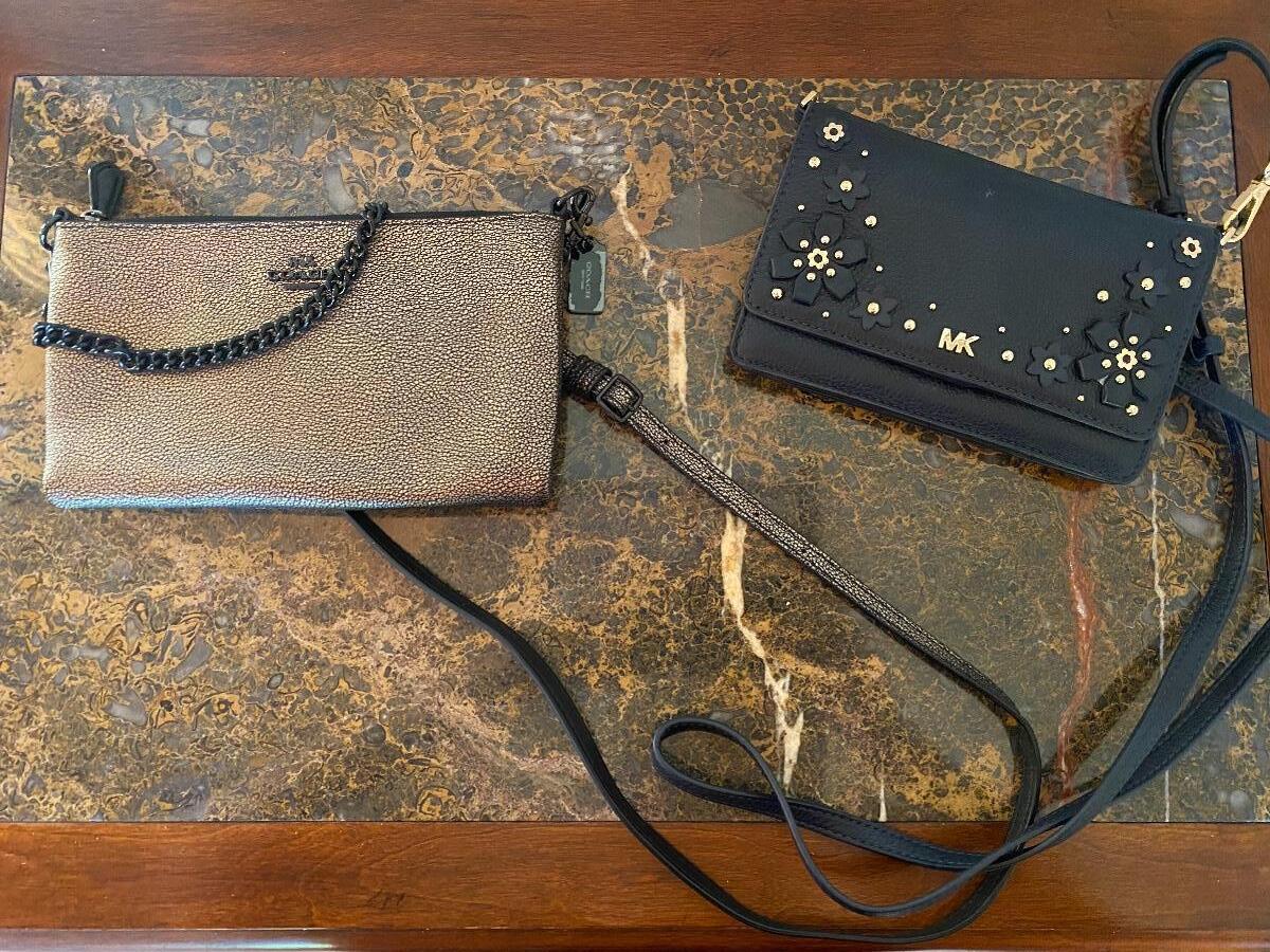 Two excellent pre-owned crossbody bags by Coach and Michael Kors. The Coach is a gold gun metal, and the MK has floral accents. The Coach can be used as wristlet as well. Please see all pictures as they are the best representation of the items. The pictures show condition, measurements if taken, and what is included in the lot. Due to the large amount that we photograph and the time frame, we are not always able to take measurements. All items unless noted, are pre-owned and have been used. If you purchased furniture, you must bring help. We do not allow one person to carry large furniture out on their own. Bring help, tools and a truck for the safety of our clients homes, and your personal safety. Company policy. Thank you.