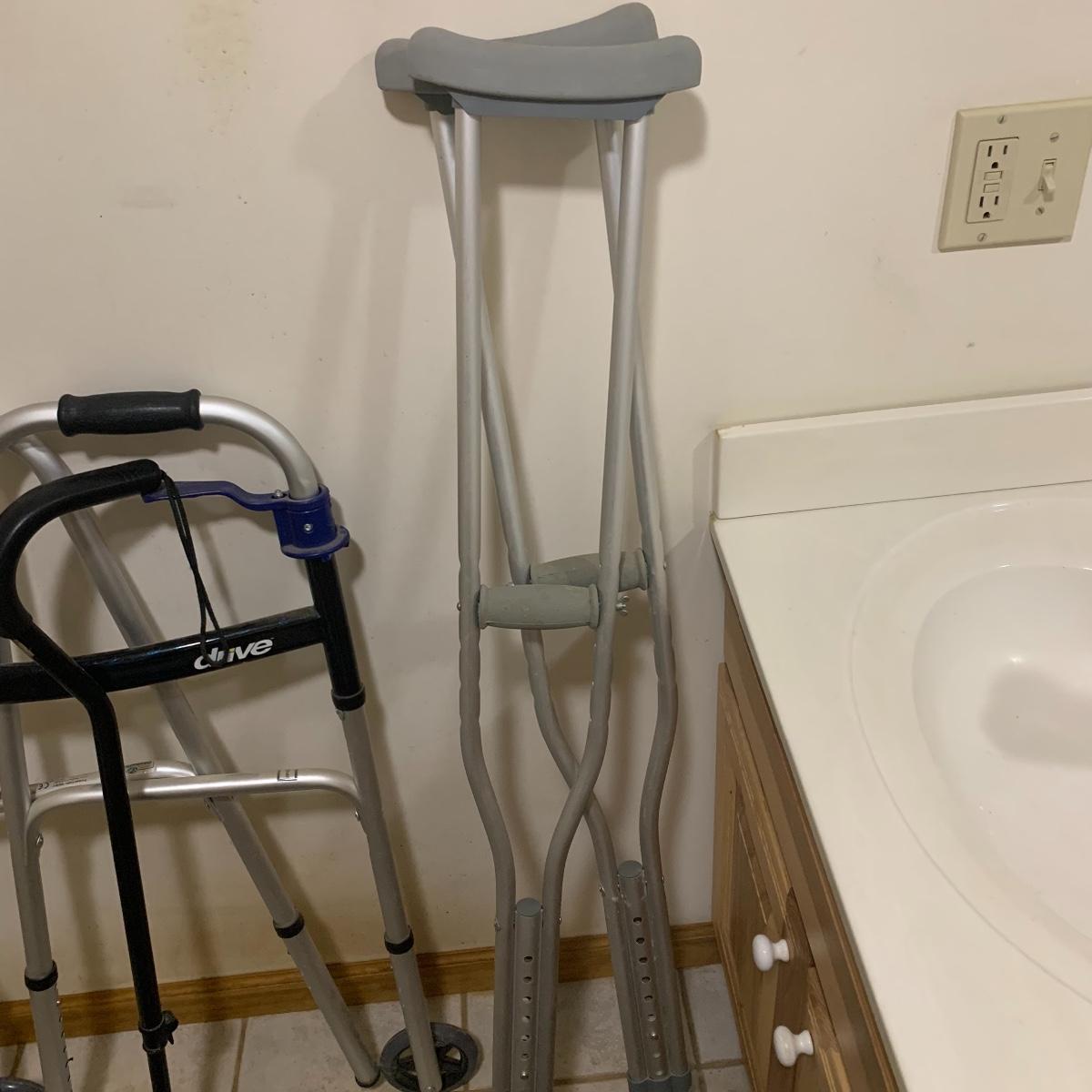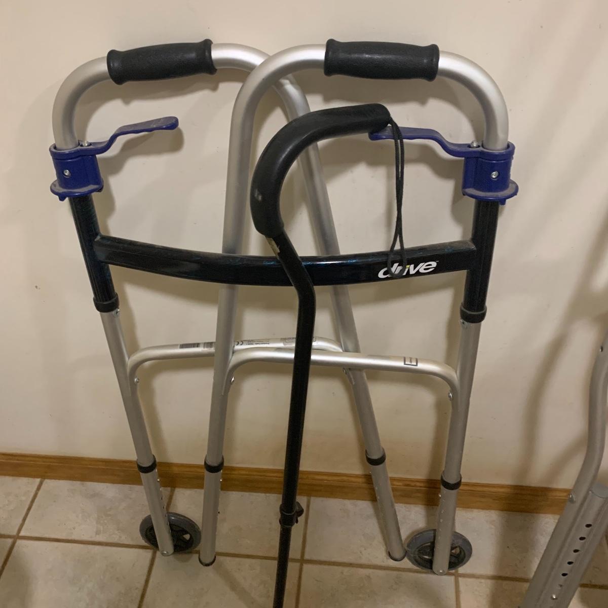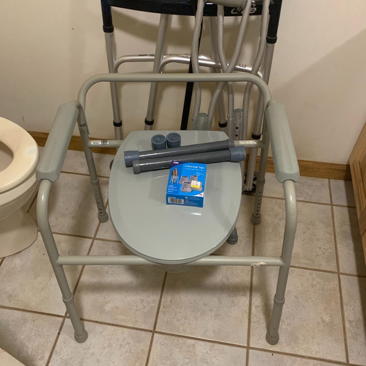 Do you or someone you know need help moving around? Here’s your answer. This lot includes a shower seat, potty seat, two walkers, a set of crutches, and a walking cane. All items are clean, and ready for service. Local pickup only.