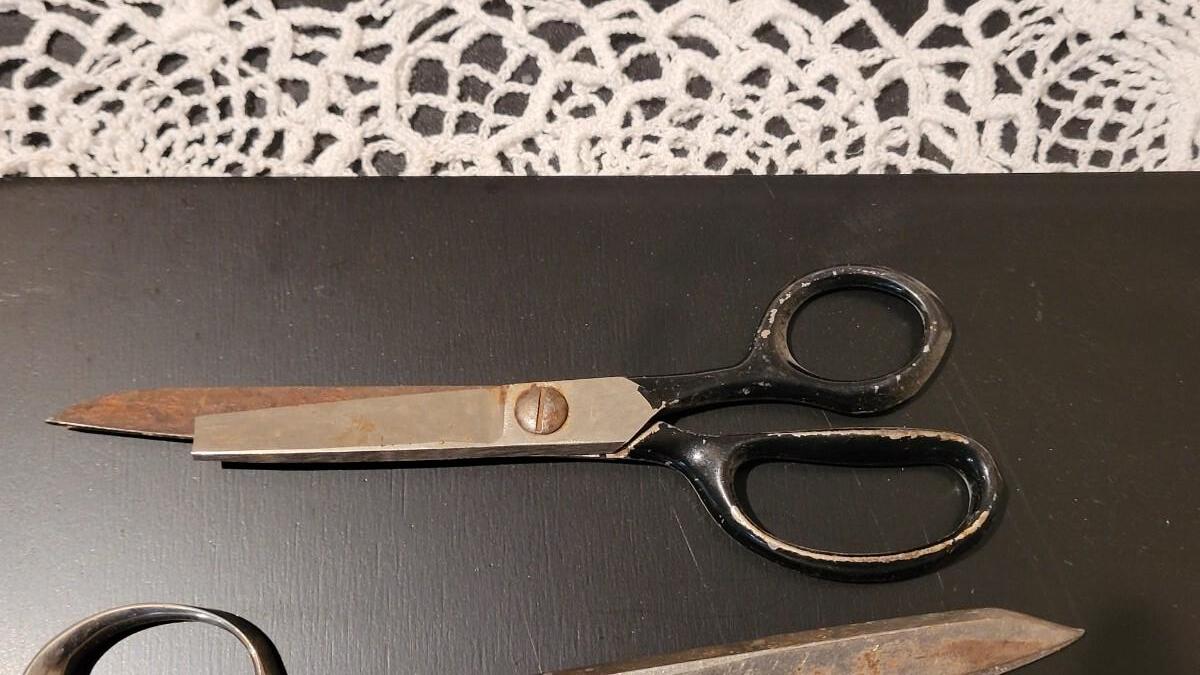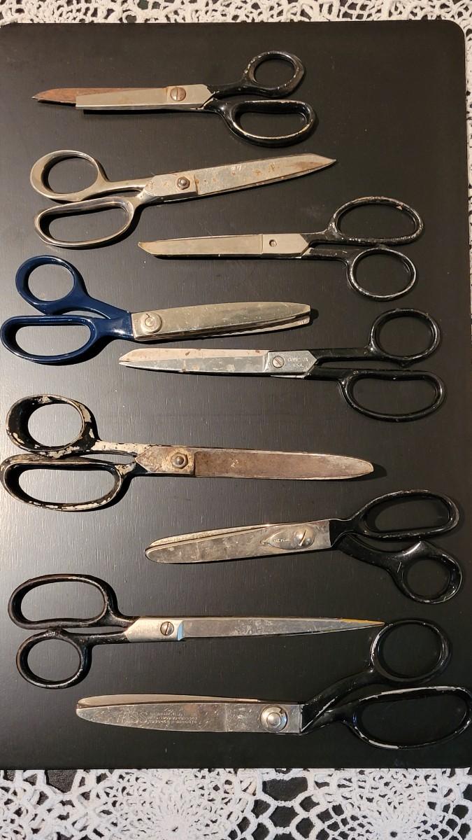 Lot 366: Vintage Black (and one blue) Handle Scissors lot