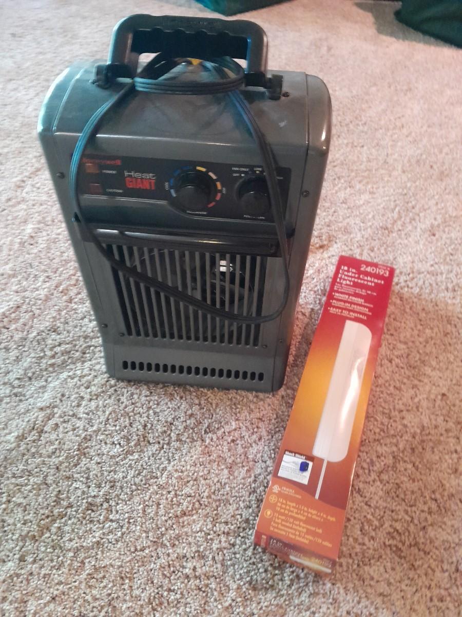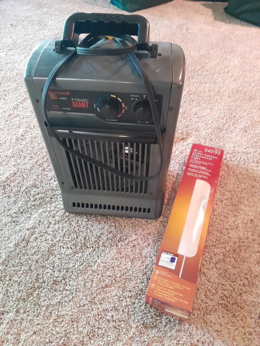 HONEYWELL AIR HEATER AND 18" UNDER CABINET FLOURESCENT LIGHT