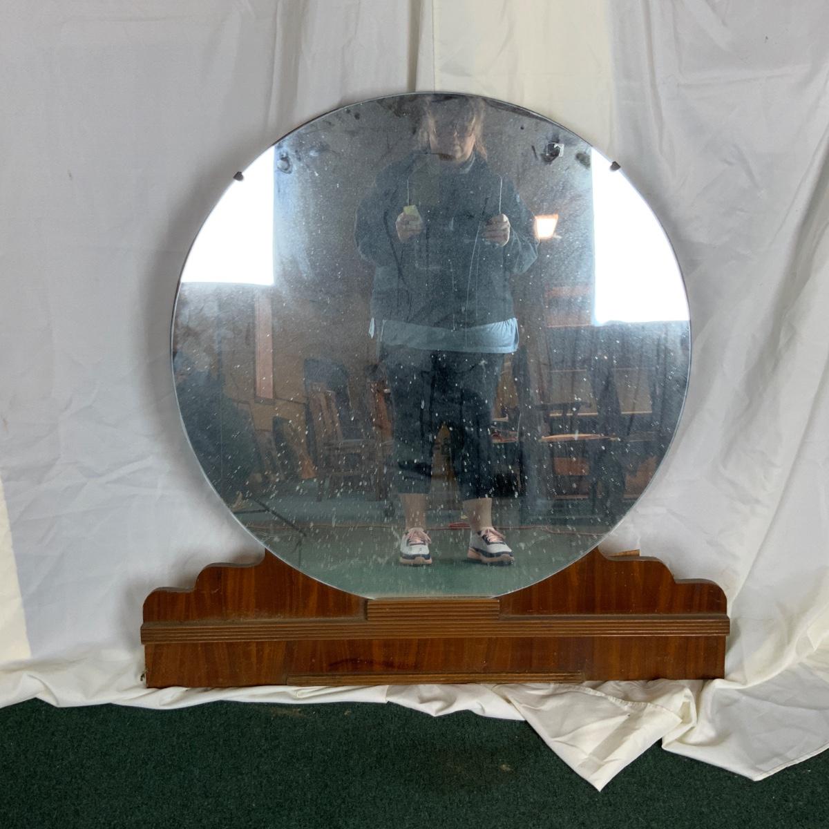 Round Mid-Century Mirror. Nice piece to dress up any room! //::\\ Please see photos for details and condition. No attempt has been made to hide any imperfections. All items listed in this auction are warehouse items, and need to be cleaned. A majority of the items need restoration as well. All items are sold AS IS and WITHOUT GUARANTEE. If you are uncertain about an item, DO NOT BID. Due to the nature of this online auction in-person inspection is HIGHLY recommended. All Sales are FINAL. Pick Up Times are FIRM. Please confirm with your own schedule that you can pick up in the scheduled times listed in the Terms and Conditions. Any questions please message the auctioneer. DO NOT Contact The Harp Gallery.