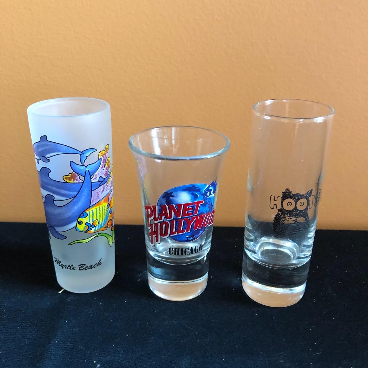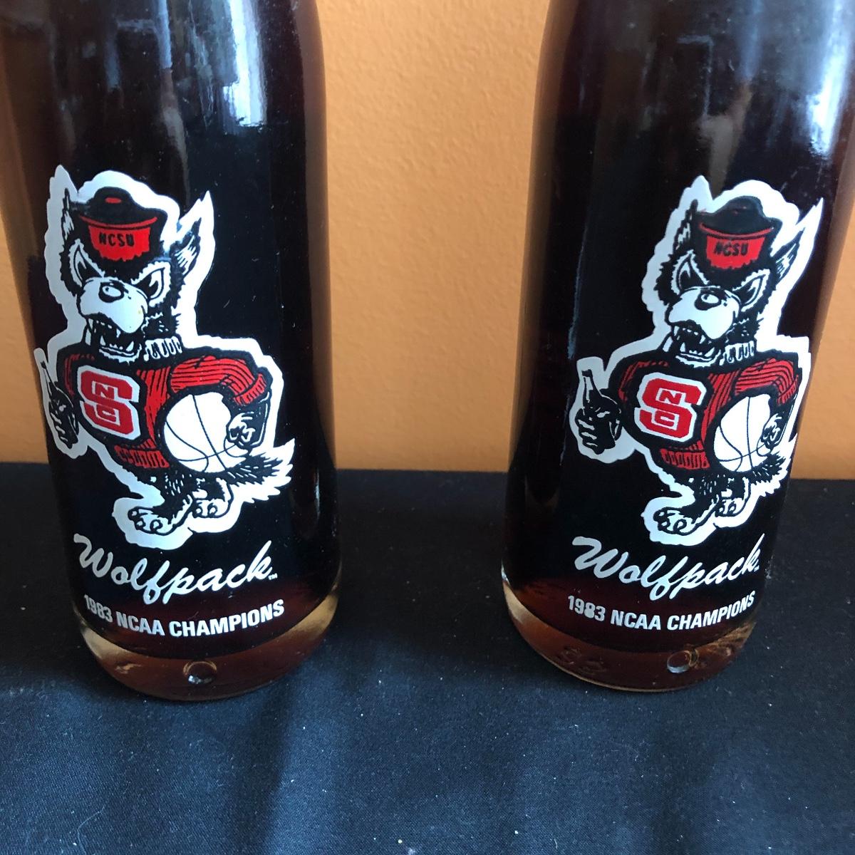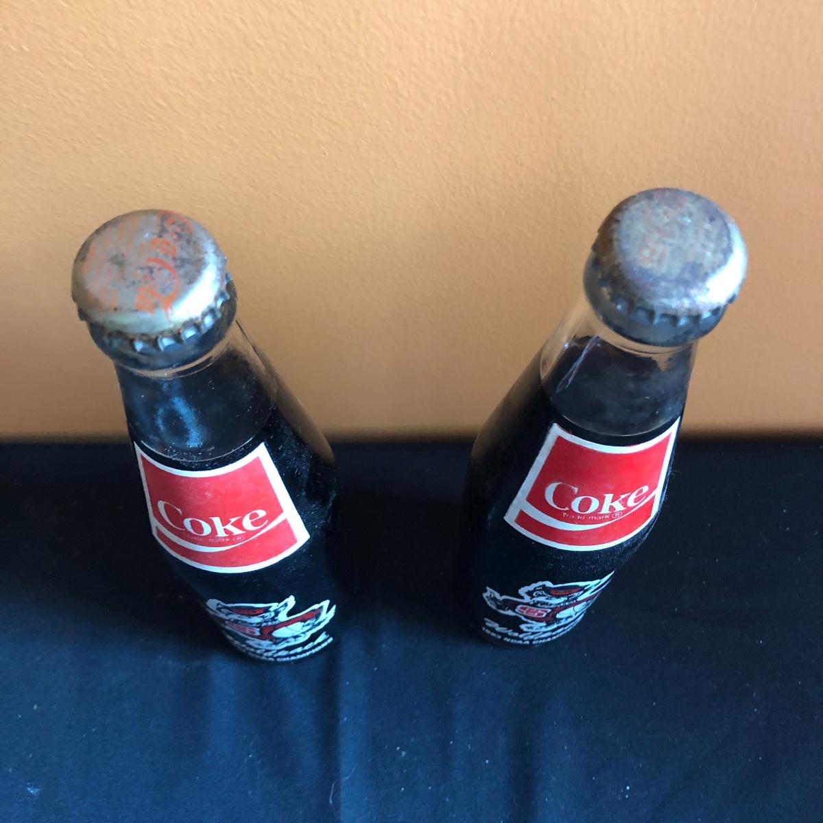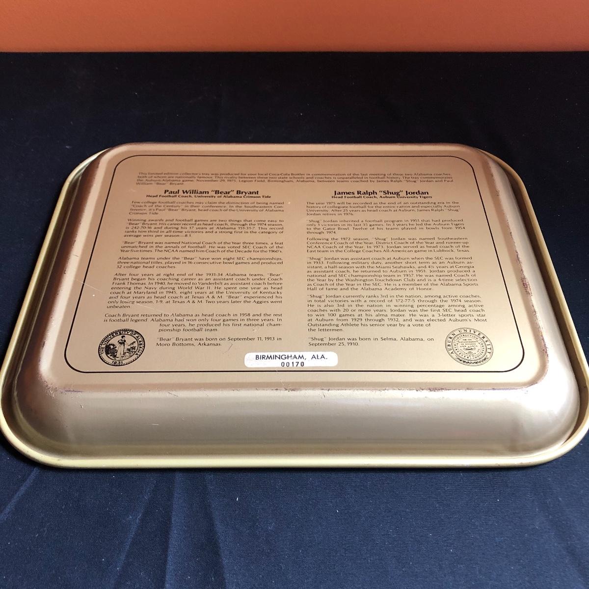 This lot of collectibles includes two Hard Rock Cafe cocktail glasses, two Wolfpack 1983 NCAA championship unopened Coke bottles, an unopened RC Cola bottle, a Myrtle Beach shot glass, a Hooters shot glass, a Planet Hollywood shot glass, two empty coke bottles, a six back of Coca-Cola, one of which has been open and is empty, two empty lidded RC bottles, two RW pint glasses, three RW mini pint glasses, and an Alabama vs Auburn Coca-Cola tray. The metal tray commemorating the Alabama and Auburn November 29, 1975 game in Birmingham, Alabama, has information about each coach on the back of the tray. If you love sports, Coca-Cola memorabilia, or collectible bar glasses, this lot has just what you need!