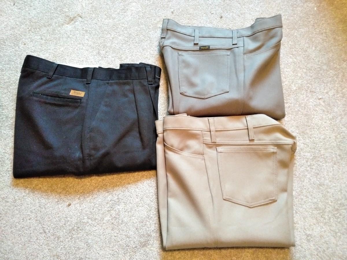 THREE PAIR OF MEN'S WRANGLER SLACKS SIZE 34 AND 35 X 30