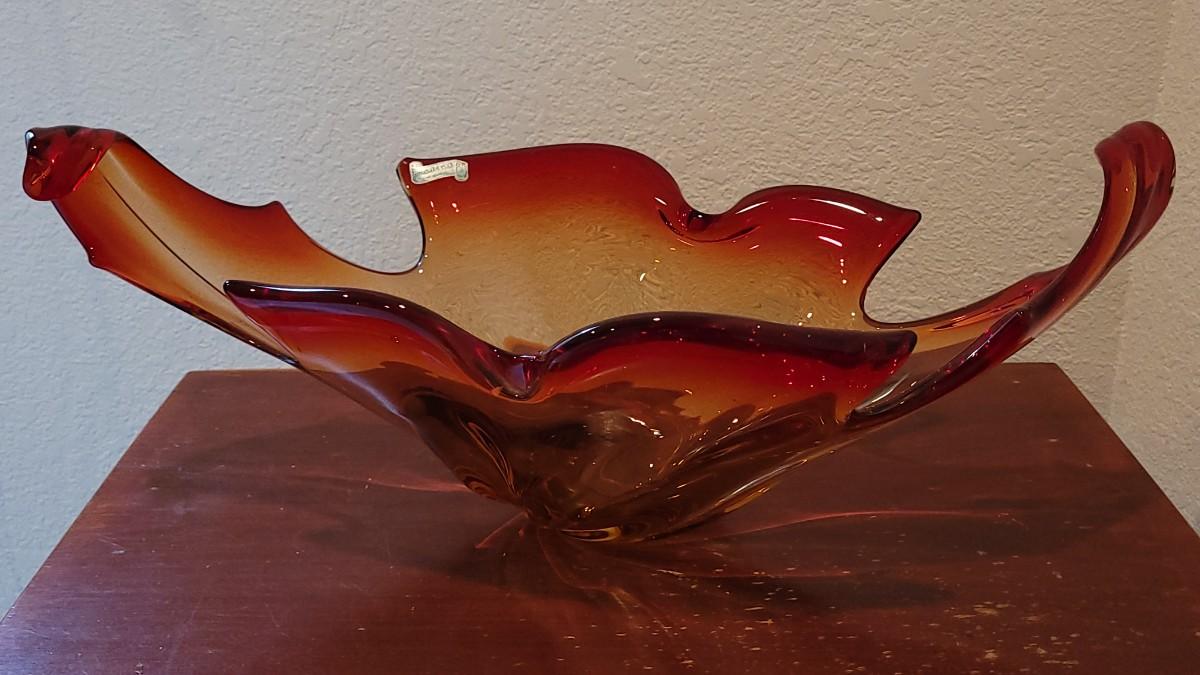 Lot 367: Vintage Large Red/Yellow MURANO Glass Bowl