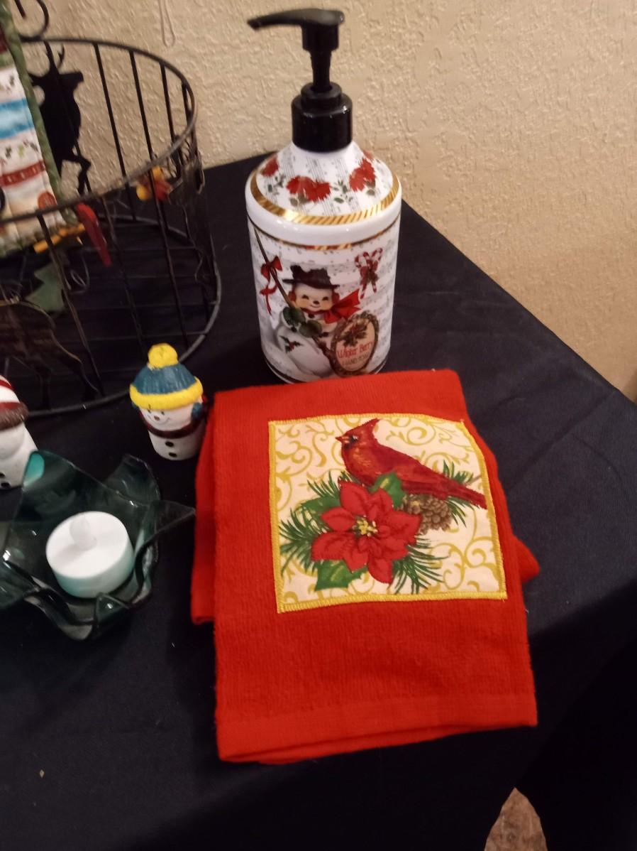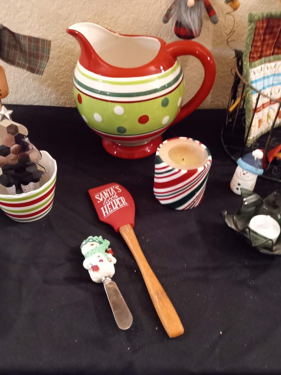 HAND TOWEL, CERAMIC SOAP DISPENSER, NIGHT LIGHT, CANDLES AND CANDLE HOLDERS, WIRE BASKET WITH MOOSE, PITCHERM SPATULA, NIGHT LIGHT AND MORE