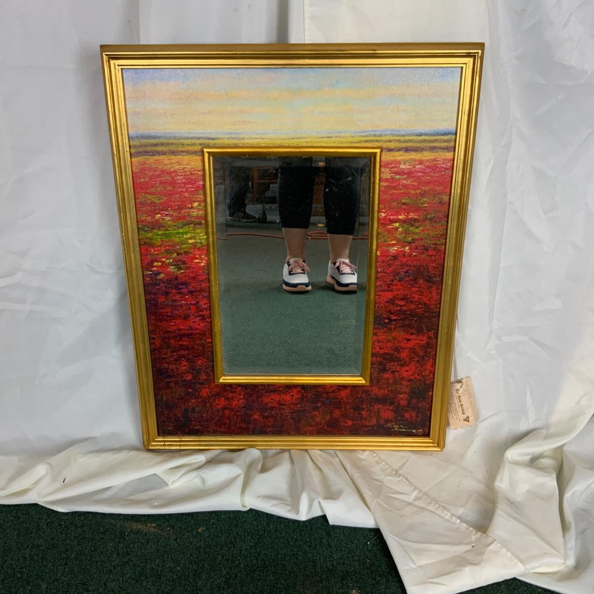 Rectangular Field of Poppies Mirror. Modern and lovely. //::\\ Please see photos for details and condition. No attempt has been made to hide any imperfections. All items listed in this auction are warehouse items, and need to be cleaned. A majority of the items need restoration as well. All items are sold AS IS and WITHOUT GUARANTEE. If you are uncertain about an item, DO NOT BID. Due to the nature of this online auction in-person inspection is HIGHLY recommended. All Sales are FINAL. Pick Up Times are FIRM. Please confirm with your own schedule that you can pick up in the scheduled times listed in the Terms and Conditions. Any questions please message the auctioneer. DO NOT Contact The Harp Gallery.