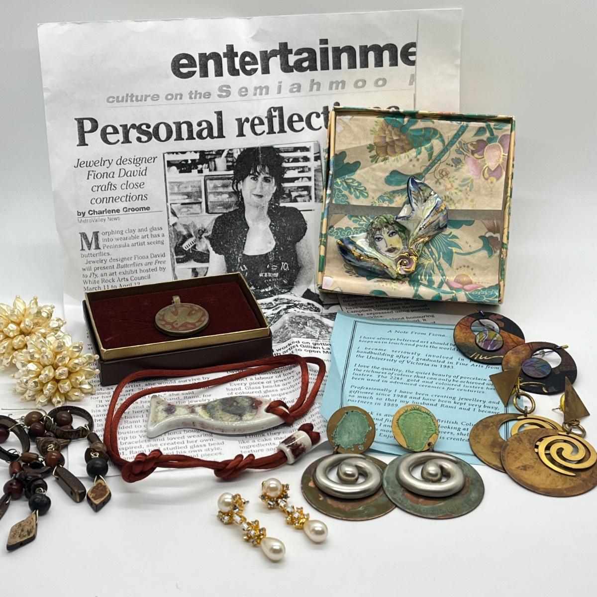 Lot 367J: Fiona Artisan Brooch, Brass 1968 Sancta Guild Dove Pendant and More