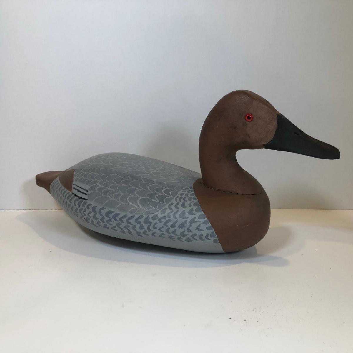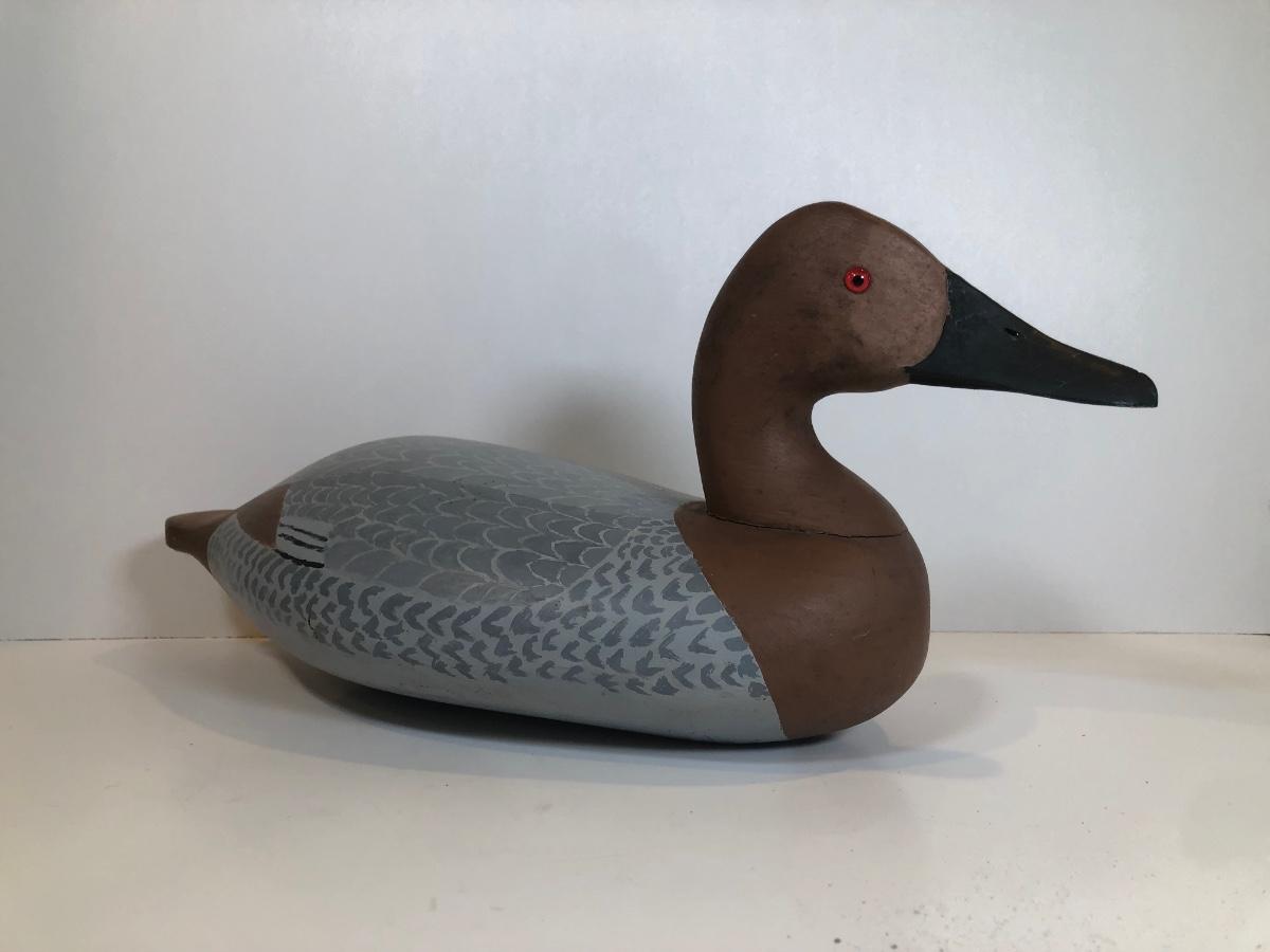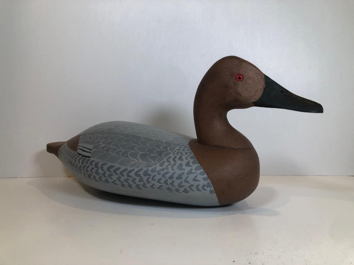 LOT 367S: Signed Horace D Graham Canvasback Decoy Duck w/ Glass Eyes