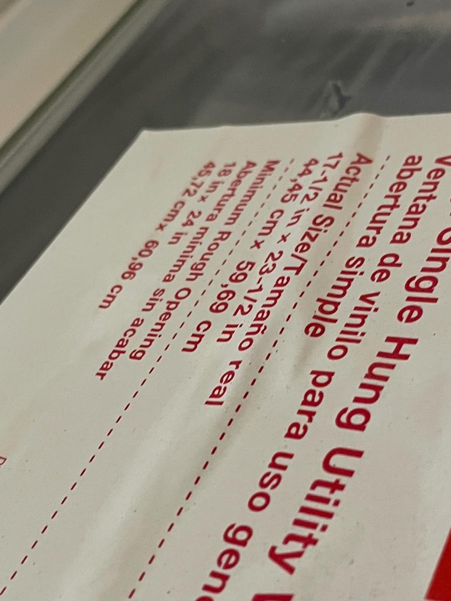 Lot 368 vinyl single hung window - new in package (17.5 x 23.5)