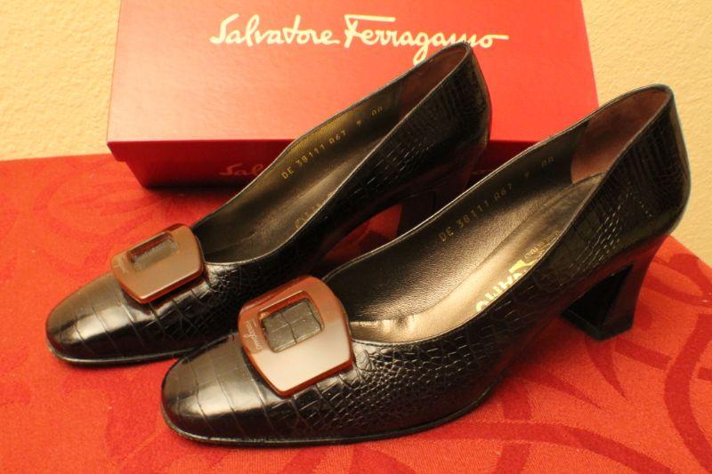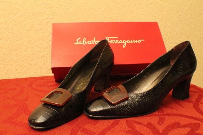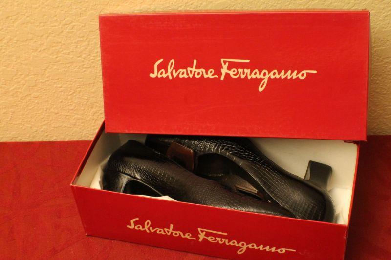 LOT #368: Salvatore Ferragamoâ„¢ Crocodile Black Loafers SIZE 9 AA