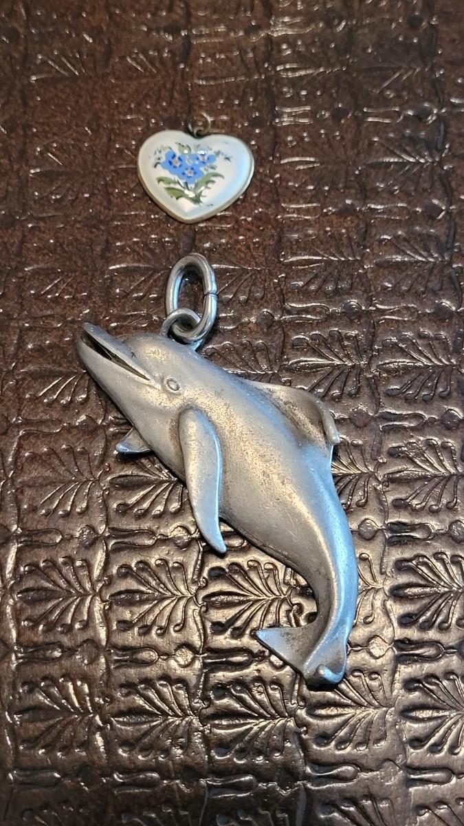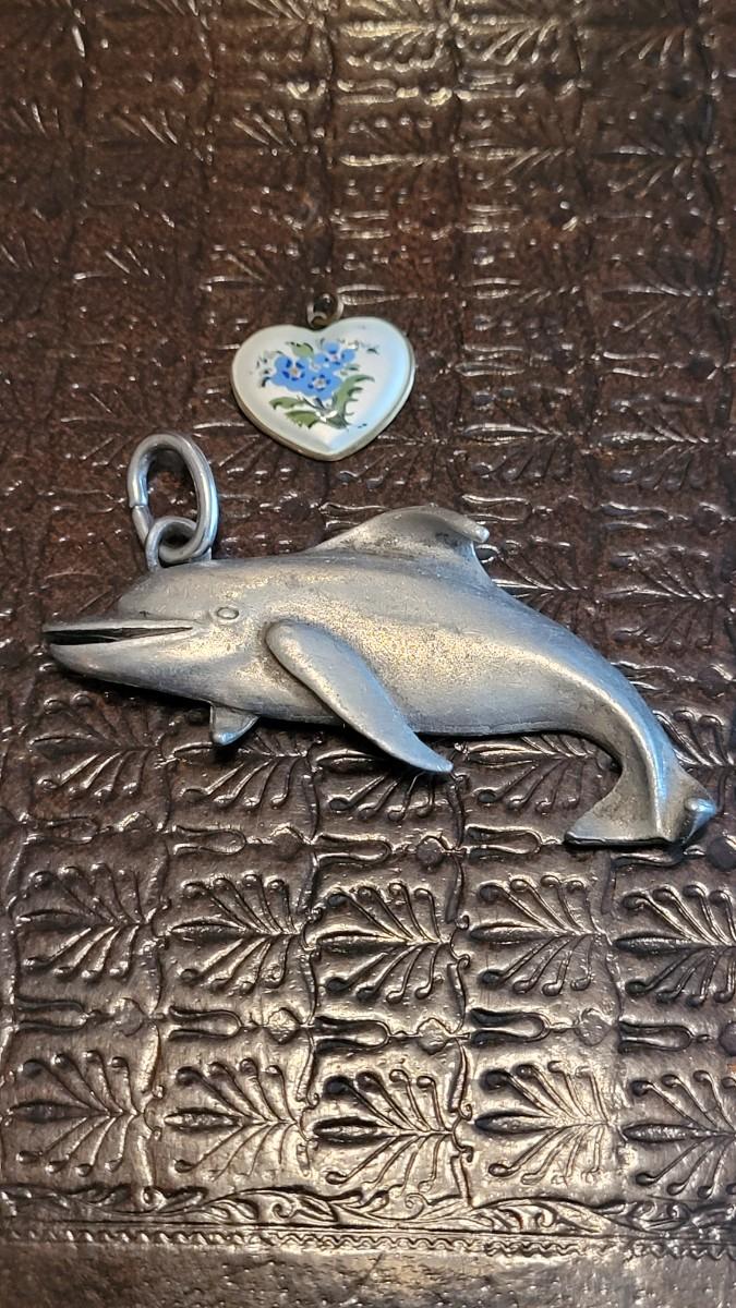 Lot 368: Dolphin and Handpainted Heart Pendants
