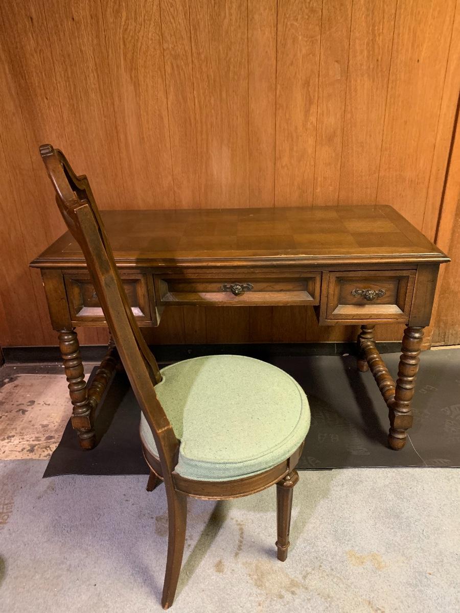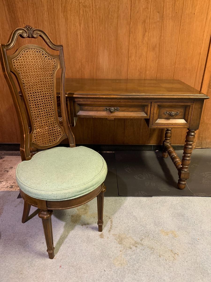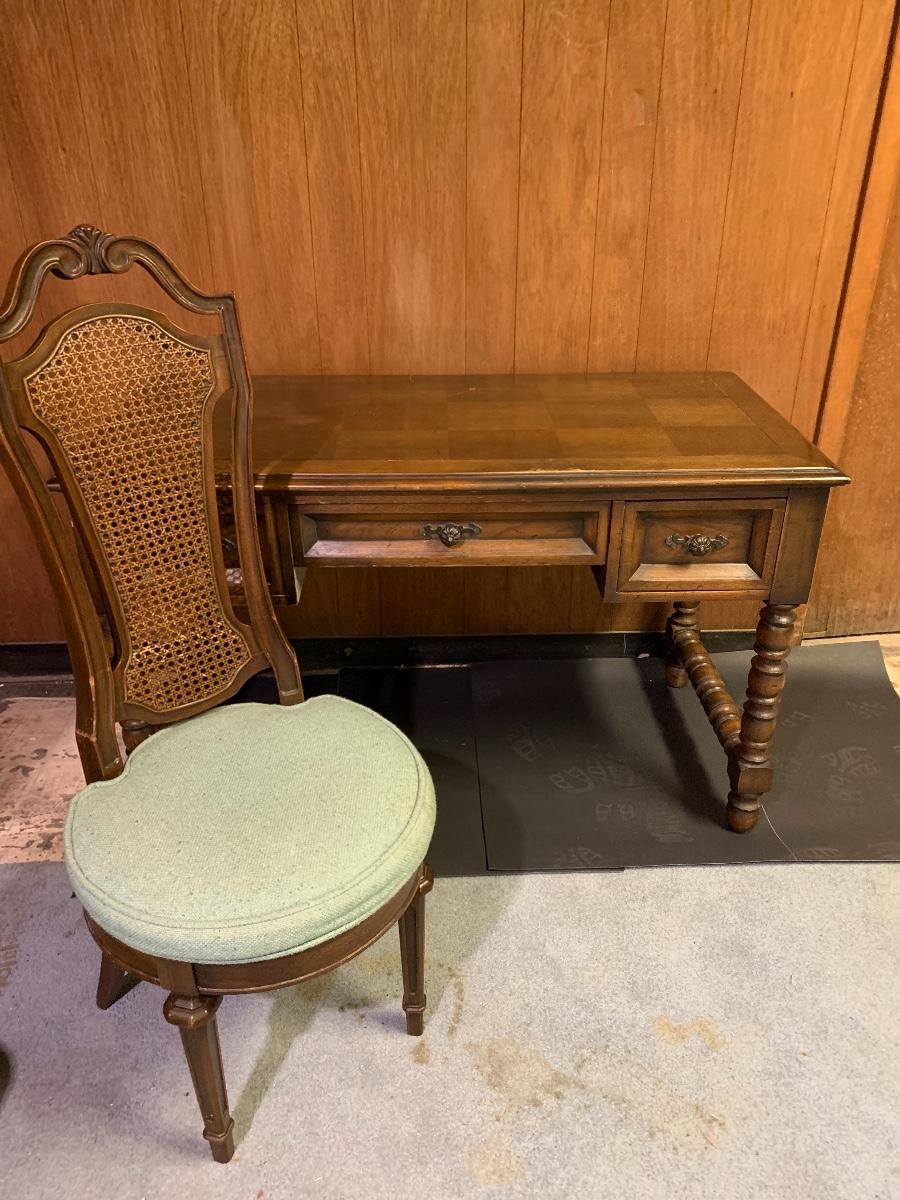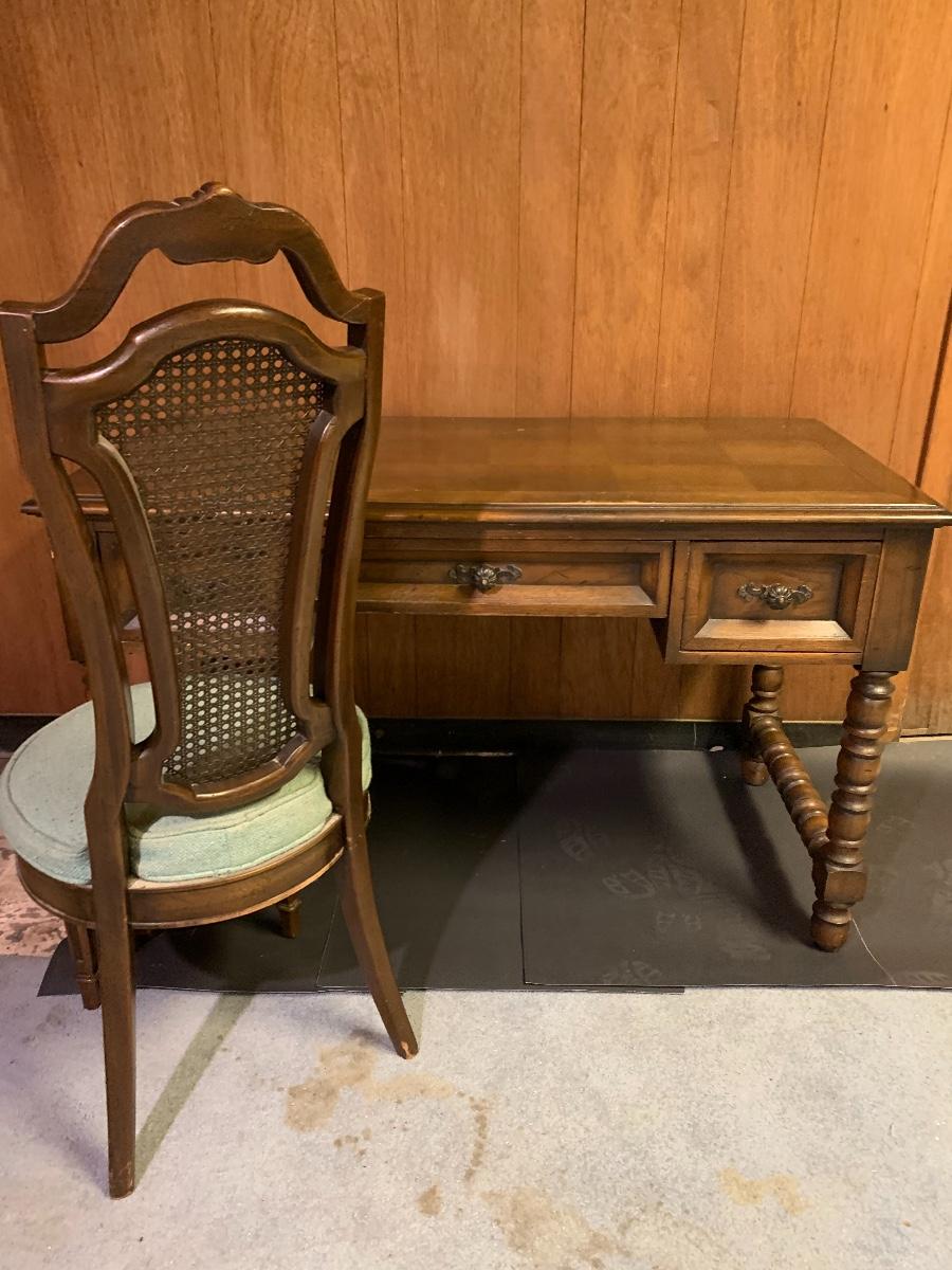 Lot 368: Vintage MCM Century Desk & Cane Back Chair