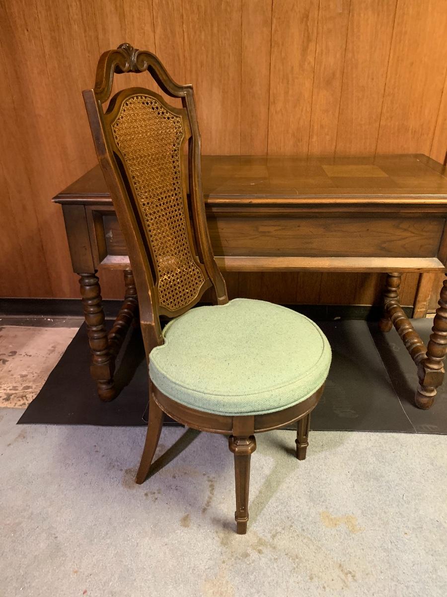 Perfect solid piece to upcycle or wax/polish. Caning on chairs in intact, but shows some wear. This is located in a basement, and you will need to be able to move a set of stairs to the first floor and out of the front door, one stair down. Please see all pictures as they are the best representation of the items. The pictures show condition, measurements if taken, and what is included in the lot. Due to the large amount that we photograph and the time frame, we are not always able to take measurements. All items unless noted, are pre-owned and have been used. If you purchased furniture, you must bring help. We do not allow one person to carry large furniture out on their own. Bring help, tools and a truck for the safety of our client’s homes, and your personal safety. Company policy. Thank you.