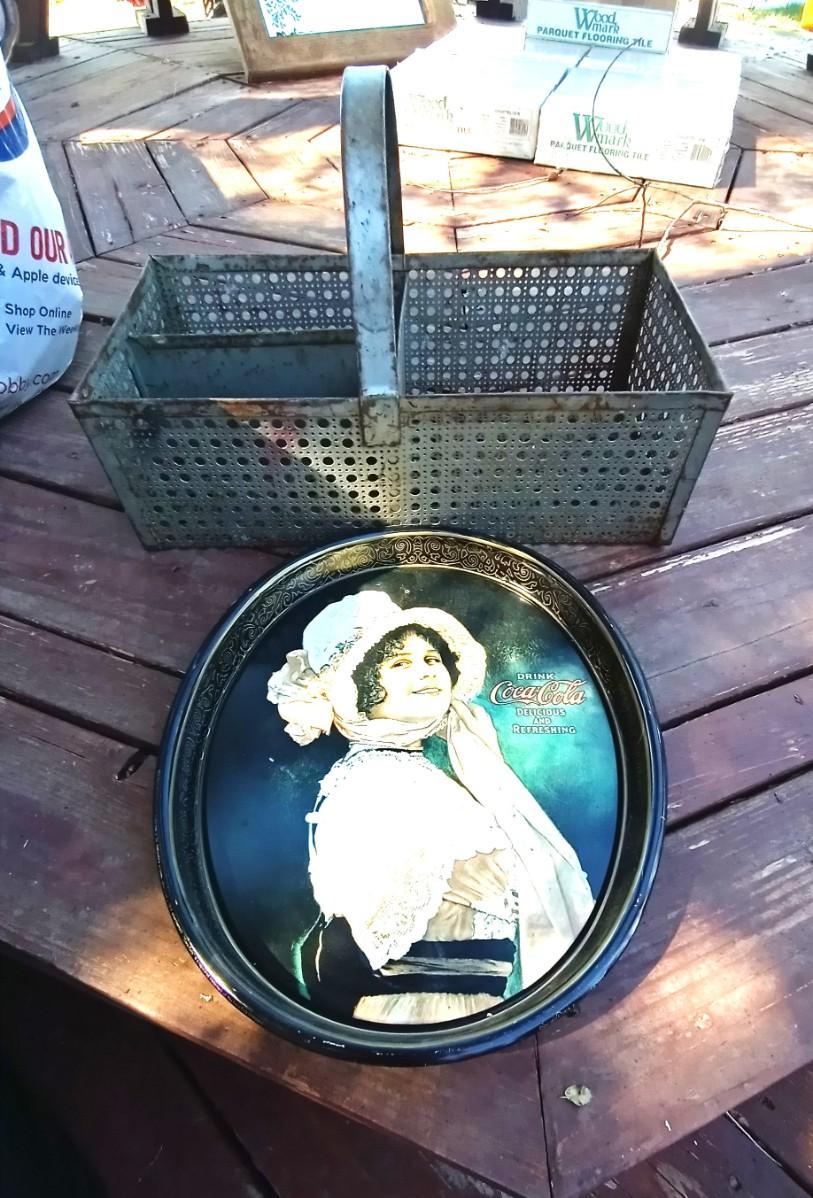 COKE COLA TRAY MEASURES APPROX. 15X10 AND METAL BASKET 18X9