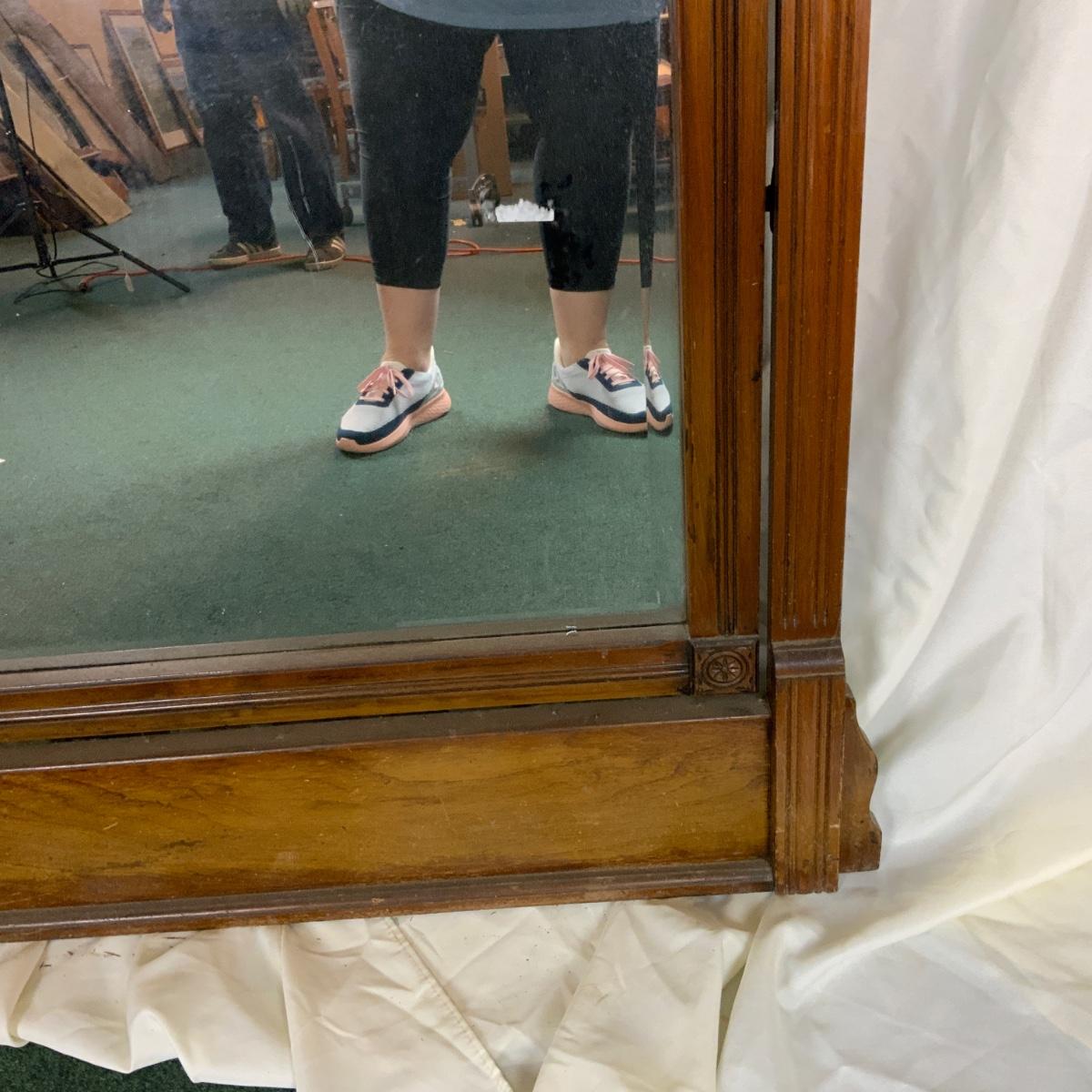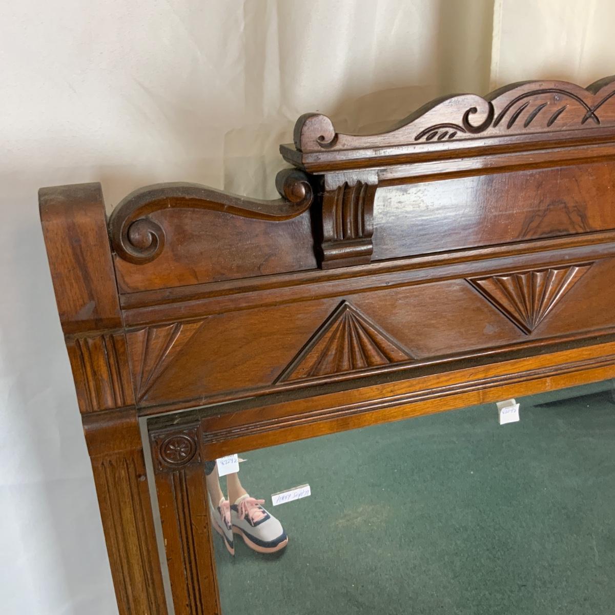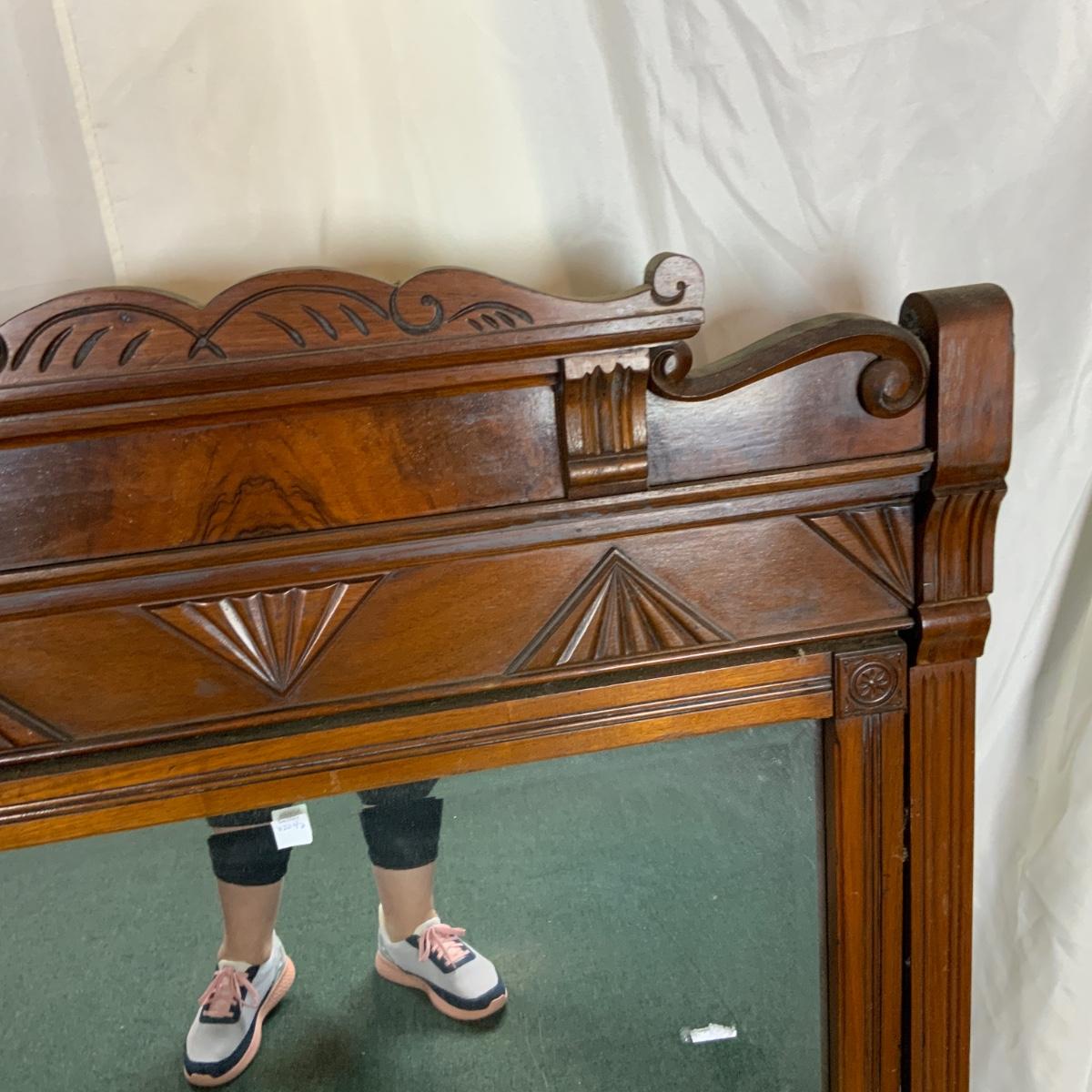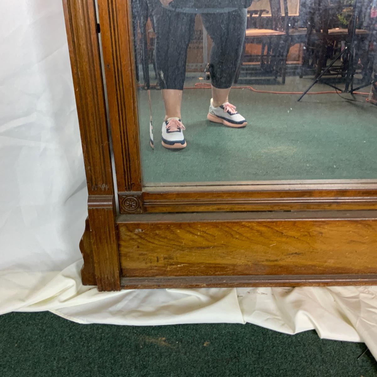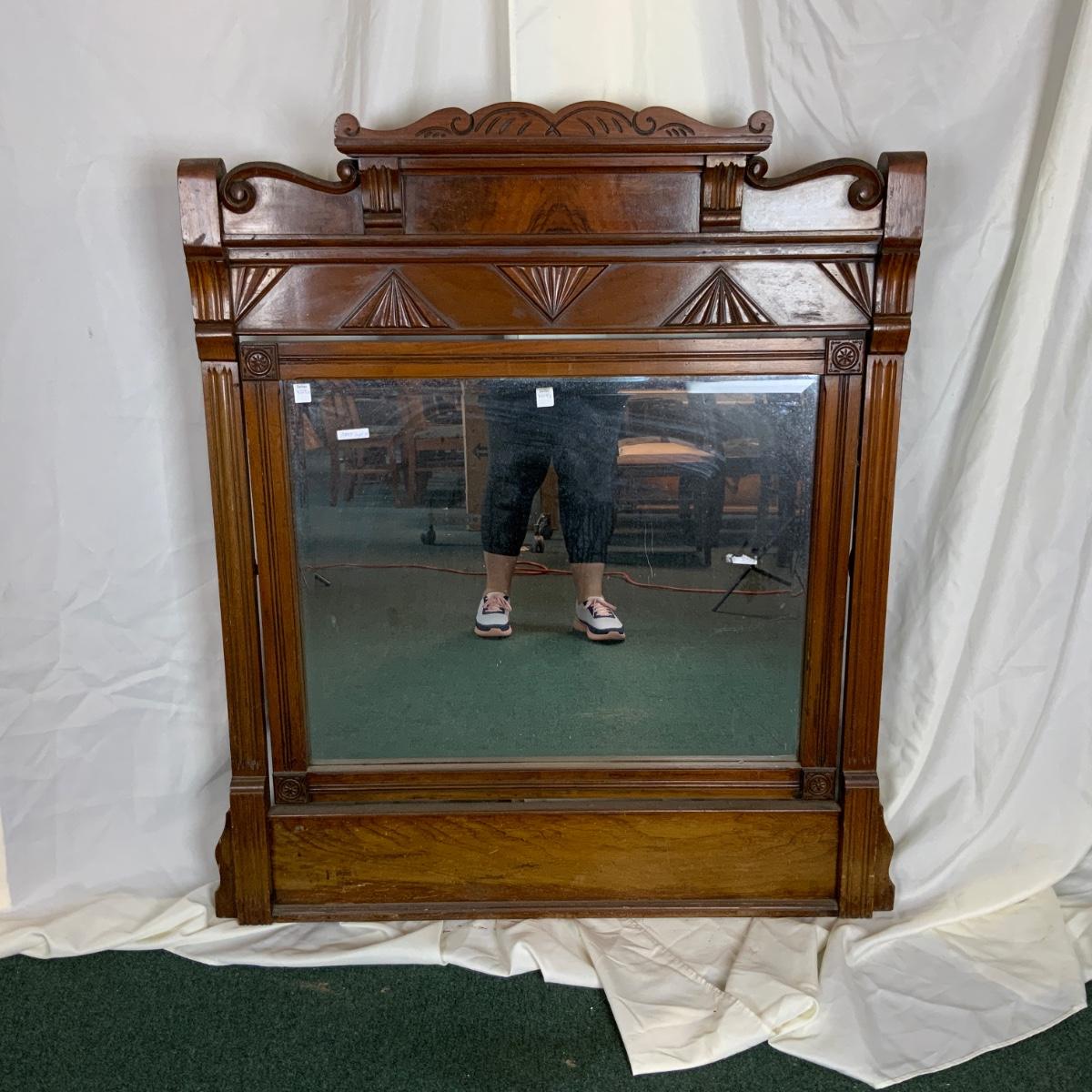 Eastlake Wood Framed Mirror. Really wonderful piece. Solid and attractive. //::\\ Please see photos for details and condition. No attempt has been made to hide any imperfections. All items listed in this auction are warehouse items, and need to be cleaned. A majority of the items need restoration as well. All items are sold AS IS and WITHOUT GUARANTEE. If you are uncertain about an item, DO NOT BID. Due to the nature of this online auction in-person inspection is HIGHLY recommended. All Sales are FINAL. Pick Up Times are FIRM. Please confirm with your own schedule that you can pick up in the scheduled times listed in the Terms and Conditions. Any questions please message the auctioneer. DO NOT Contact The Harp Gallery.
