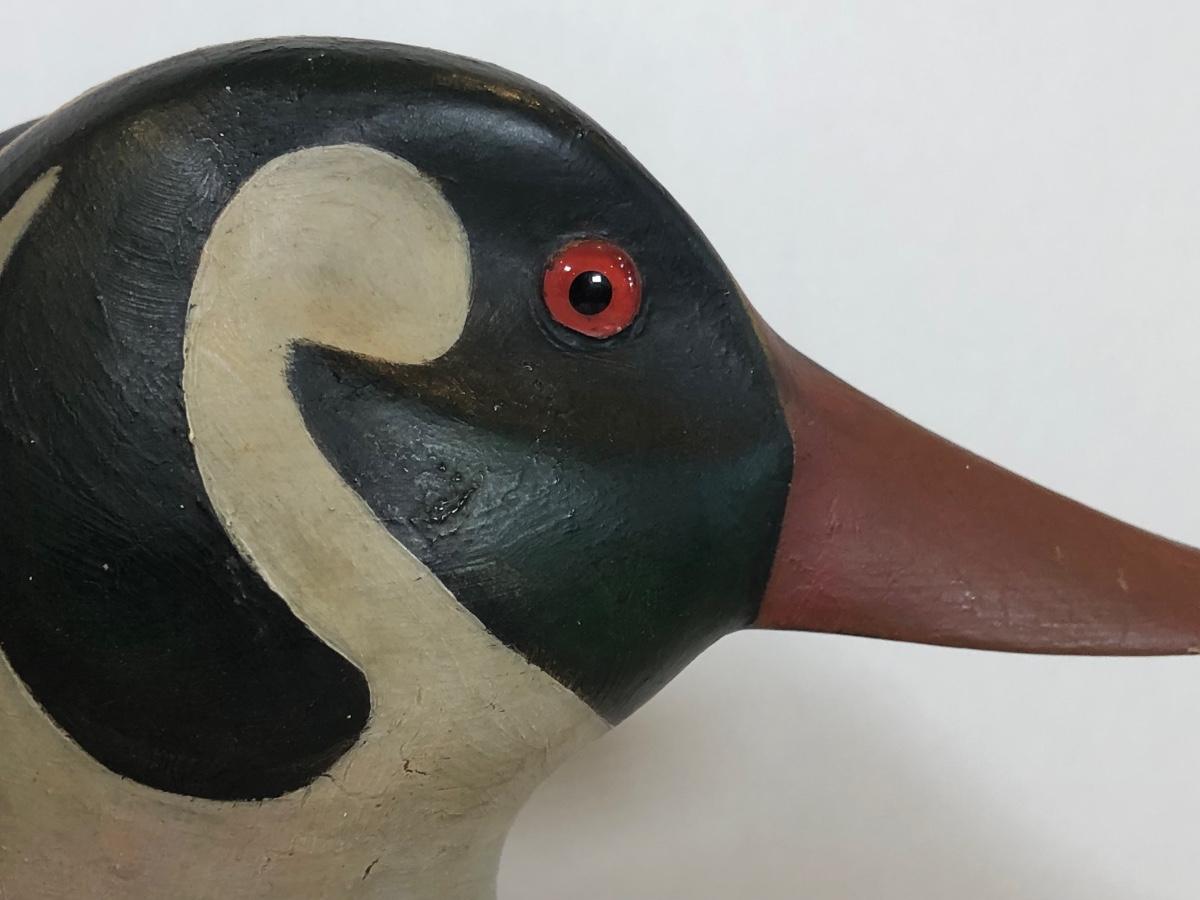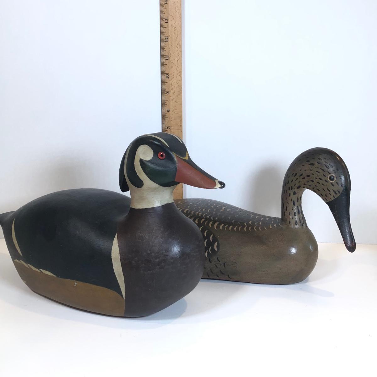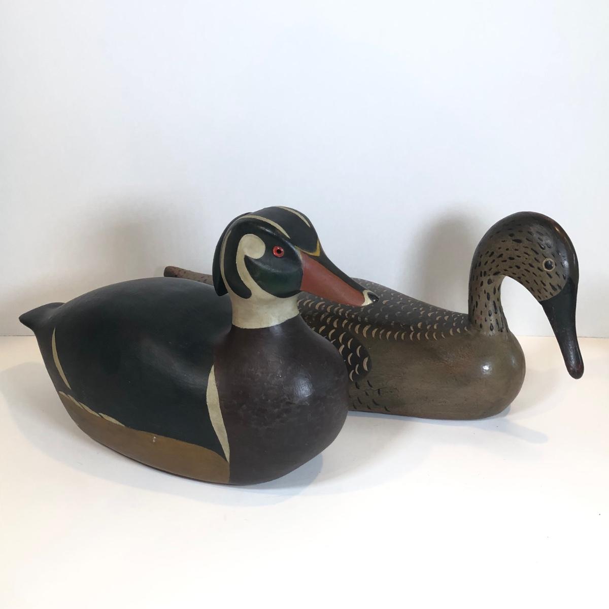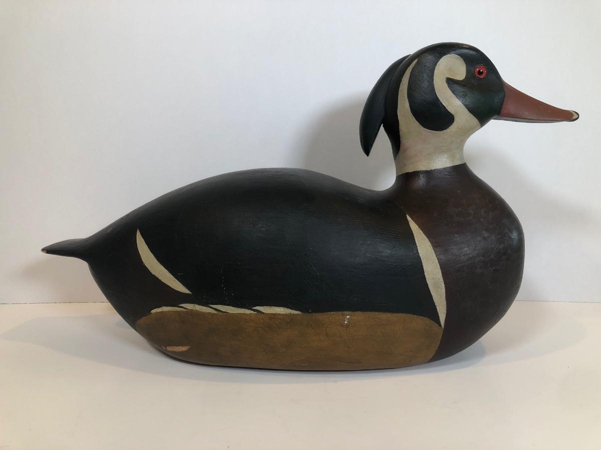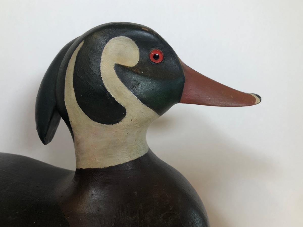 LOT 368S: Wood Duck Decoy w/ Glass Eyes Signed RBBK Wilt & Hand Carved Mallard Decoy Duck