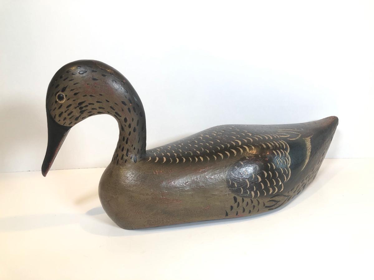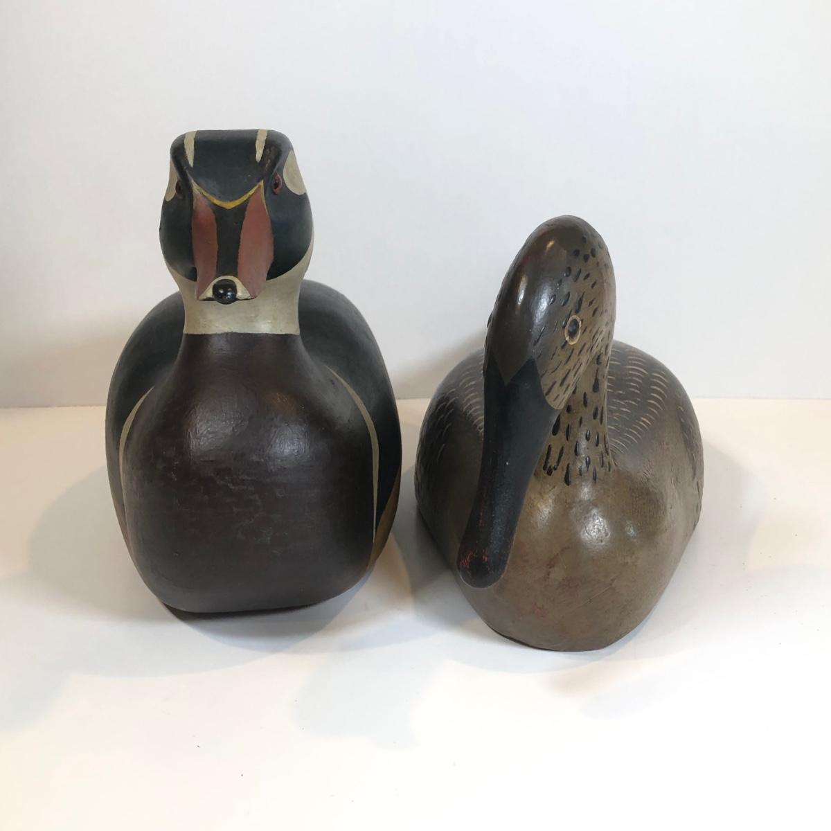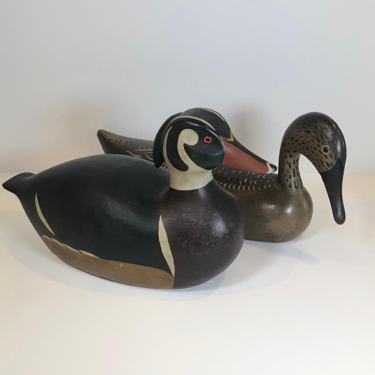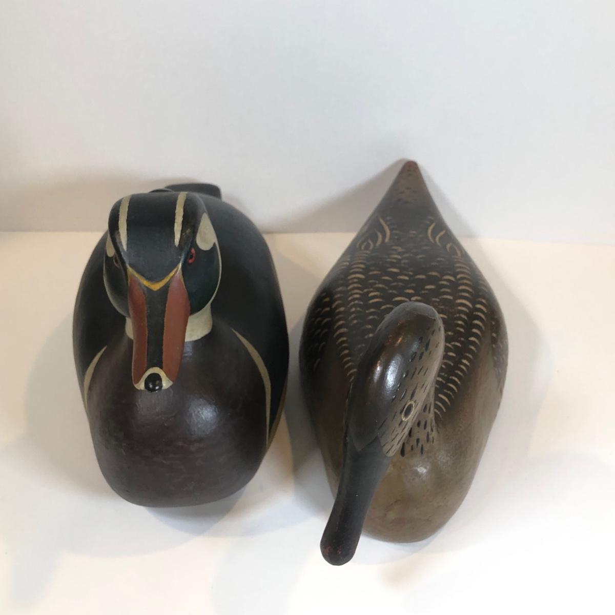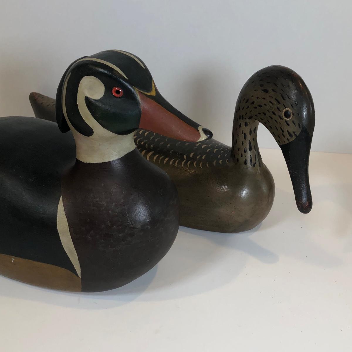 LOT 368S: Wood Duck Decoy w/ Glass Eyes Signed RBBK Wilt & Hand Carved Mallard Decoy Duck