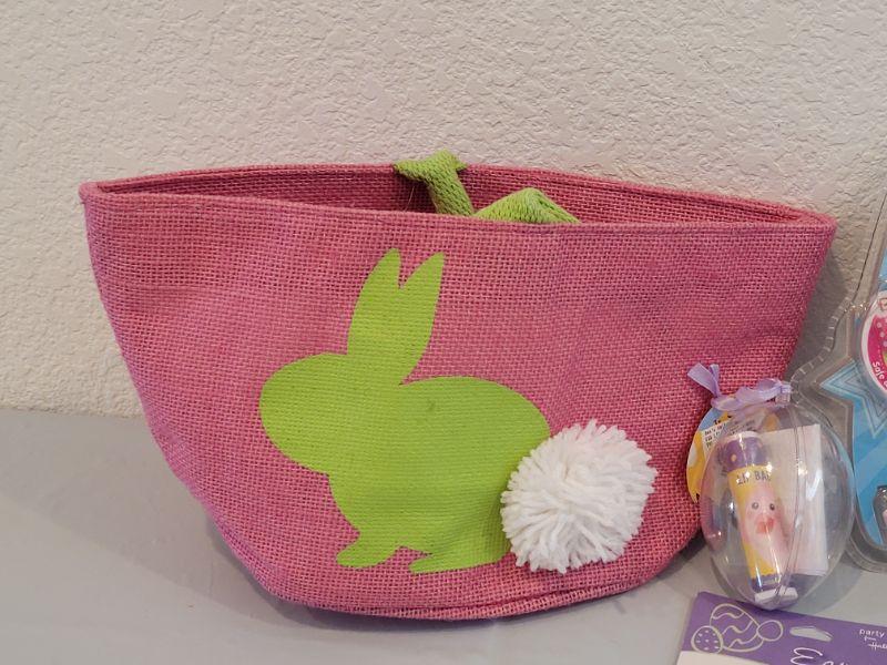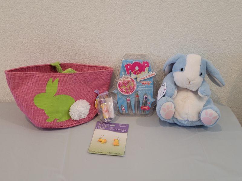 Lot 369: New Bunny Purse Easter Basket with Earrings, Pop On Nails, Lip Balm and Hallmark Bunny