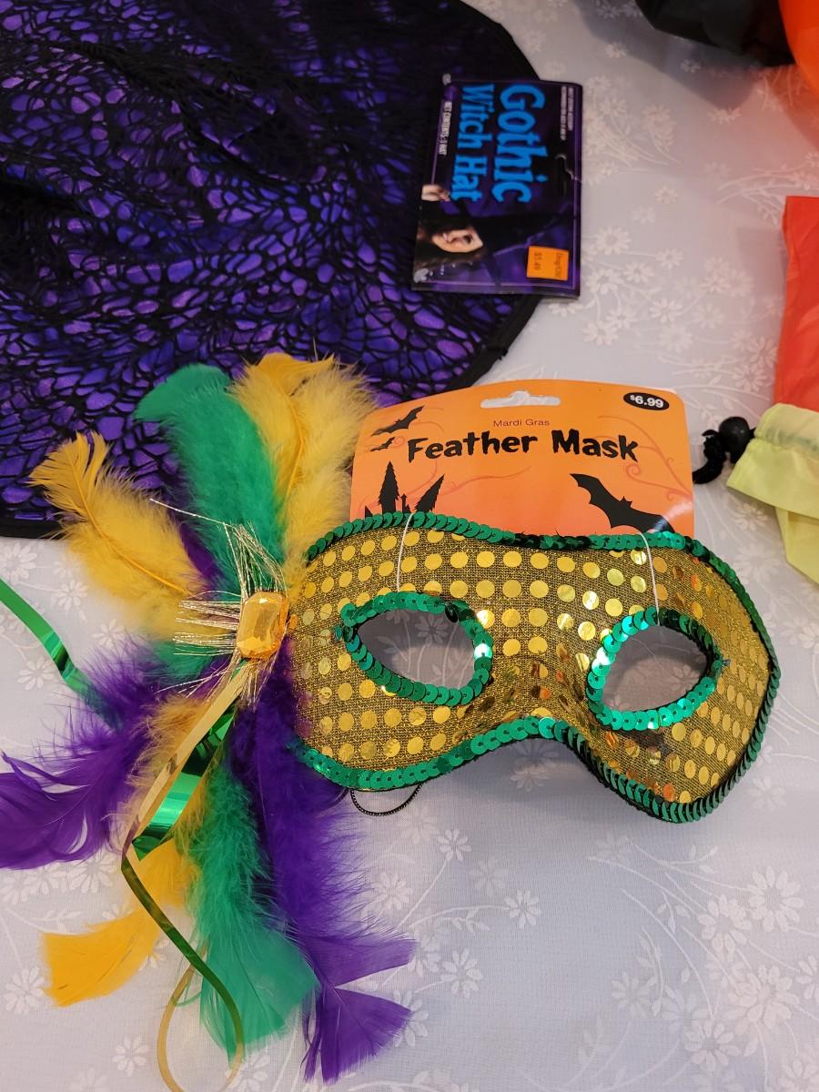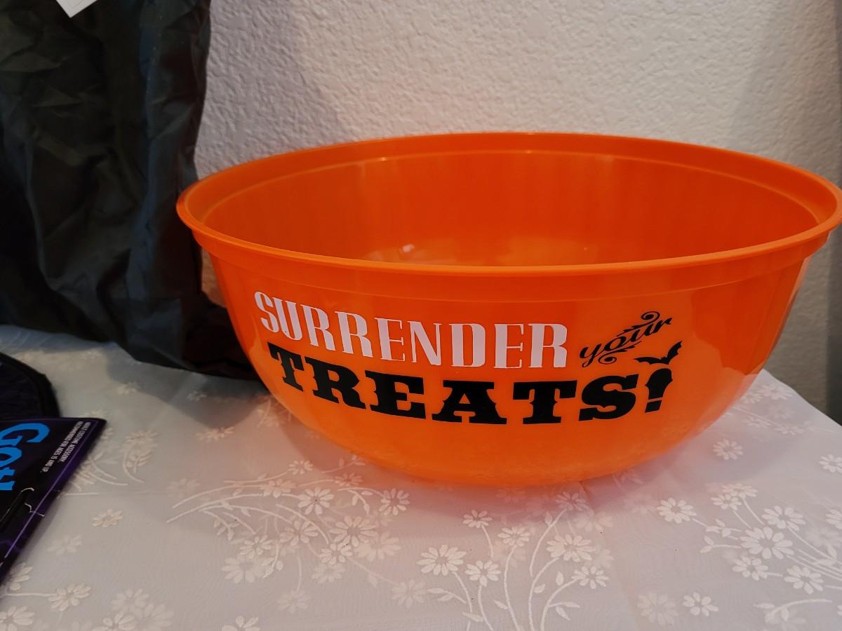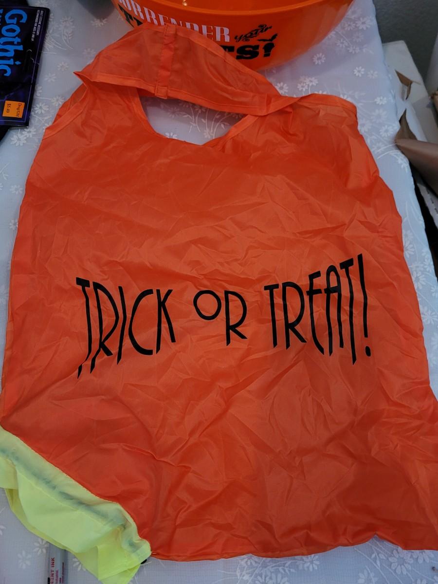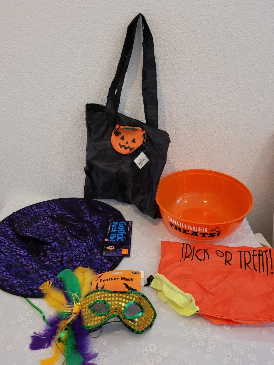 Lot 369: Halloween Treat Bowl, Bags, Witch Hat and Mask