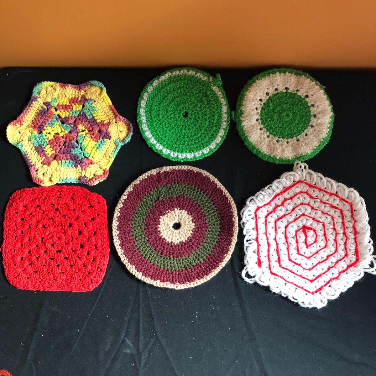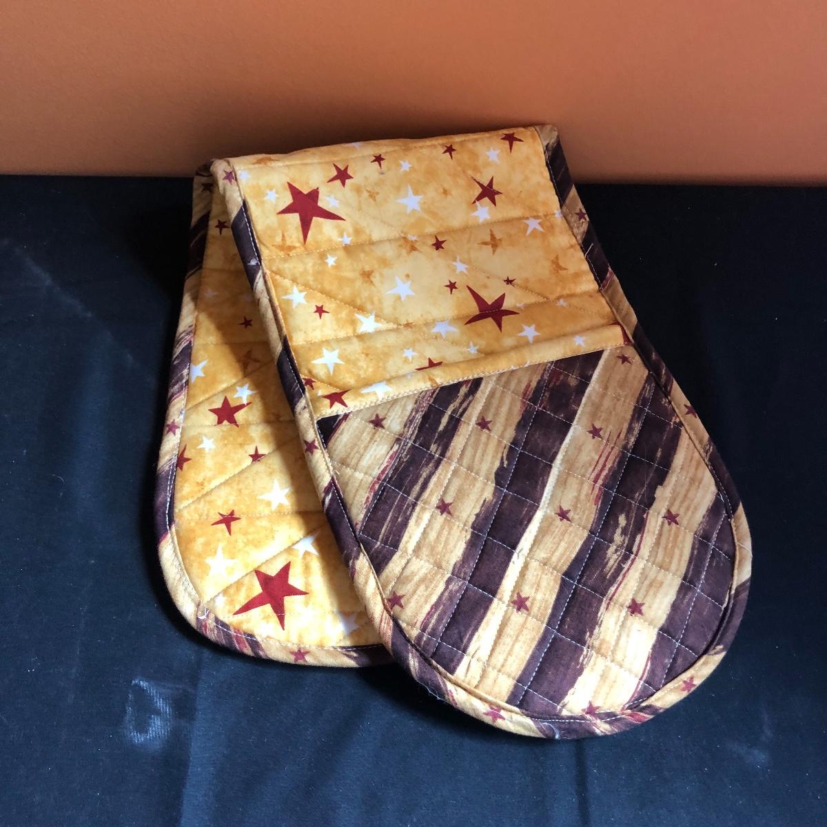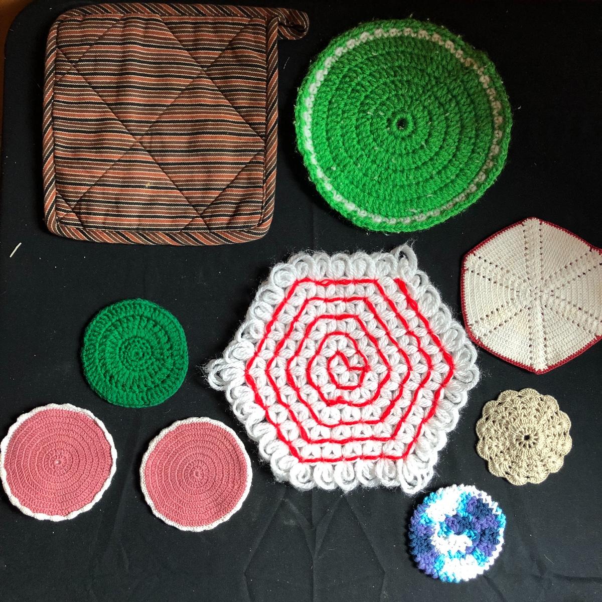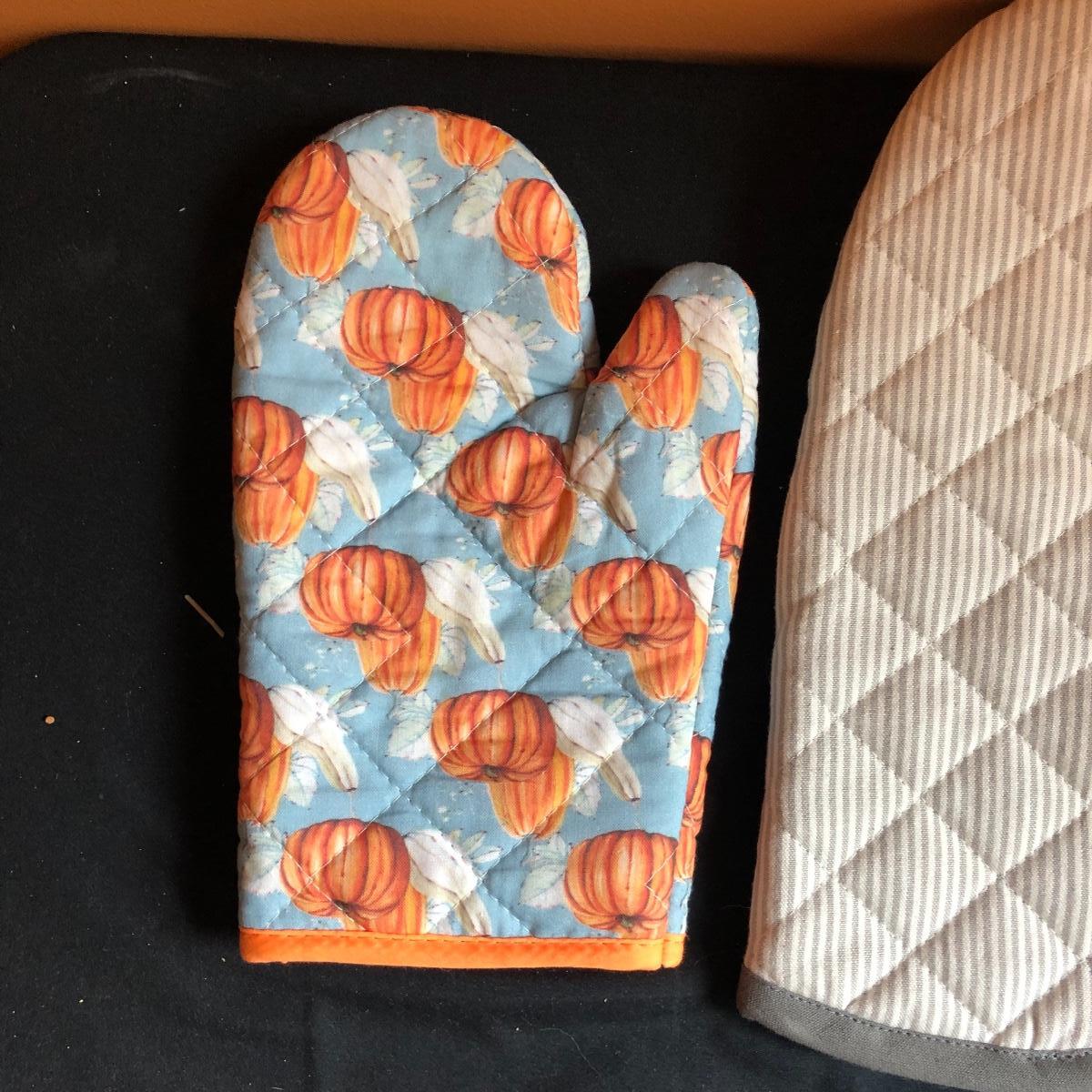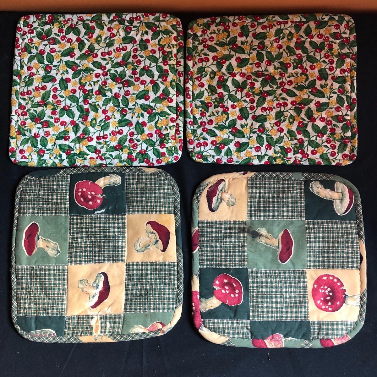 This large assortment of aprons, tea towels, oven mitts and more has just what you need to stock up on kitchen linens and share with friends! Pairs of oven mitts, single oven mitts, themed pot holders, handmade pot holders, matching pot holders, assorted aprons, tea towels, a set of four placemats, a handmade bonnet, hand towels make up this sizeable lot. Common themes amongst these items include fall, owls, herbs, and farming.