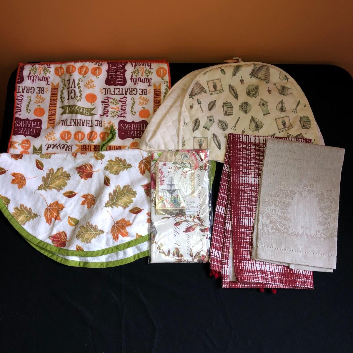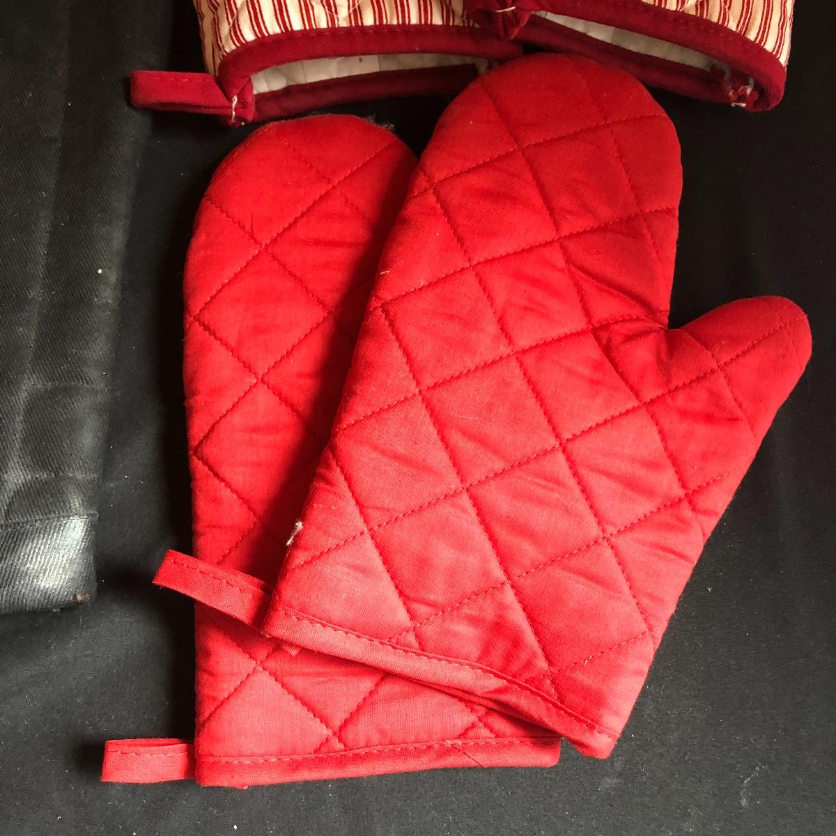 Lot 369 - Oven Mitts, Tea Towels, and Aprons, Oh My!