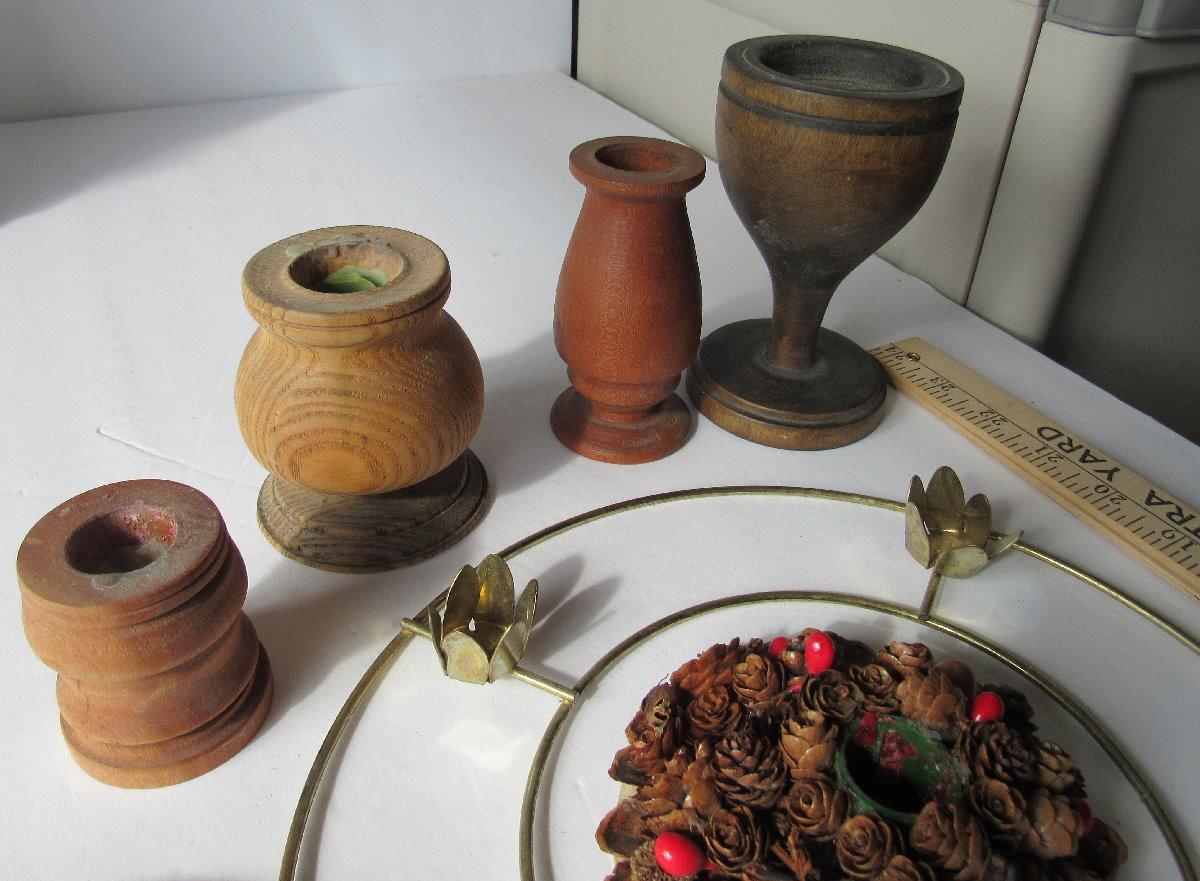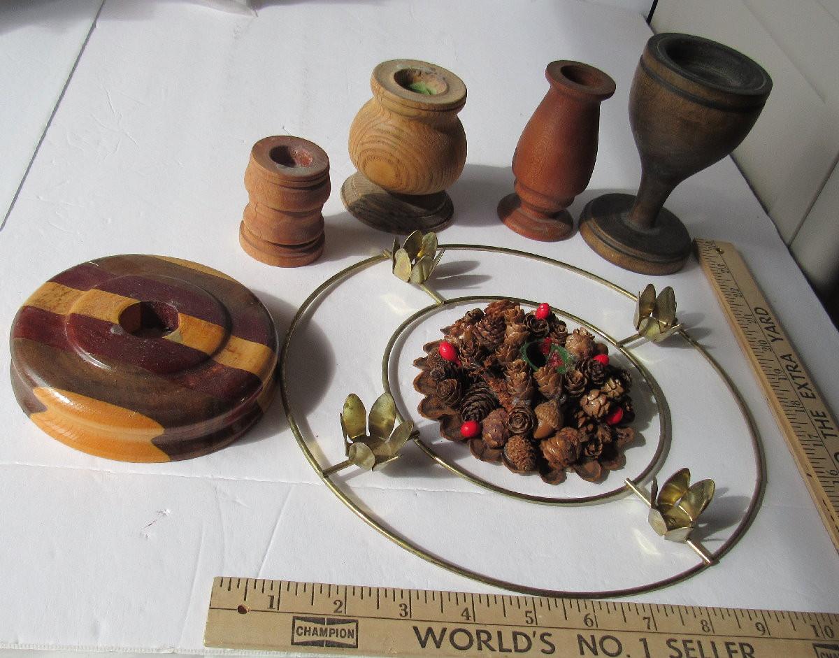 Lot 363: Lot of Craft Items and Wood Candle Holders, Etc