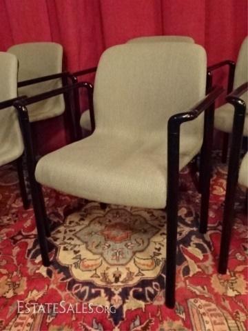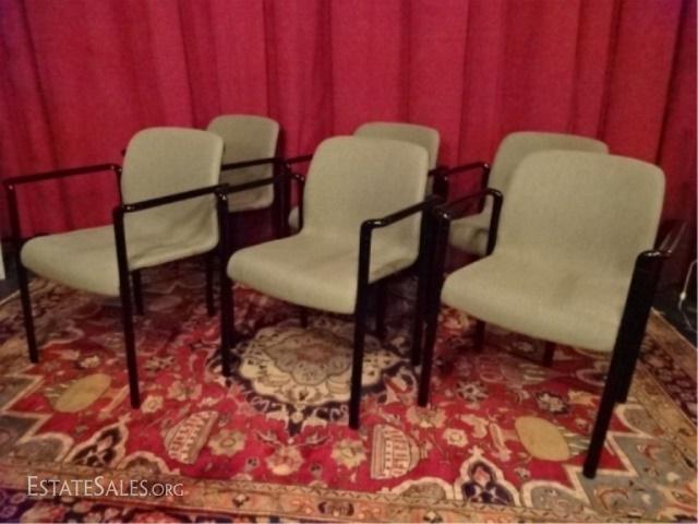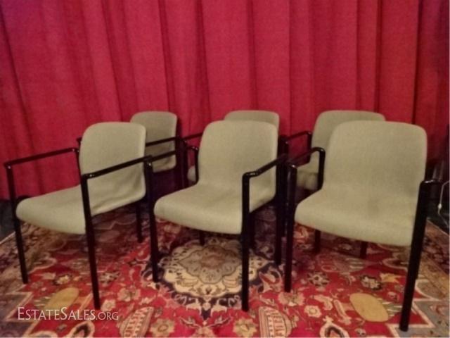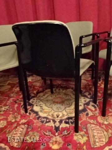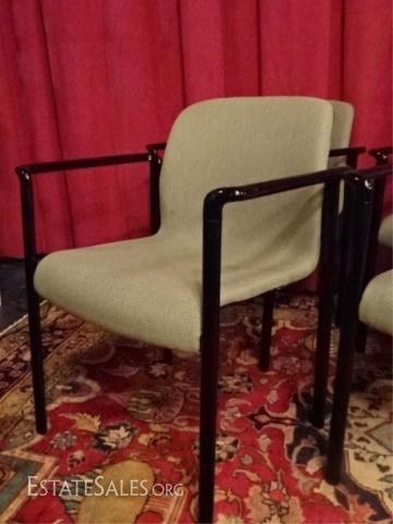 LOT 36D: 6 HERMAN MILLER OPEN ARMCHAIRS, BLACK METAL FINISH, GRAY UPHOLSTERY, CONTINUOUS TUBULAR ARMS AND LEGS, WITH HERMAN MILLER LABEL, VERY GOOD CONDITION WITH SOME LIGHT SURFACE WEAR, 30.5"H X 23.5"W X 16.5"D, SKU355