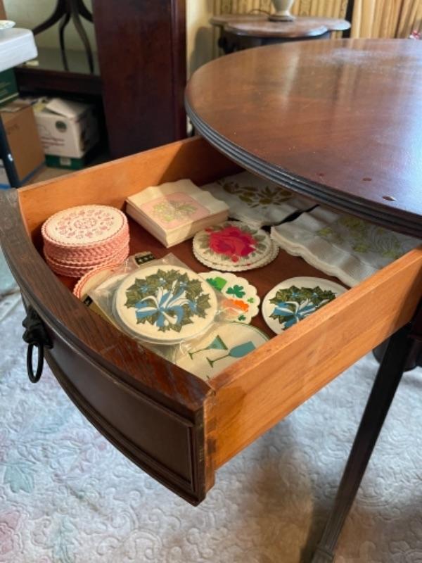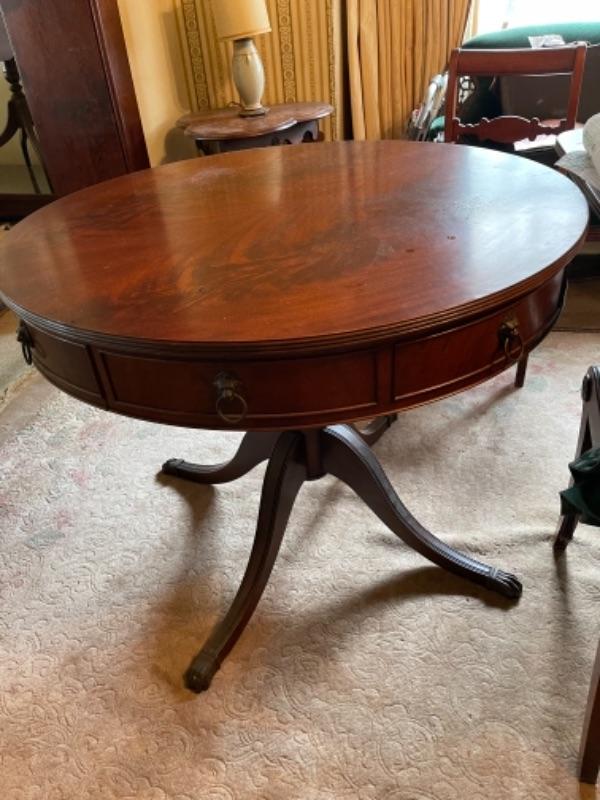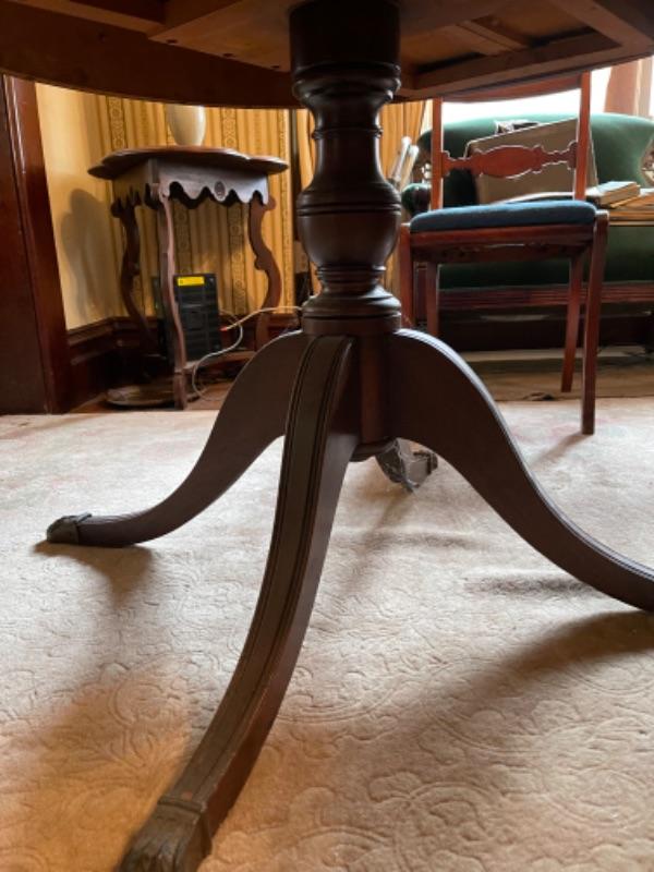 Lot 36DR. Round mahogany table (36 inches in diameter)---$150