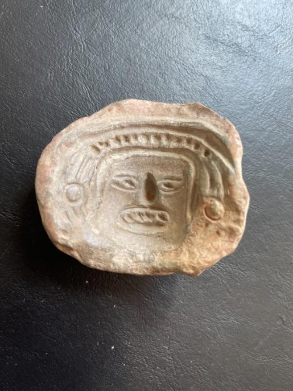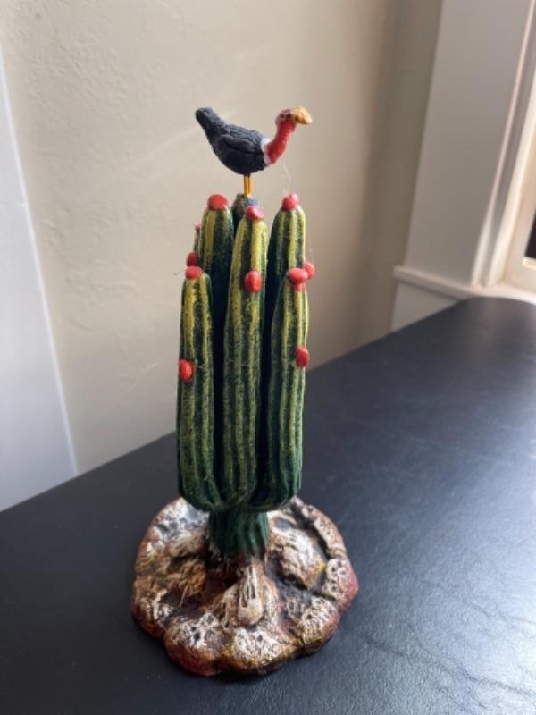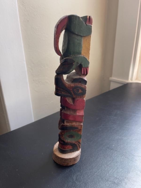 Lot 36LD. Totem poles, Talavera ceramic cups, jugs and dish, Mayan face in clay, wooden angel décor, carved wooden figure, ceramic cactus sculpture --$17.50