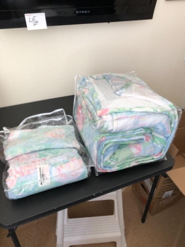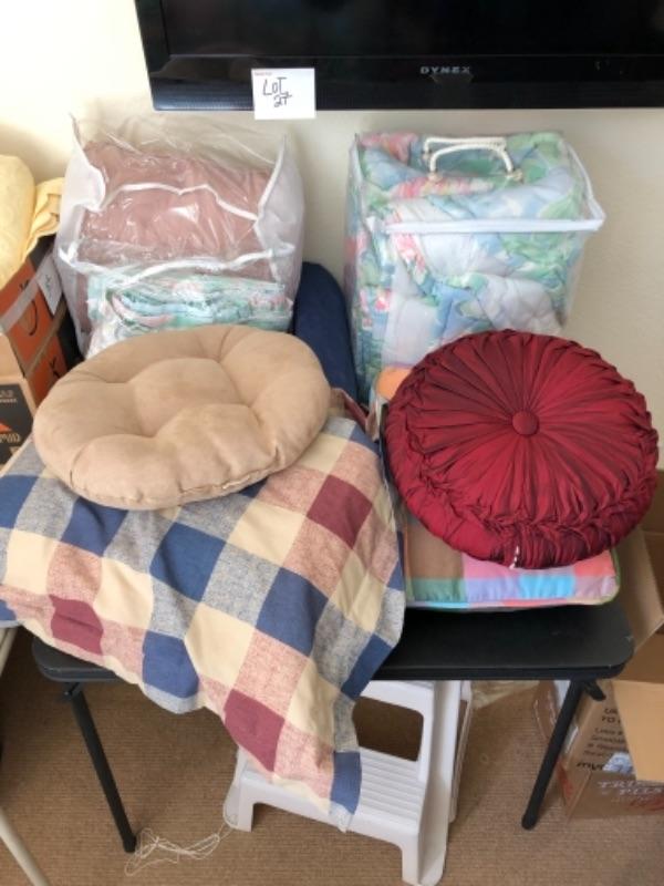 Lot 36U. One king size duvet cover and sheets; 4 cushions/throw pillows--$45