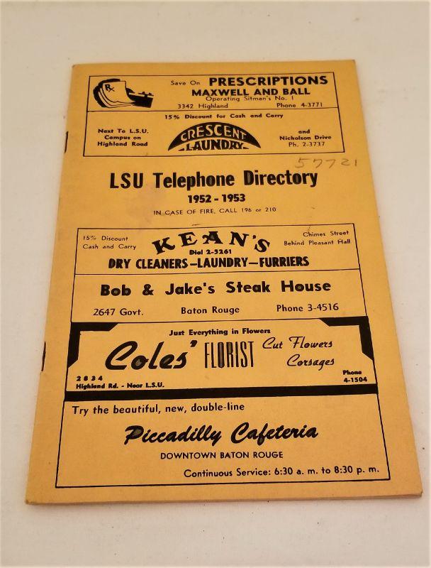 Gives you the name/Department of every faculty and staff member at LSU in 1952-53, and also some GREAT ads. 40 pages. Good condition.